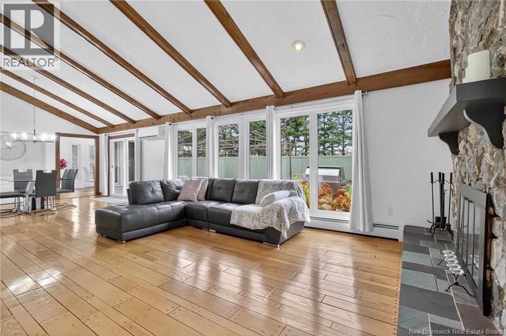 LOOKING FOR A SPACIOUS UNIQUE HOME IN ONE OF THE BEST NEIGHBORHOOD IN MONCTON CLOSE TO ALL AMENITIES, HIGHWAYS AND BOTH FRENCH AND ENGLISH SCHOOLS LOCATED AT THE END OF A QUIET COURT? WELCOME TO 1 HAVENWOOD COURT, A PERFECT HOME FOR A GROWING FAMILY OR THOSE WHO LOVE TO ENTERTAIN! Nestled in a quiet cul-de-sac, this stunning detached home boasts four spacious bedrooms, four bathrooms and not 1 but 2 double garages. This well laid out floor plan offers a beautiful foyer as you walk in, a home office currently used as a gym, a half bathroom and the mudroom with lots of closet space, storage and access to both garages. The bright open concept living room/dining flooded with natural light features vaulted ceilings accented by wood beams and a floor to ceiling fireplace. The gourmet white kitchen was completely renovated and offers stainless steel appliances, quartz countertops and a lovely breakfast nook. Up the custom hardwood stairs three large bedrooms await, including a master with a luxurious five-piece ensuite and a second bedroom with its own three-piece ensuite. The lower level offers a family room, a non-conforming bedroom, a half bath and a storage room. Outside you will find a very large, fenced backyard perfect for friends and family gathering! This home has it all: new roof, new windows, 4 mini split heat pump, garage space, beautiful backyard, in a court...dont miss out on this one! Contact us to schedule your private showing. *All measures are approximate (id:35613)