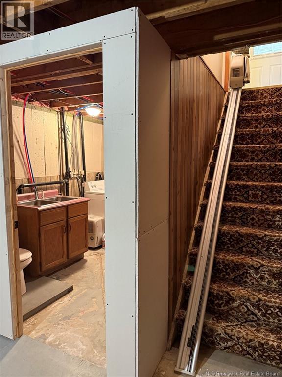 This two bedroom bungalow is nestled at the end of a residential cul de sac, offering privacy in a quiet neighbourhood. Paved driveway leads to attached car port, providing shelter & easy vehicle access. Treed lot is nicely landscaped, with front & rear lawns for children and pets to run & play in a natural setting. Spacious deck & custom built screen house provide ideal locations for relaxation or entertaining family & friends. Shed for extra storage space. Sheltered entry leads to the galley style walk thru kitchen with tile flooring and custom built cupboards. All kitchen appliances included. Sliding patio doors conveniently located between the kitchen & dining room, with easy entry to the deck. Custom breakfast nook for two can be created by swinging the tabletop to an upright position! Bamboo flooring continues into the hallway & large living room, with four pane picture window. Full bathroom with built in linen cabinet storage in the hall. Primary bedroom has large double closet, with smaller closet in the guest room. Seated chair lift allows easy access to and from the unfinished basement. Large bonus room includes two large windows, which would allow for an additional bedroom or family room. Half of the basement is utilized as an insulated & heated workshop /hobby room, with extensive lighting. Small storage room & utility room with half bath/laundry complete the basement. Want to downsize, but not yet ready for an apartment? This could very well be the home for you! (id:35613)