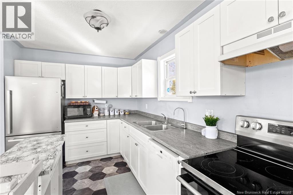 This updated 3BR, 2 Full Bath home with partially-fenced L-shaped yard and deck is in one of Frederictons fastest growing neighbourhoods, close to shopping, golfing, healthcare facilities, restaurants & more. Enjoy convenient single-floor living within the Nashwaaksis schools zone, steps from the neighbourhood park and playground. The home has a practical split layout with the Primary BR and bathroom at one end, and 2 addl BRs and another full bath at the other. The primary BR has a double closet with built-ins and the primary bath has a level walk-in shower. The open-concept Living, Dining, Kitchen is the heart of the home. Handy hallway laundry niche has cabinets above, just waiting for your Pinterest glow-up. Recent upgrades include new vapour barrier and insulation around the entire home, re insulation of all windows and doors, installation of exhaust fans in both bathrooms, renovation of bathroom #2, and an osmosis water filter (for taste) in the kitchen. A mini-split heat pump keeps you warm in winter and cool in summer, and cost-efficient! City services make living convenient. A concrete foundation and crawl space under the entire home provide additional stability, warmth and a huge amount of storage. The long paved drive provides parking for all your guests and toys. Included appliances round out this value-packed offering. (id:35613)