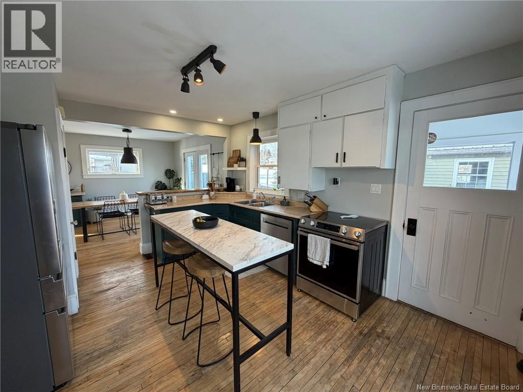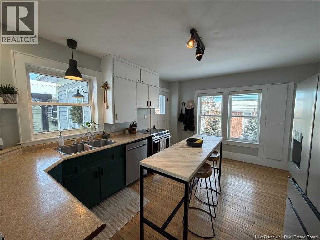 Welcome to 116 Eastwood Dr in Woodstock, NB. Eastwood Dr is in one of Woodstock's most sought after neighborhoods and is close to all amenities such as the schools, park, AYR Motor Centre, grocery stores, etc. The home itself is a 2 level with classic feel and modern charm. On the main level you will find the kitchen, dining room, living room, and fully finished mud room. Upstairs you will find 4 bedrooms and a bathroom. The basement of the home is fully concrete and unfinished which makes great space for storage as well as the fully ducted heat pump unit (new outdoor unit 2025). In the backyard there is a fully finished single garage which is also great for storage or can also be used as a shop. New kitchen appliances 2025. Steel roof 2018. New stamped concrete walkway. (id:35613)