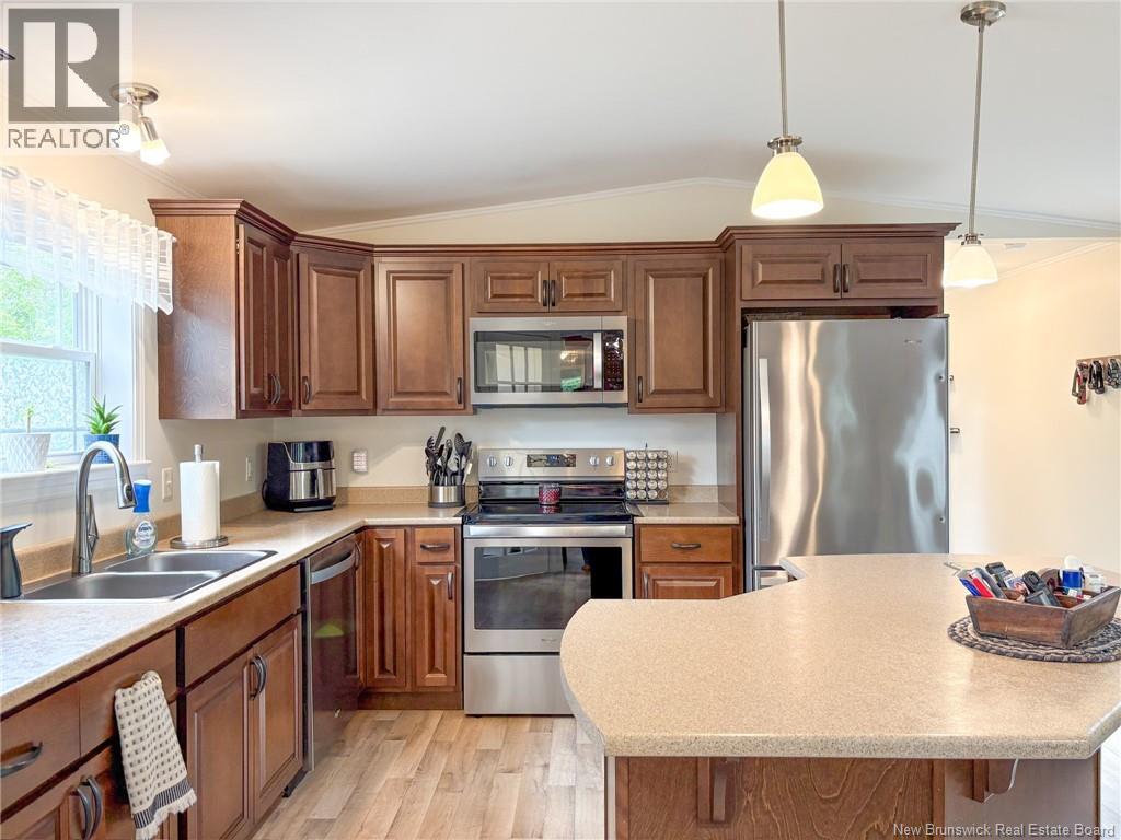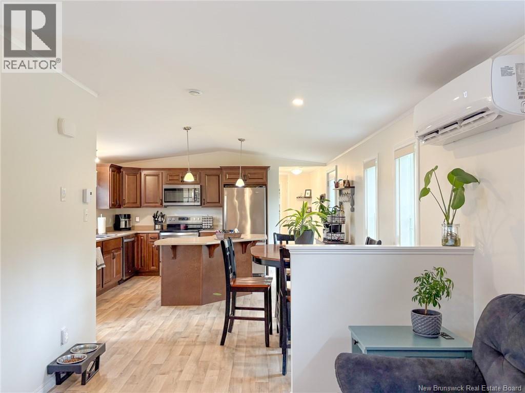 Step into modern living wrapped in complete privacy. Set on 1.89 acres of beautifully landscaped grounds framed by mature birch trees, this 2018-built, three-bedroom, two-bath mini home feels like your own hidden retreat. A private gravel drive winds past lush green grasses, shrubs and a storage shed before welcoming you inside to an airy open-concept living space. At the heart of the home, a stylish kitchen with dark cherry cabinetry, stainless steel appliances, and a spacious island flows seamlessly into dining and living areas designed for connection. A cozy mudroom doubles as a vestibule at the front door, while a back deck and rear entry extends living outdoors. The crown jewel: a full primary suite tucked away on its own wing, enveloped in a rich, dark green palette with matching trim and ceilings, a bold, designer touch. The ensuite boasts an oversized garden tub (custom option), perfect for unwinding. Two additional bedrooms, a full bath, and convenient hallway laundry complete the plan. With cushion flooring, ductless mini split comfort, baseboard heating, and timeless finishes throughout, this seven-year-young home blends functionality with flair. Private, peaceful, and move-in ready - this is not just a home, its a lifestyle. Tour this home virtually using the Matterport 3D tour link attached to the listing! Schedule a private visit with your REALTOR® of choice TODAY! (id:35613)