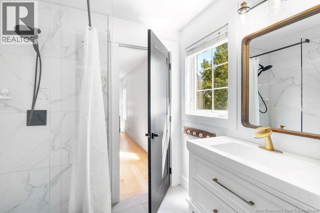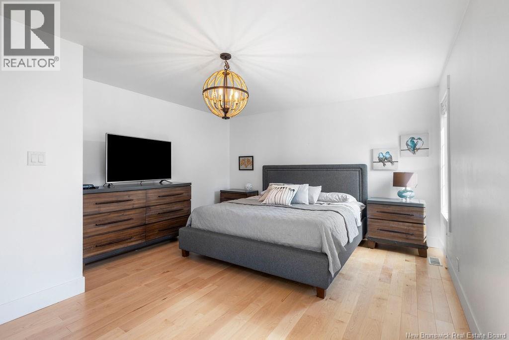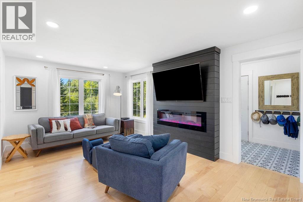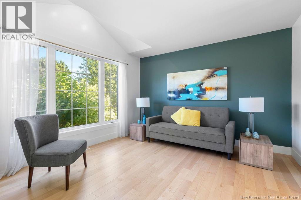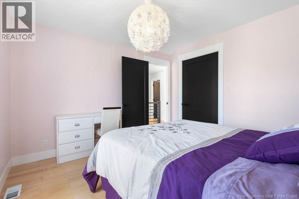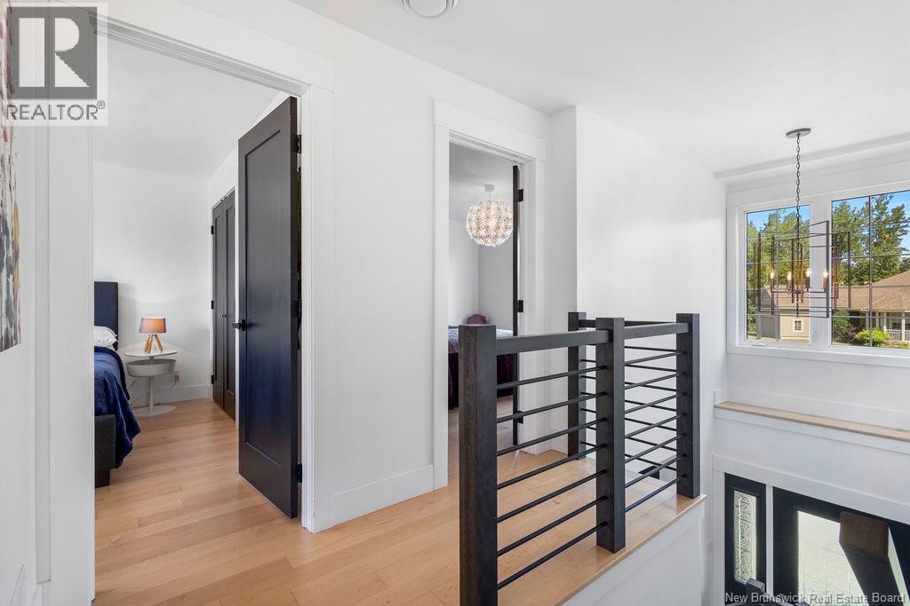 Welcome to this stunning executive two-storey home on a large, beautifully landscaped lot in one of the citys most desirable neighbourhoods. Surrounded by mature trees and elegant homes, the property offers exceptional curb appeal and privacy. Step inside the grand front entry and be greeted by a captivating staircase, beautiful lighting, and a fresh, modern color palette. The main floor includes a formal living room with vaulted ceilings and a cozy second living area with a fireplaceperfect for relaxing or entertaining. The custom kitchen features crisp white cabinetry, convenient coffee area, a spacious island with a quartz countertop, and a generous dining area with views of the private backyard. Enjoy direct access to the multi-tiered deck, a covered hot tub retreat, and a serene lower patio designed for ultimate outdoor enjoyment. Also on the main level: a stylish half bath, a large walk-in closet off the garage entry, and unfinished loft space above the garage for storage or future use. The home is filled with natural light and heated/cooled efficiently by a geothermal heat pump. Upstairs are two generous bedrooms and a beautiful primary suite with a walk-in closet with custom organizers and a private ensuite. A second full bath with laundry completes this level. The finished basement offers a large rec room, office/gym area, bathroom, and a fourth non-conforming bedroomideal for guests. Also, amenities and the Miramichi River are only minutes away. Call now to view! (id:35613)