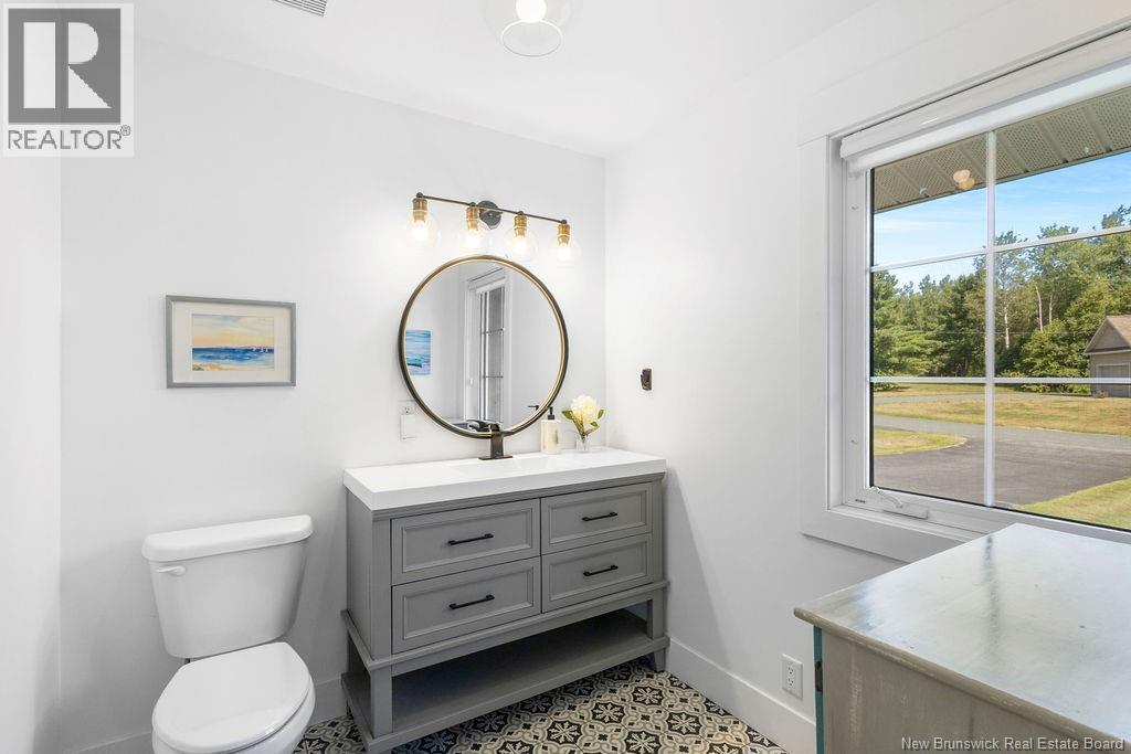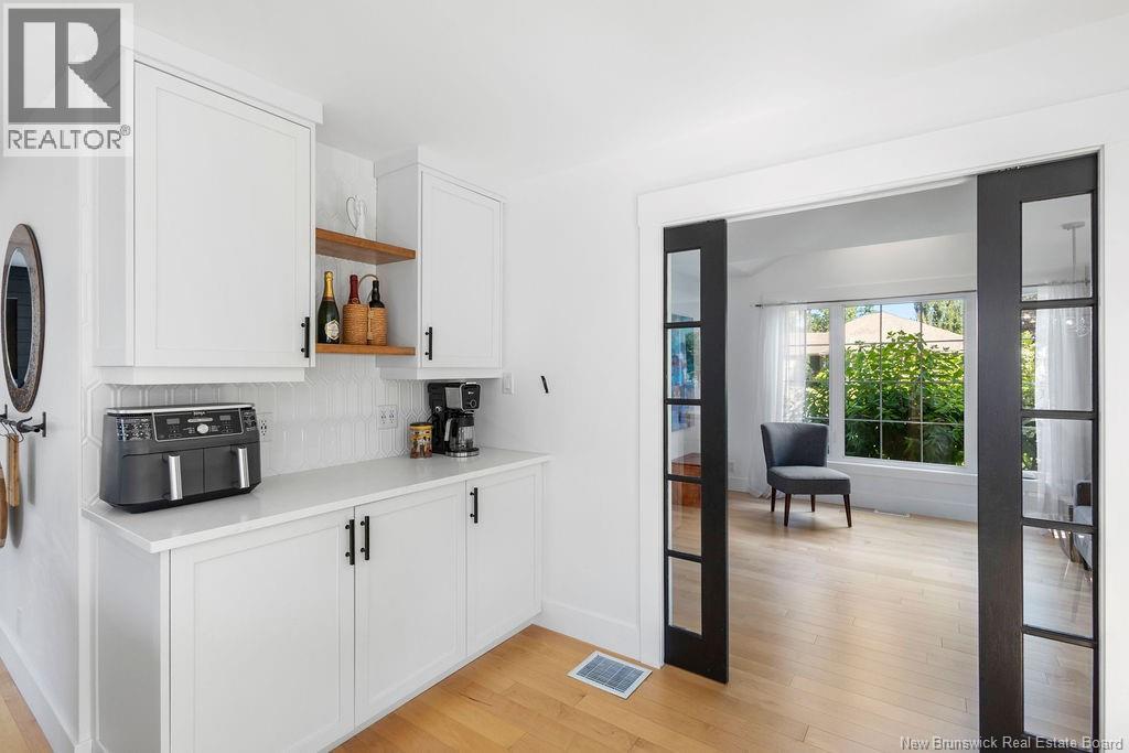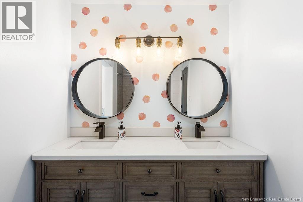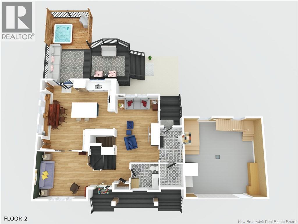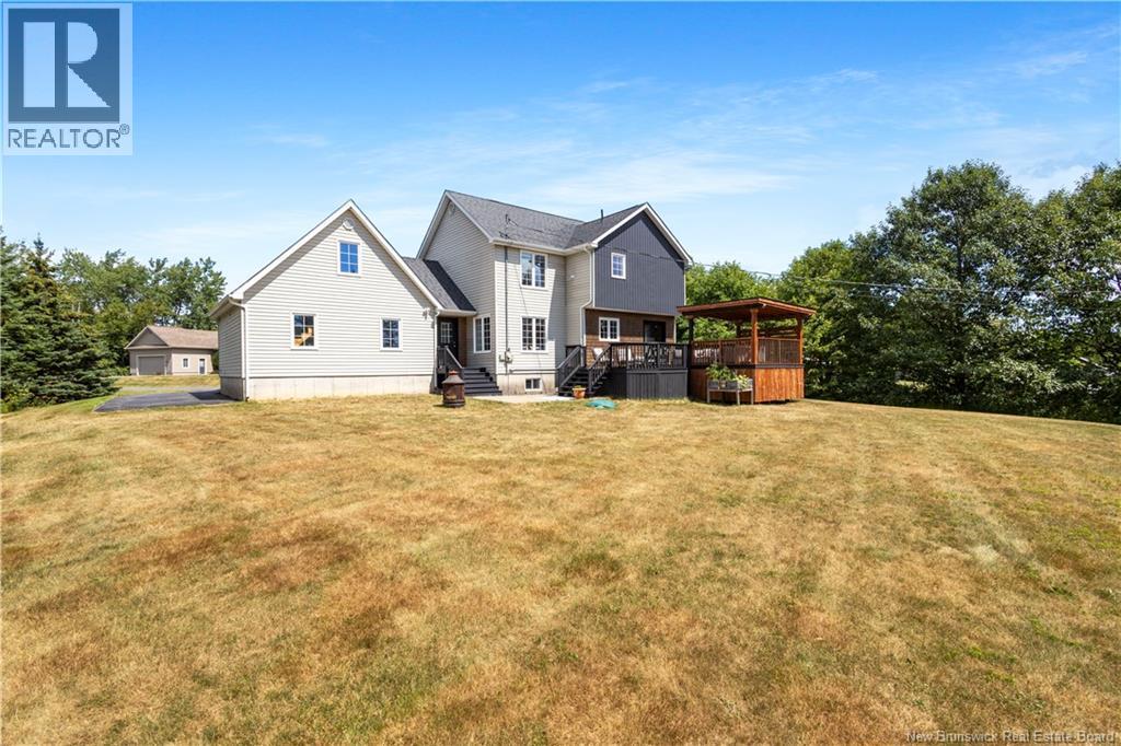 Welcome to this stunning executive two-storey home on a large, beautifully landscaped lot in one of the citys most desirable neighbourhoods. Surrounded by mature trees and elegant homes, the property offers exceptional curb appeal and privacy. Step inside the grand front entry and be greeted by a captivating staircase, beautiful lighting, and a fresh, modern color palette. The main floor includes a formal living room with vaulted ceilings and a cozy second living area with a fireplaceperfect for relaxing or entertaining. The custom kitchen features crisp white cabinetry, convenient coffee area, a spacious island with a quartz countertop, and a generous dining area with views of the private backyard. Enjoy direct access to the multi-tiered deck, a covered hot tub retreat, and a serene lower patio designed for ultimate outdoor enjoyment. Also on the main level: a stylish half bath, a large walk-in closet off the garage entry, and unfinished loft space above the garage for storage or future use. The home is filled with natural light and heated/cooled efficiently by a geothermal heat pump. Upstairs are two generous bedrooms and a beautiful primary suite with a walk-in closet with custom organizers and a private ensuite. A second full bath with laundry completes this level. The finished basement offers a large rec room, office/gym area, bathroom, and a fourth non-conforming bedroomideal for guests. Also, amenities and the Miramichi River are only minutes away. Call now to view! (id:35613)
