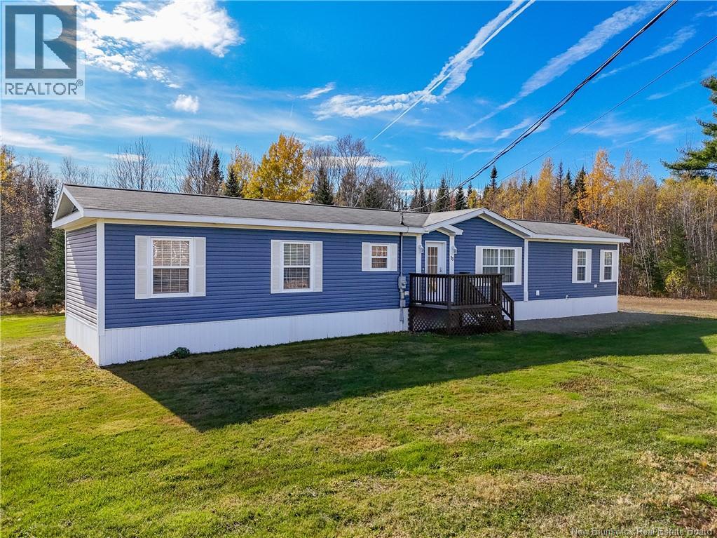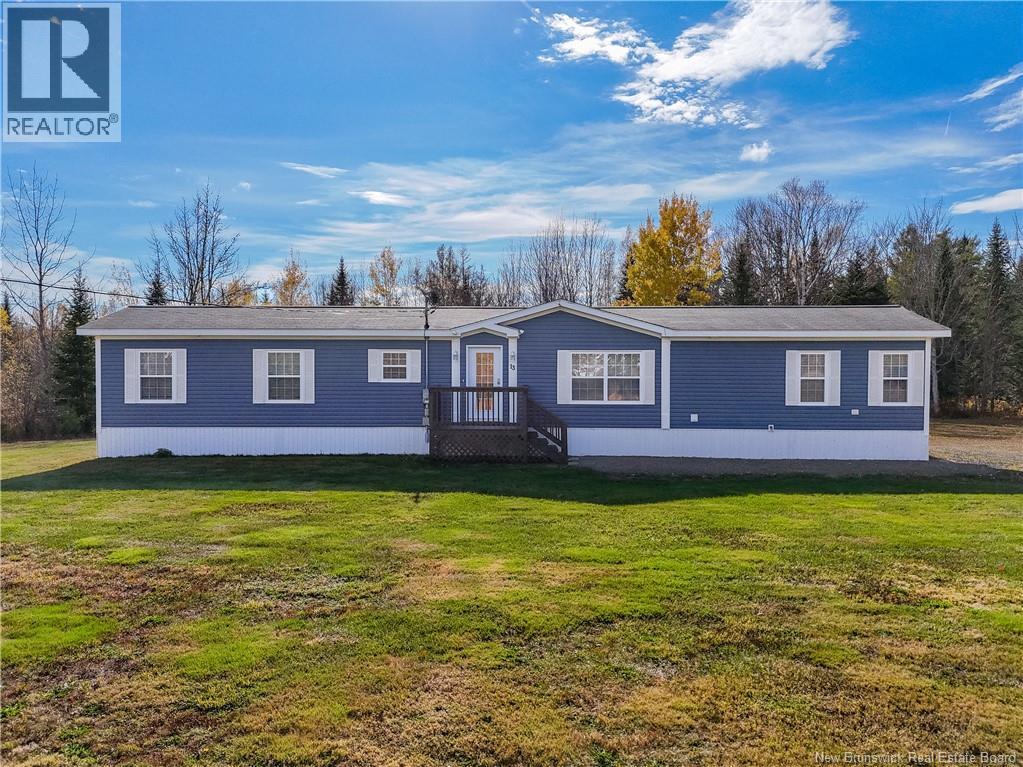This beautiful and well maintained mini home on it's own 1 acre piece of land is located on a quiet country road, only minutes from the new Hanwell School and other amenities. This 3 bedroom, 2 full bathroom home is only 14 years old. The kitchen has a lovely island, lots of cupboard space and a sliding glass door leading to a large 12x12 back deck. There is also a heat pump for extra efficient heating and cooling. At one end of the home, through the large living room with cathedral ceiling, you will find the primary bedroom with lots of closet space and a full ensuite bathroom complete with a shower and separate jet tub. At the other end of the home are two more bedrooms and another full bathroom. Freshly painted throughout. Lots of room to roam outdoors on the one acre lot with a large 12x16 storage shed included. Available for a quick closing as well. (id:35613)