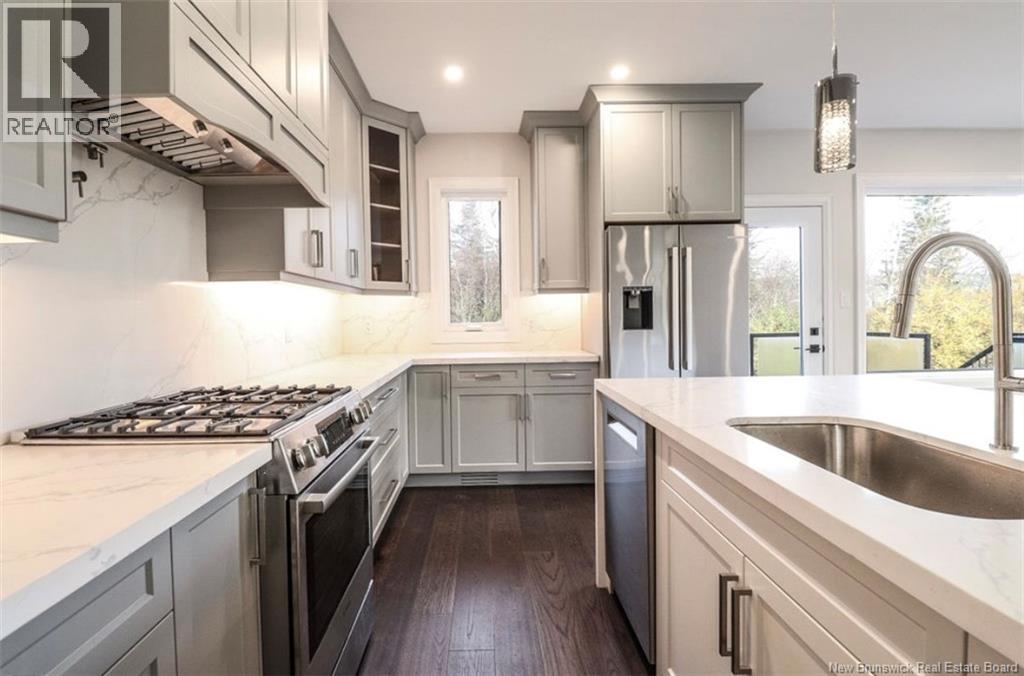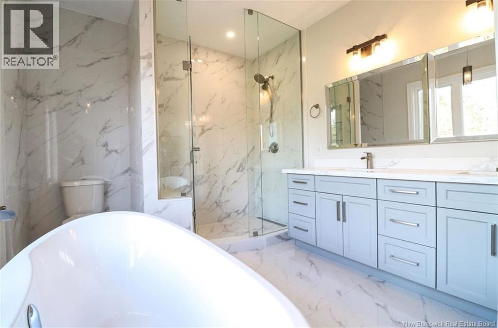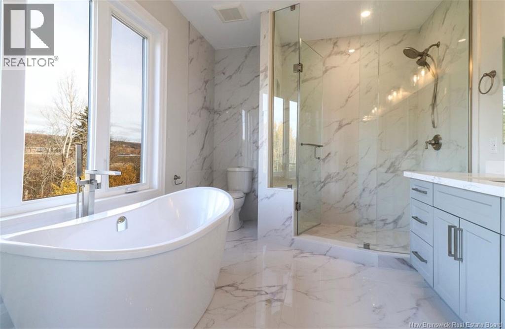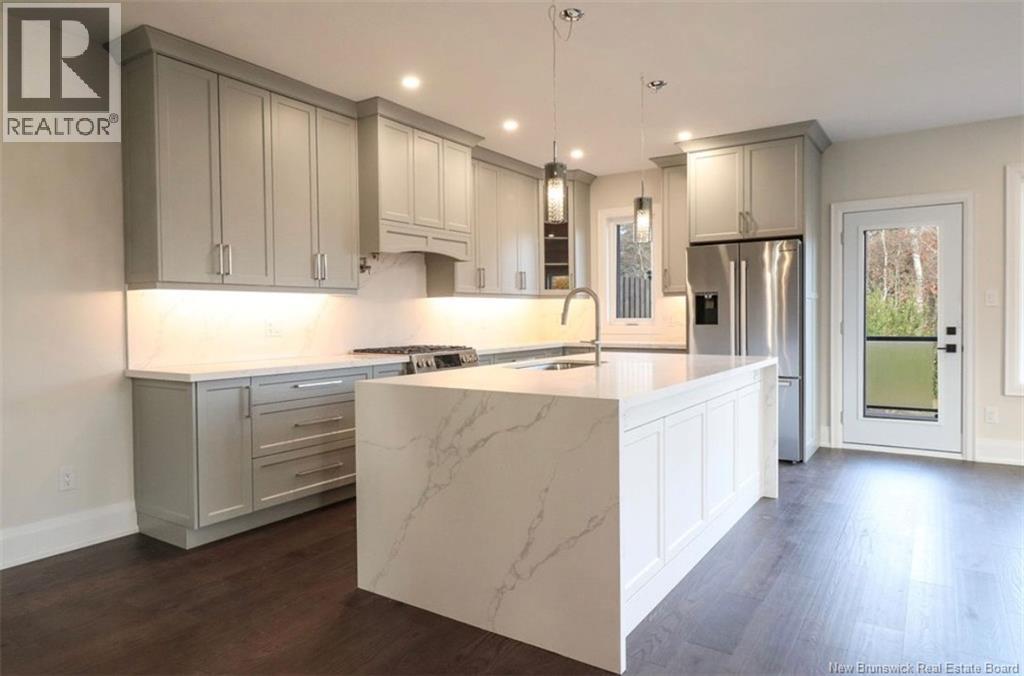 Luxury Living in Moncton North Exceptional Semi-Detached Home! Discover refined elegance in this two-storey semi-detached home, ideally located in sought-after Moncton North. Just minutes from Kingswood Academy and Northrop Frye School, it offers both prestige and convenience. Enjoy over 9-foot ceilings, high-end finishes, and a layout designed for modern living. The gourmet kitchen boasts a waterfall quartz island, pot filler, and premium appliancesideal for cooking and entertaining. Off the kitchen is a beautiful deck finished with composite and glass railings. Upstairs features four spacious bedrooms, each with private ensuites and walk-in closets, ensuring comfort and privacy for the whole family. The fully finished walkout basement offers extra living space with direct access to a private backyardperfect for relaxing or hosting. Additional highlights include: 10-inch concrete block wall between units for soundproofing and privacy Hurricane-proof roof for added security Advanced security system Cellphone signal booster Garage roughed-in for heat & EV charger Elegant finishes throughout Full feature list available upon request This home blends luxury, function, and location. Dont miss your chance to live in one of Monctons most prestigious communities. Landscaping will be completed. Book your private showing today. (id:35613)