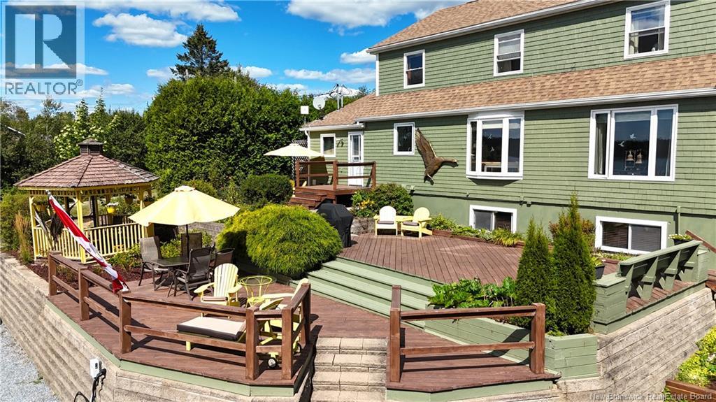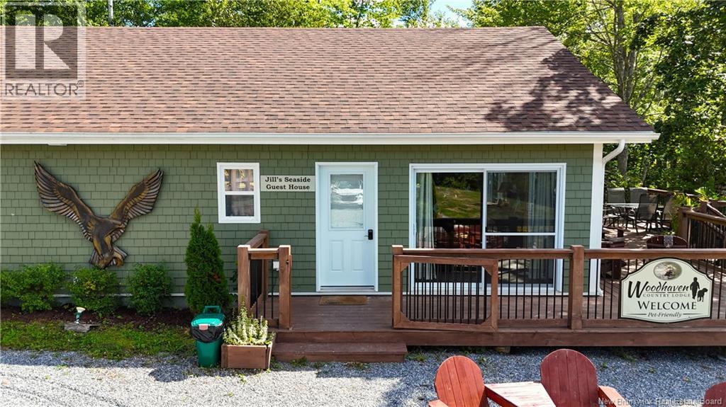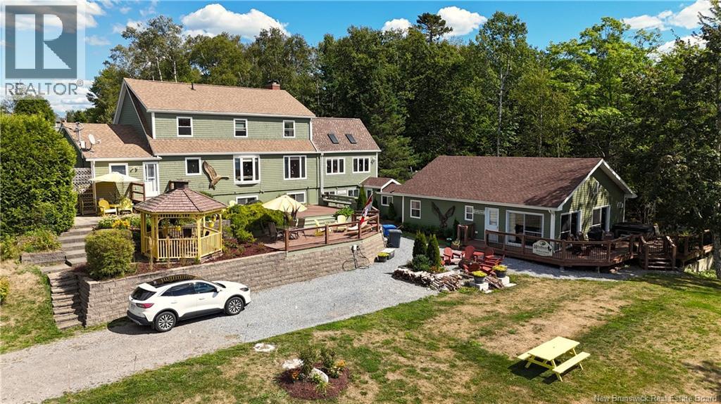 This Cape Cod executive home is surrounded by trees and nestled between St. Andrews & St. Stephen, on 1.5 acres of ocean frontage in the quiet much sought-after Oak Bay. Extraordinary sunsets, occasional seal sightings, expansive green lawns, perennial gardens and fruit trees are abound. If the power goes out, the Generac keeps the entire property 100% powered. This home has it all with 4 large bedrooms, an upstairs office window with views of the water, a large 'ocean front yard', fenced back yard for dogs/youngsters, beach access from the property, welcoming neighbors, and located only 10 minutes from shopping, public indoor pool/sports facility, arena and schools. Other features on the main level include an extended kitchen, separate dining room with wood-burning fireplace, large living room with 4 skylights, primary bedroom/ensuite all with wooden floors. The highly efficient 1600' separate 2 bedroom Guest House with f/p, is perfect for multi-generational families or double your pension income as a hospitality entrepreneur, greeting interesting guests as much as you want, from across the globe. The walk-out lower level of this home is also set up as a legal 1 bedroom apt with its own fenced yard, perfect for additional income or for visiting family/guests. Present owners have verifiable $100K+ income from guest accommodations. As a private family home or for generating an income stream, this property is a perfect family home/augmented retirement pension option. Call today (id:35613)