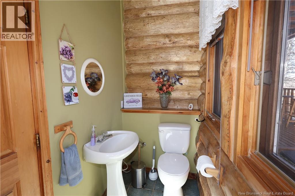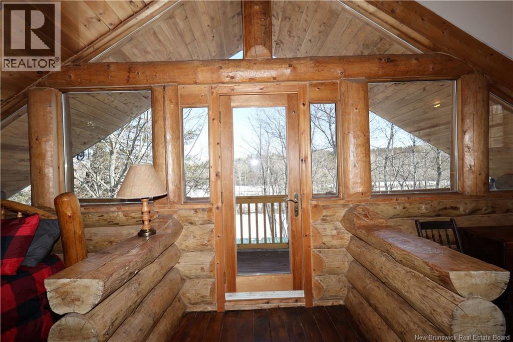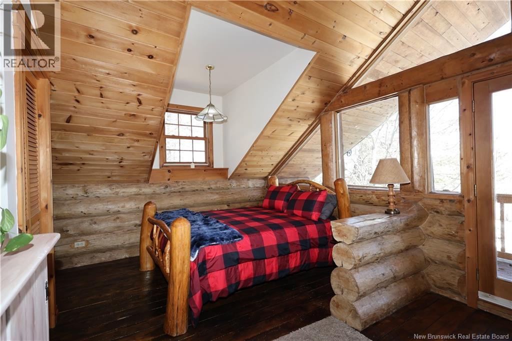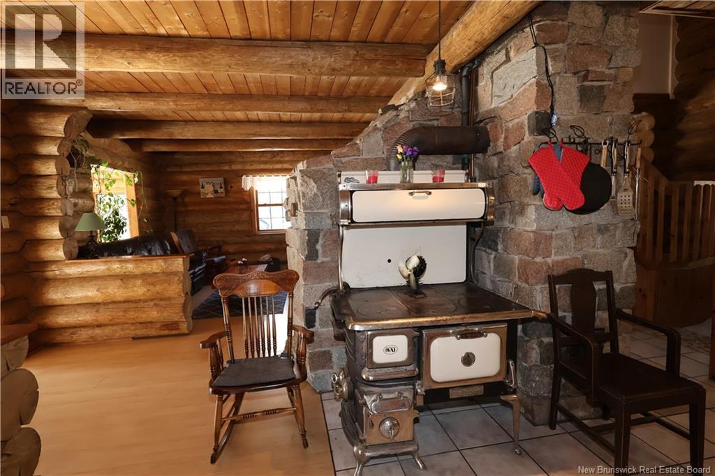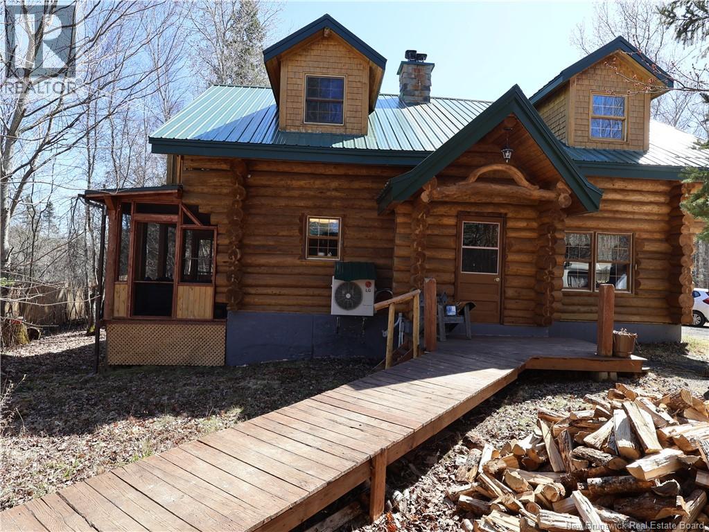 Welcome to your private riverfront retreat on the beautiful Shediac River, where nature, comfort, and lifestyle come together in perfect harmony. Set on 3.33 acres of serene land, this custom scribed log home offers a peaceful escape surrounded by mature trees and abundant wildlife. Step inside to a bright and inviting sunroomperfect for plant lovers or enjoying your morning coffee. The living room features a stunning custom granite wood-burning fireplace, creating a warm and cozy atmosphere year-round. The kitchen offers rich wood cabinetry, an electric stove, and a charming wood-burning cookstove that also serves as the homes primary heating system, efficiently warming the space through the concrete slab for comfortable radiant heat. The dining area flows seamlessly to a screened-in porch, ideal for enjoying meals while listening to the river and taking in the natural surroundings. A convenient half bath completes the main level. Upstairs, the spacious primary bedroom opens onto a private balcony overlooking the riveran ideal spot to start or end your day. Two additional bedrooms and a full bath provide ample space for family or guests. Outside, your private dock invites endless enjoymentkayaking, canoeing, paddleboarding, swimming, fishing, or simply relaxing by the waters edge. Evenings around the firepit and winter activities like snowshoeing and skating make this property a true four-season retreat. (id:35613)