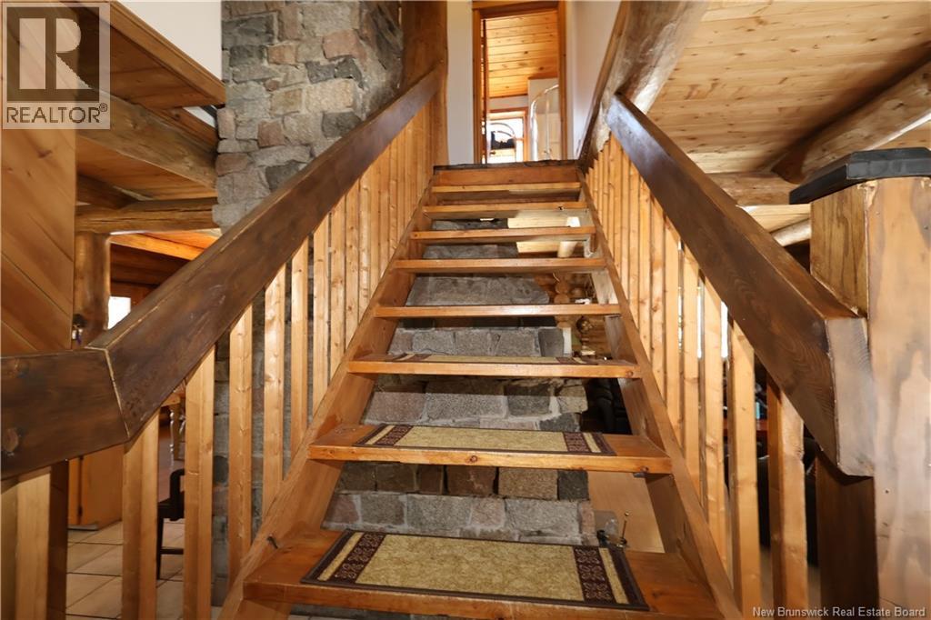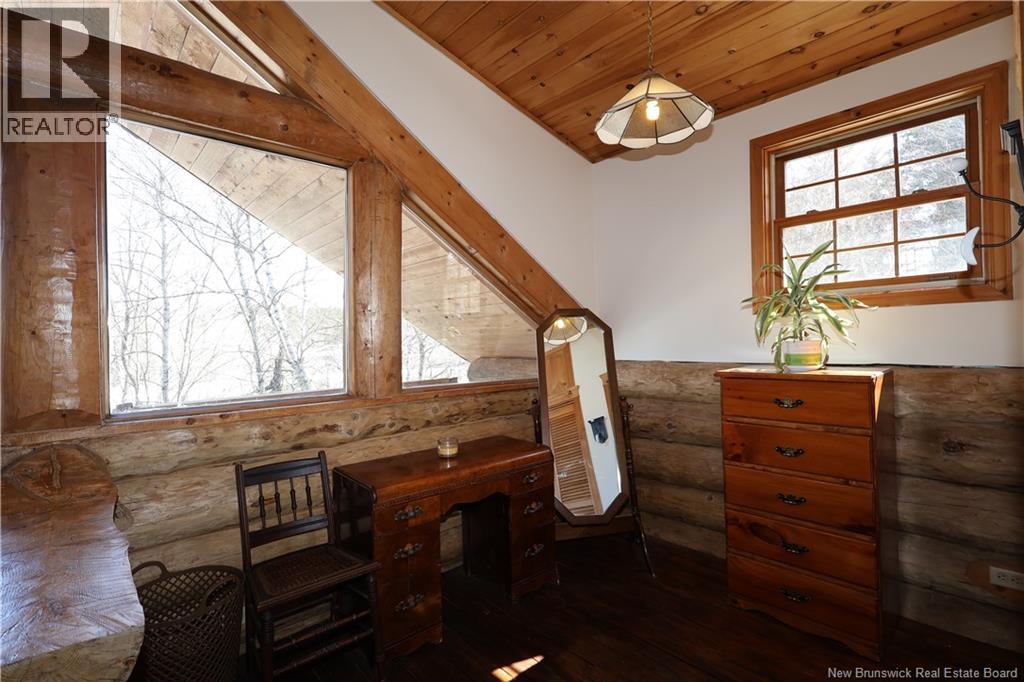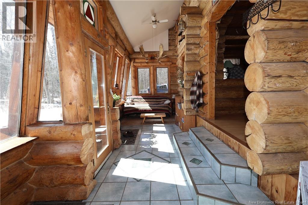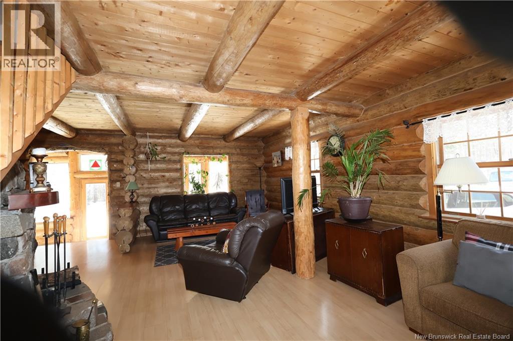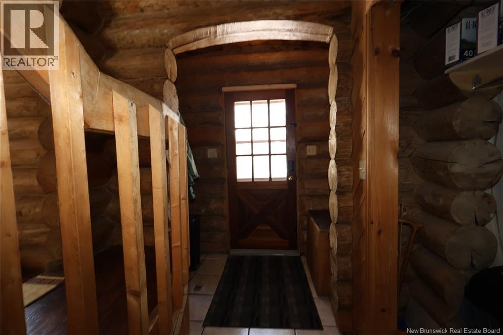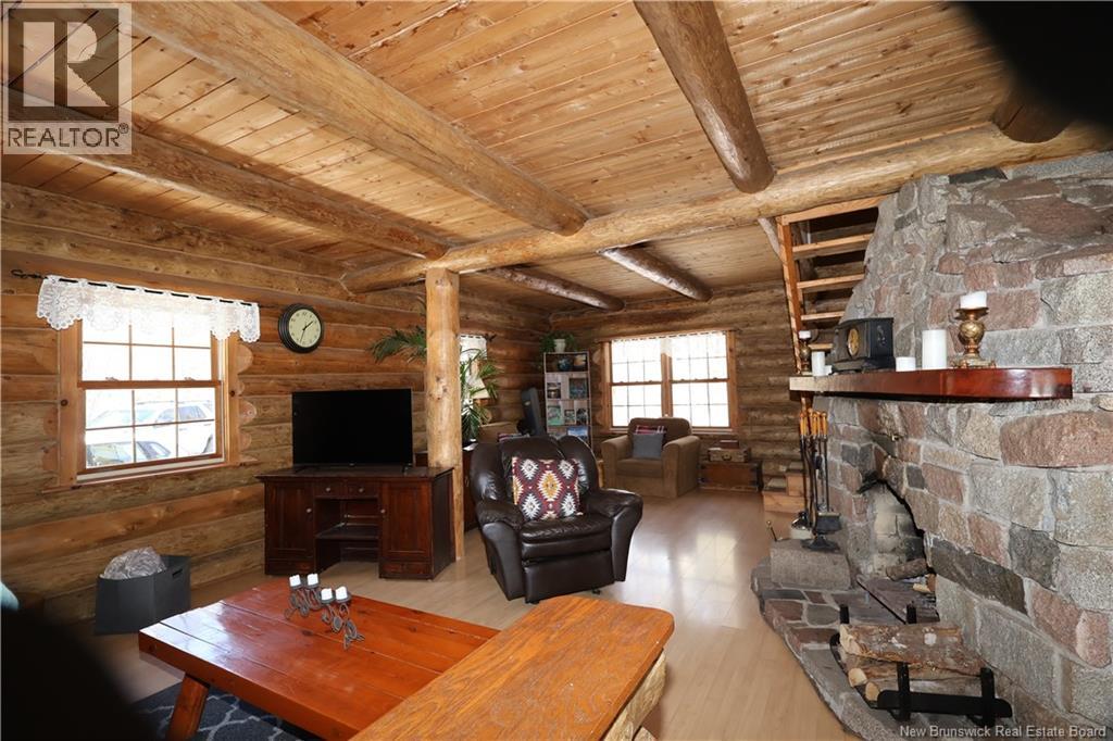 Welcome to your private riverfront retreat on the beautiful Shediac River, where nature, comfort, and lifestyle come together in perfect harmony. Set on 3.33 acres of serene land, this custom scribed log home offers a peaceful escape surrounded by mature trees and abundant wildlife. Step inside to a bright and inviting sunroomperfect for plant lovers or enjoying your morning coffee. The living room features a stunning custom granite wood-burning fireplace, creating a warm and cozy atmosphere year-round. The kitchen offers rich wood cabinetry, an electric stove, and a charming wood-burning cookstove that also serves as the homes primary heating system, efficiently warming the space through the concrete slab for comfortable radiant heat. The dining area flows seamlessly to a screened-in porch, ideal for enjoying meals while listening to the river and taking in the natural surroundings. A convenient half bath completes the main level. Upstairs, the spacious primary bedroom opens onto a private balcony overlooking the riveran ideal spot to start or end your day. Two additional bedrooms and a full bath provide ample space for family or guests. Outside, your private dock invites endless enjoymentkayaking, canoeing, paddleboarding, swimming, fishing, or simply relaxing by the waters edge. Evenings around the firepit and winter activities like snowshoeing and skating make this property a true four-season retreat. (id:35613)