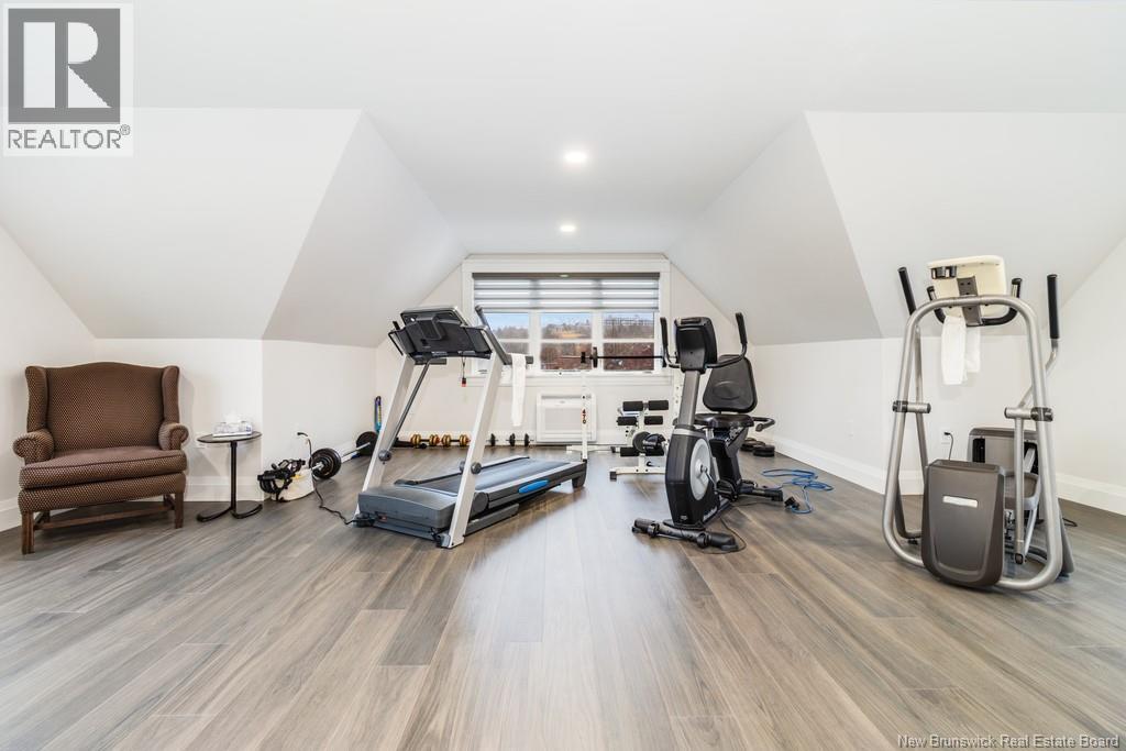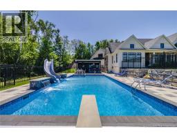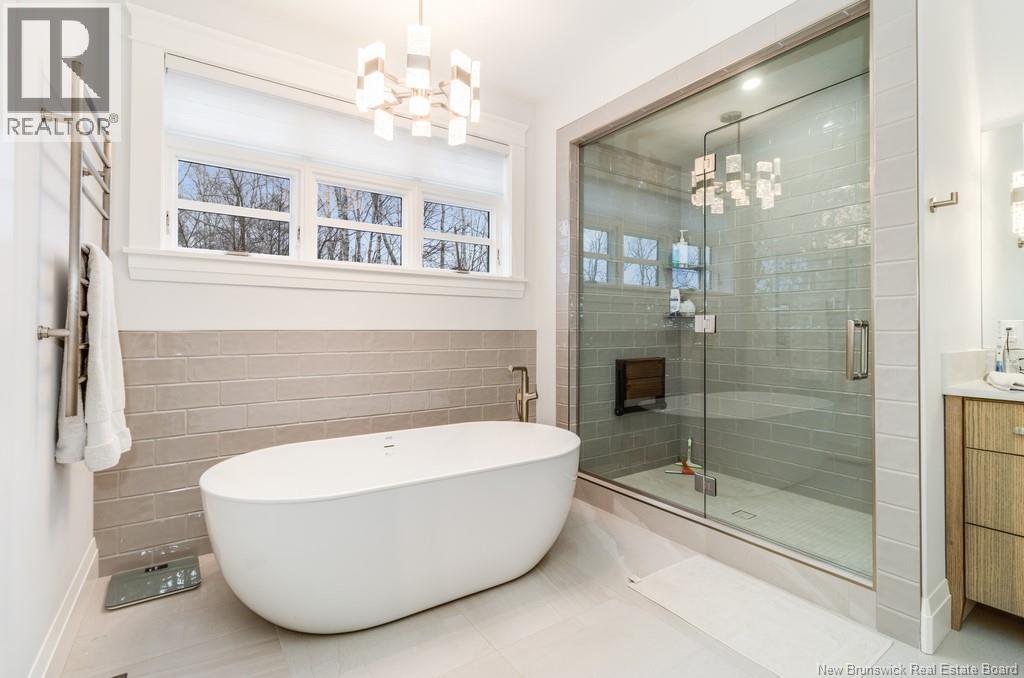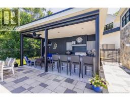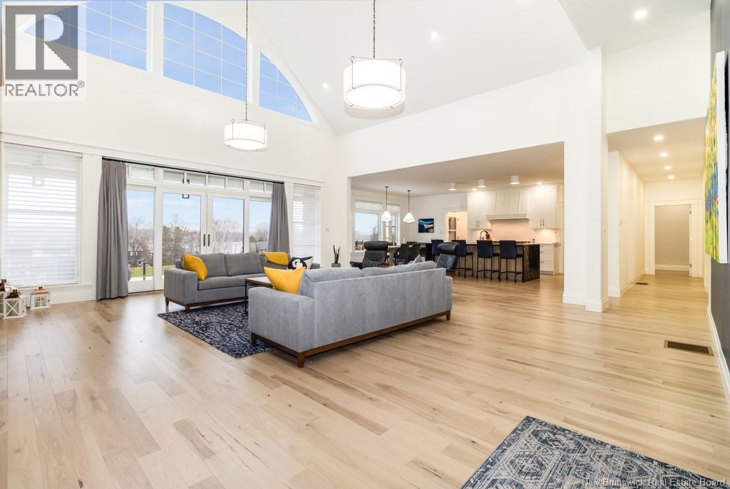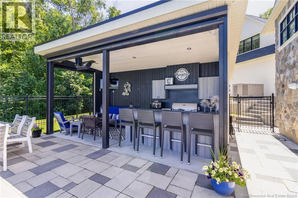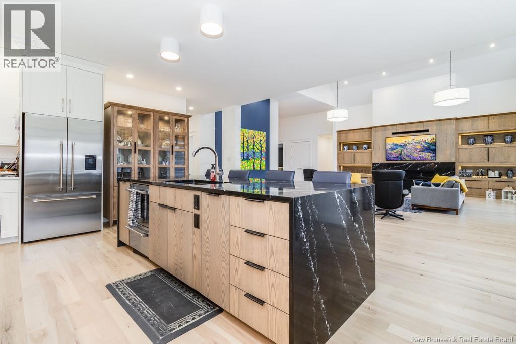 An exquisitely crafted, custom-built home situated on 1.5 acres in Fredericton South. No detail has been spared in the conception and construction of this remarkable estate-style property with over 5,300 sqft of finished space. The open-concept main living area features a spacious living room adorned with bespoke built-in cabinetry,23 foot ceilings, gas fireplace, and patio doors that lead to an outdoor sitting area offering serene river and overland views. The gourmet kitchen showcases a generous island, a eight-burner gas stove, dual dishwashers and a butlers pantry. The primary suite is a sanctuary of luxury featuring cathedral ceilings, a sprawling 15x18 walk-in closet and a spa-inspired bathroom featuring dual vanities, a custom-tiled shower and heated floors. At the opposite end of the home are two additional well-appointed bedrooms each with its own ensuite bath. A versatile fourth bedroom, currently utilized as a media room, and a large office complete this level. Staircase accessed from the mudroom, leads to the gym area and ½ bath located above the oversized 3 car garage. The lower level is partially finished including a 4th full bath, a spacious family room, and a children's secret room featuring a ball pit and climbing ladder. The outdoor amenities are equally impressive, with an exquisite in-ground pool, an expansive pool house complete with a bar and bathroom, and even an artificial turf putting green the perfect complement to this stunning estate. (id:35613)