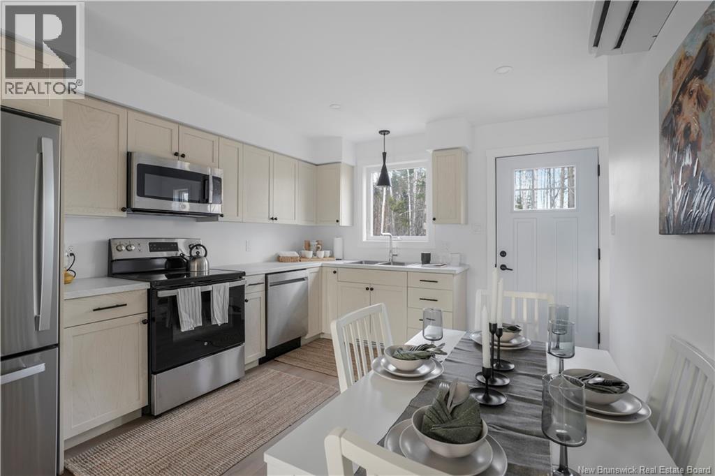 Welcome to these stunning brand-new construction townhouses in the heart of Oromocto the perfect blend of modern design, low-maintenance living, and everyday comfort. These stylish two-level homes feature an inviting main floor layout with an open-concept living area, a convenient half bath, and a bright, functional kitchen that comes complete with all major GE appliances included. Upstairs, youll find two spacious bedrooms and a full bathroom, making this an ideal layout for singles, couples, or small families. Lots of potential future space in the unfinished basement, with an additional roughed in bathroom, and an egress window for a 3rd bedroom. Built with quality and efficiency in mind, each home includes an energy-efficient heat pump on the main level for year-round climate control. Outside, enjoy the convenience of a paved driveway and the fresh look of a hydroseeded lawn, providing instant curb appeal without the hassle. For added peace of mind, every unit is backed by a 10-year Lux New Home Warranty, giving you confidence in your investment and your future. Located in a welcoming Oromocto neighbourhood just steps to Arc-en-ciel, parks, and amenities, these townhouses are a rare opportunity to own a brand-new home in a growing community. Ready for October closing! (HST Rebate back to builder on close. Photos of Unit 20 - units may vary) (id:35613)