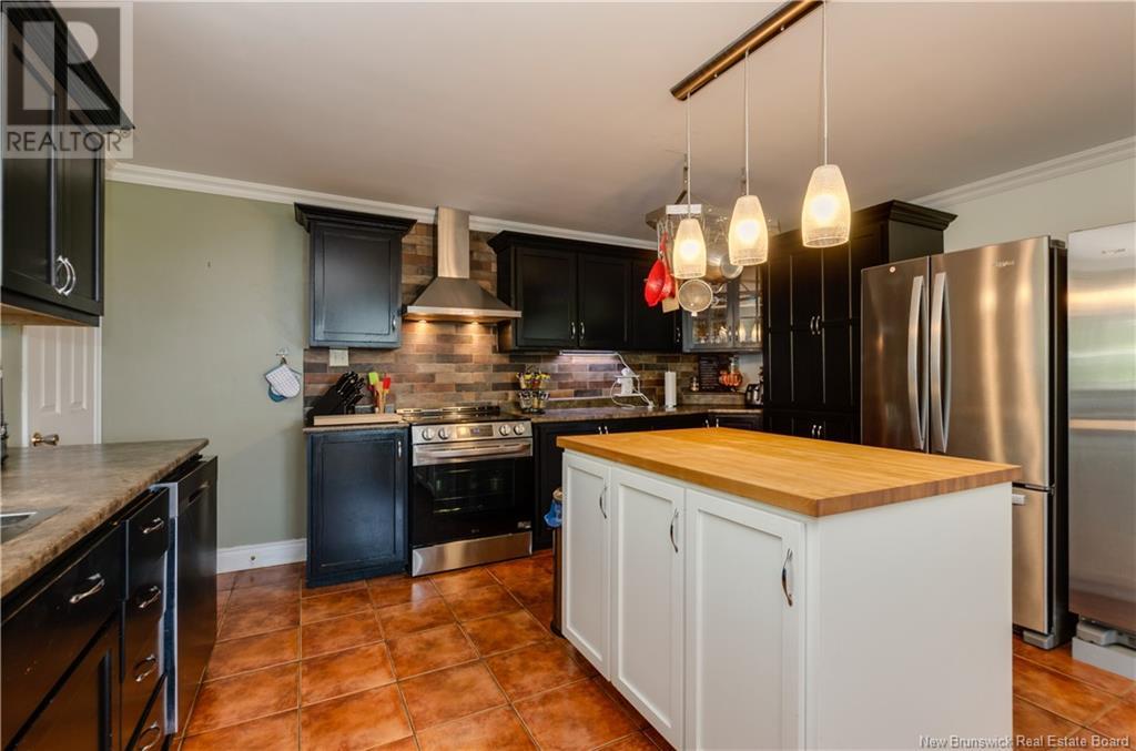 Large rural family home with detached car garage & several outbuildings. Welcome to 1750 RTE 114, this home has plenty to offer, main level living with additional space in the basement. Custom black kitchen cabinets, butcher block island & patio doors off the dining room leading to a 16x16 deck with a view of the river. Home is heated by mini splits and wood furnace, has oversized windows allowing for natural sunlight. Hardwood, laminate and ceramic floors throughout the home. Featuring 2 bedrooms both with their own mini splits, 4 bathrooms, dining room, kitchen, living room, family room, and laundry area. This home has tons of sq footage & is wired for generator back up, 200AMP panel and 2 hot water tanks. Outside there is 3 baby barns( generator shed, 10x16 storage shed, garden shed) a greenhouse, 2 guest houses( 16x24, 12x16) a dog kennel and 42x40 garage with 10ft ceilings. The garage is well insulated and wired with a workshop space. This would make a great family home, rental or air BnB. Located in Stoney Creek, only 12 minutes to Riverview or 10 to Hillsborough, rural living minutes away from amenities. Contact your REALTOR® today to book a showing. (id:35613)