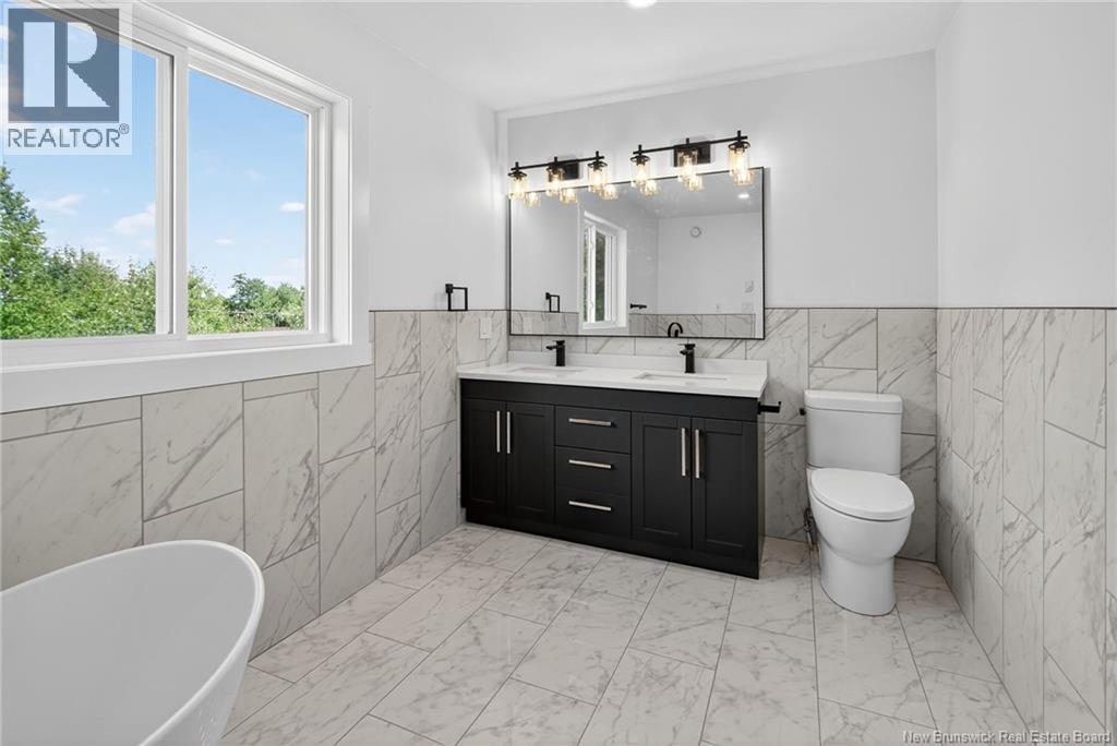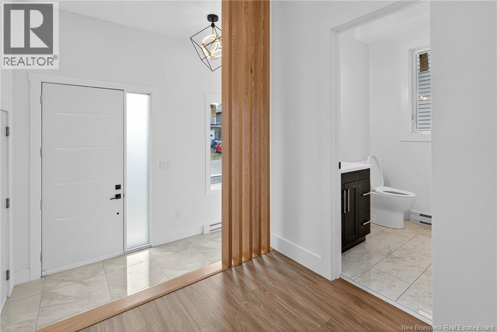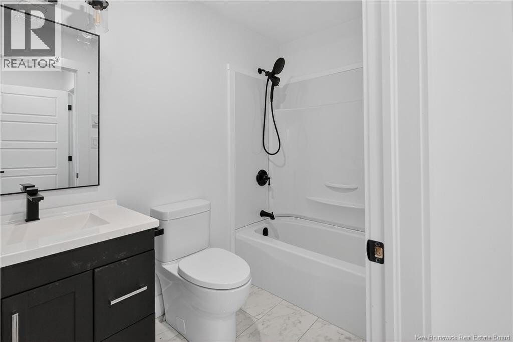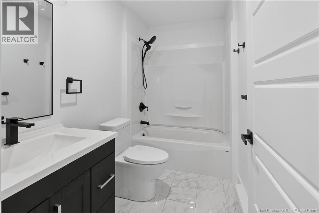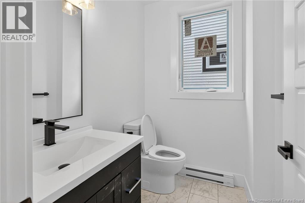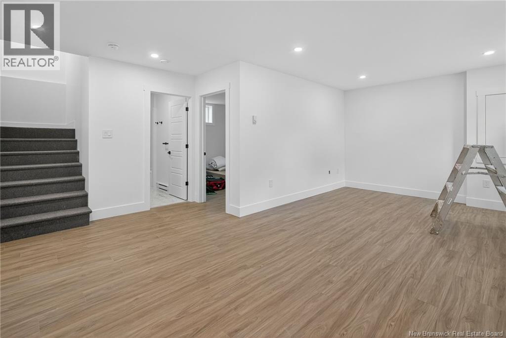 18 Weavers Way is a NEW CONSTRUCTION (5 bdrm+3.5 bath) ready for a family to move in. An energy efficient home, ICF FINISHED BASEMENT, with 9-foot ceiling on main floor & rigid insulation on the exterior walls . It is within the city, where you can enjoy full family life: 8 min to Fredericton downtown and 4 min. To Walmart/kent/Canadian Tire & 3 min to Willie O Ree Sport Complex. It has everything to offer a family with cozy and comfortable living. When you enter through a covered front veranda (concrete deck), it leads into a spacious high ceiling 11ft front foyer & a two piece guest bathroom. The living area is open concept that creates a fluid space between the living room, dining space, and kitchen area. The custom kitchen comes with an island, quartz countertop,lots of counter space. The patio door from the dining area gives you access to a deck perfect for barbecues and family relaxation. The upper level has 3 very spacious bedrooms and a den/office (can be a bedroom too), a main bath & laundry closet. The master suite has a walk-in closet, ensuite bath with soaker tub, stand-alone shower & double vanity. The basement area is FULLY FINISHED with a full bath, a large bedroom, a family room & storage space. Home comes with 7 years Atlantic Home Warranty, ductless heat pump with baseboard backup. The listing REALTOR® is a director for the company who is the vendor & is a Licensed REALTOR®. Builder rebate goes to builder. Garage door: 9ftx9ft (id:35613)
