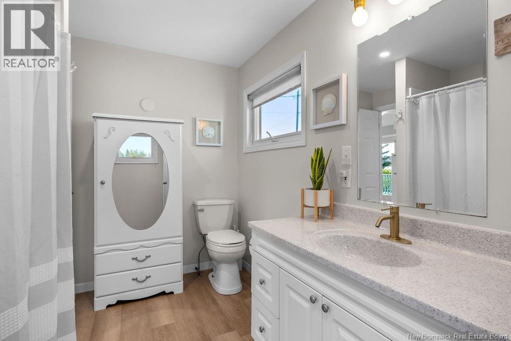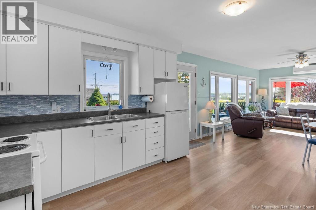 Welcome to your very own COASTAL RETREAT in Grande-Digue! This FULLY FURNISHED charming cottage sits on a spacious DOUBLE LOT with breathtaking OCEAN VIEWS and is just a 2-minute stroll to a stunning private beach. Step through the ocean-side entrance into a bright, open-concept living area filled with natural light and panoramic water views from every window. The cozy living room features a mini-split (2022) for additional comfort, while the white eat-in kitchen offers a side entrance for easy BBQ access. The renovated 3-piece bathroom (2024) includes a new shower, vanity, flooring, and sleek lighting. It also has a designated laundry area and convenient linen closet. Two charming bedrooms complete the interior. Outside, enjoy a wrap-around ocean-facing deck, perfect for morning sunrises and evening sunsets. A spacious baby barn adds extra storage and the large level yard allows for plenty of activities. 2024 upgrades include vinyl flooring throughout, a new refrigerator, and water tank. The roof was redone in 2018, and the well-maintained septic was emptied in 2023. It is currently being used as a 3-season cottage, but can easily be winterized for comfortable year-round living. This is seaside living at its bestdont miss this opportunity! (id:35613)