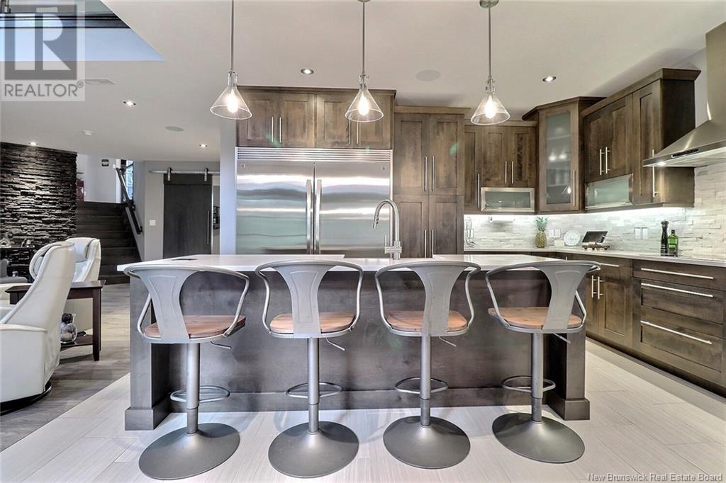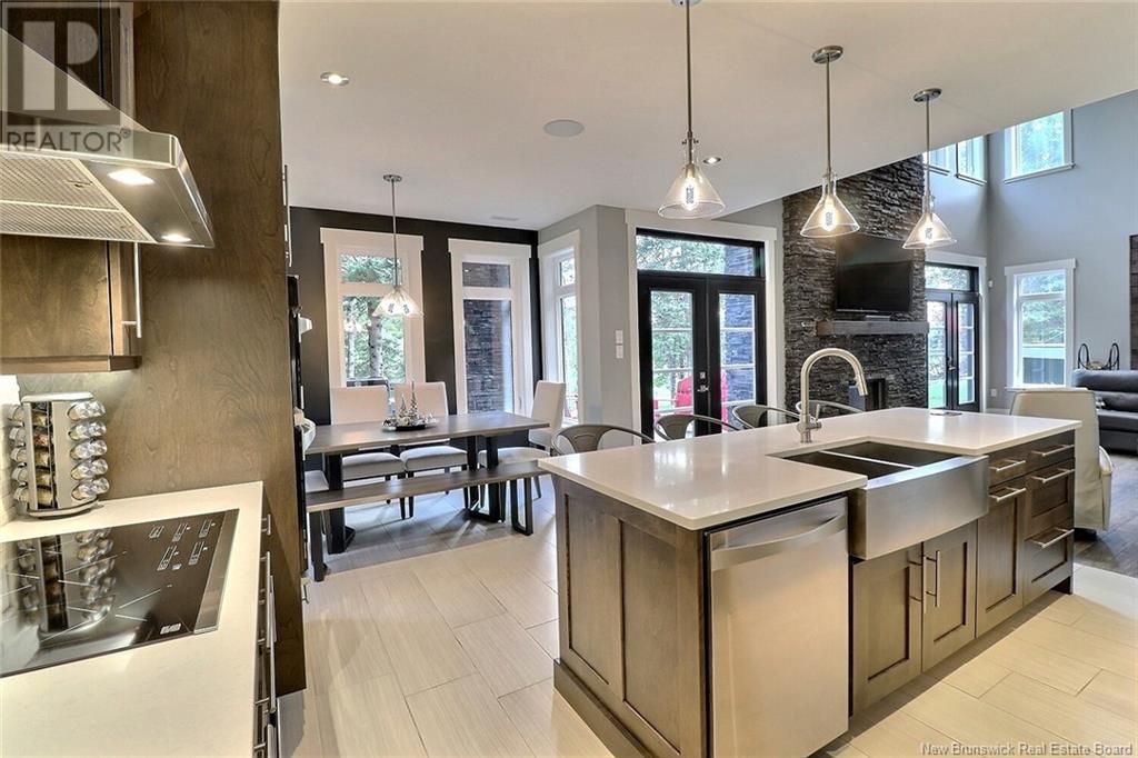 AMAZING RESORT- STYLE LIVING - WATERFRONT HOME - LUXURY THROUGHOUT Architecturally stunning, this custom home has lots to offer. From fishing in your backyard to enjoying a beautiful sail on your kayak, canoe or small watercraft. Sitting on 1.8 acres on the Kouchibouguac River, this house has an attached 50x35 (12ceilings) three garage doors including a 10' high door giving you access to store all your toys, boat an RV, with newly installed mini split in 2021 giving you a heat/cool/humidity control working environment year round.This home is a must see to appreciate the stunning views of the river and modern and sleek design of the upper and lower levels exquisitely finished with cultured stone, high end glass railings, 24 sloped ceilings and ceramic tiles throughout with in floor radiant heat roughed-in for the entire living space on lower level.This home also features a beautiful floor to ceiling custom luxury in-wall wood stove fireplace and modern mantel, a state of the art kitchen with QUARTZ countertops, hidden walk in pantry and high end stainless steel appliances. The lower level also has a full bathroom and extra room that could be an office.Upstairs, the loft is overlooking the river and the living room area and fireplace. The master bedroom is complete with balcony overlooking the river, tray ceiling, walk in closet, soaker tub and cheater door to the 4 pieces bathroom with laundry. This level also features two other bedrooms. (id:35613)