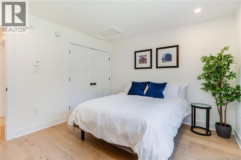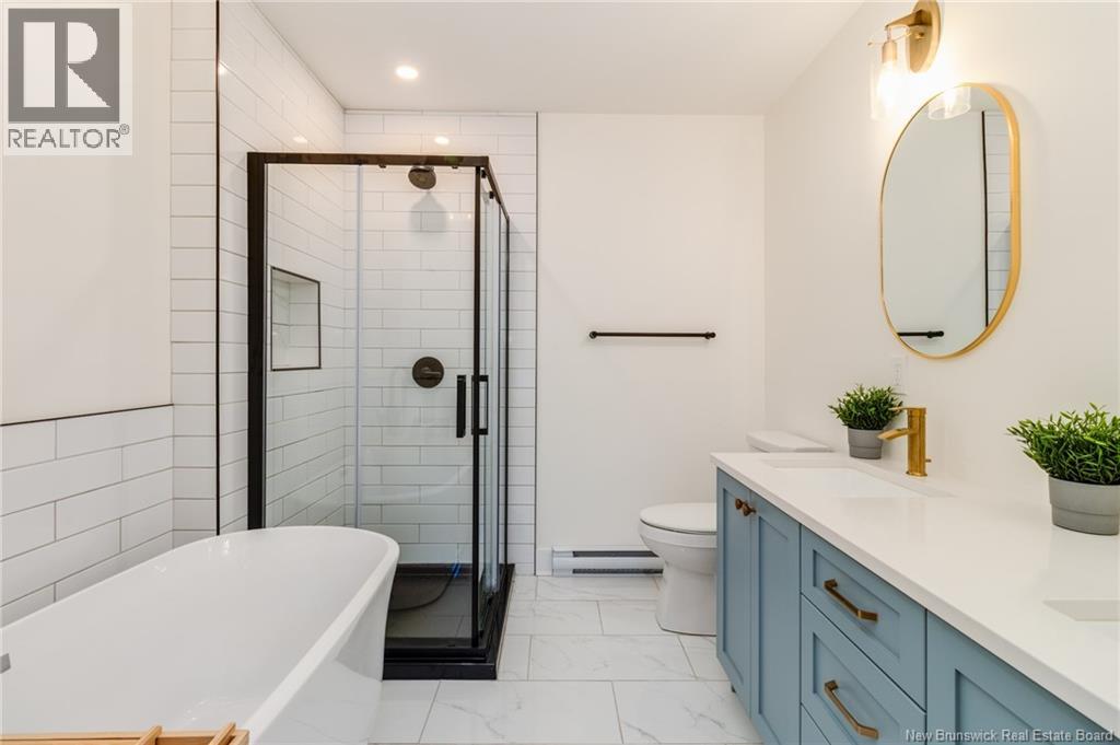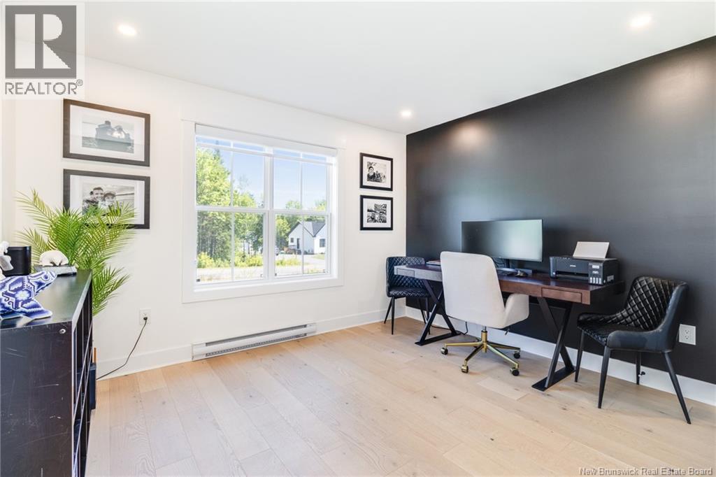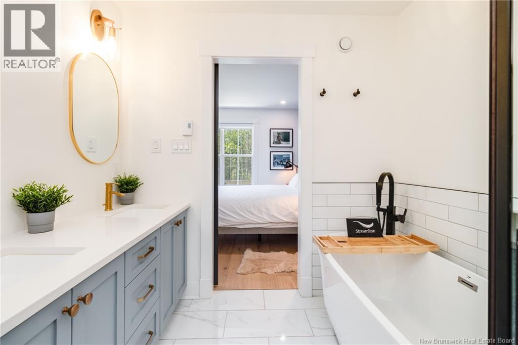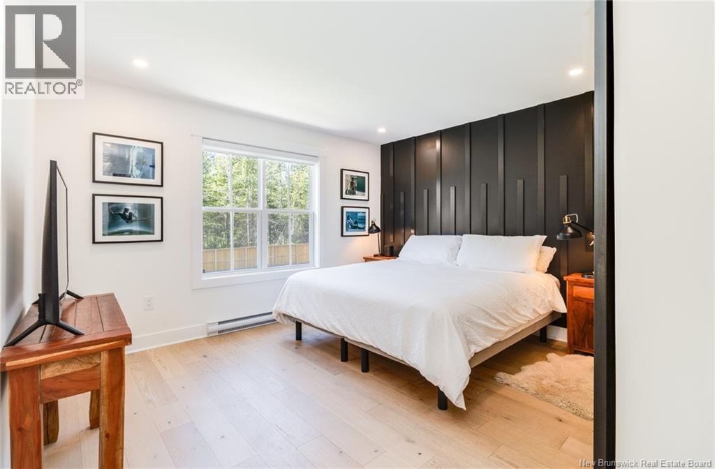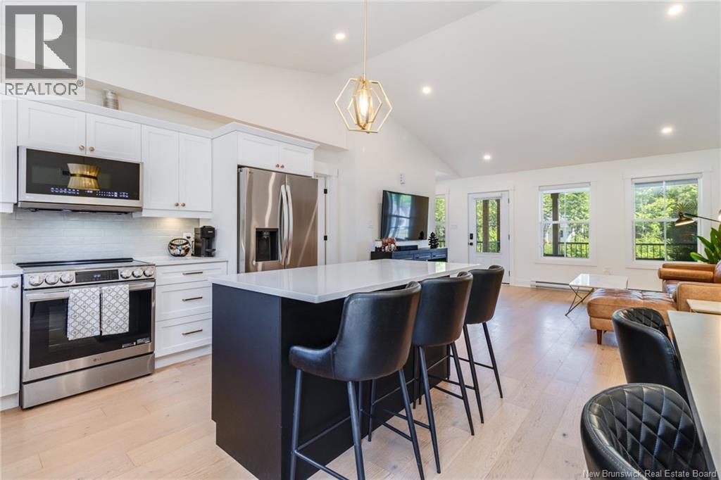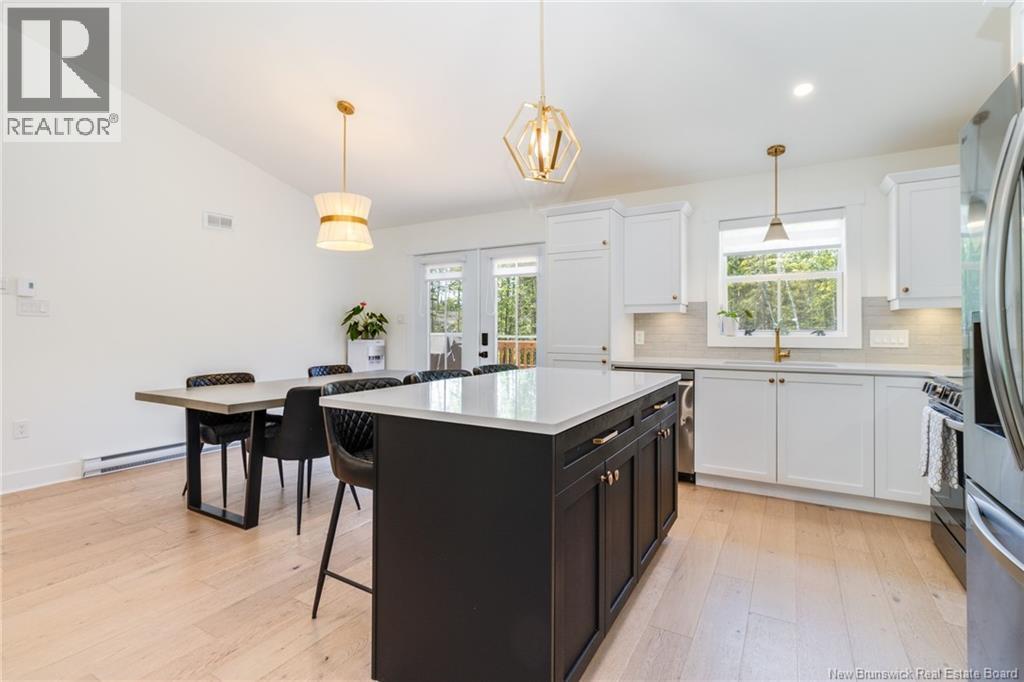 Welcome to 20 Peabody Road - a custom-built 5 bedroom, 3 bath executive bungalow on a landscaped 1 acre lot in Rusagonis. Built in 2023 by Wilde Custom Homes, this modern home is move-in ready and has had plenty of upgrades. The open concept main floor features cathedral ceilings, custom hardwood floors, and a kitchen by Kitchen Creations with quartz countertops and an oversized island. The primary suite includes a walk-in closet and a 4 piece ensuite with a freestanding tub and tiled shower. Two more bedrooms and a full bath complete the main level with a pocket door to divide them from the main living space. Downstairs offers an extra-large family room with built-in cabinets, 2 additional bedrooms (one used as a gym), a full bath, and storage. The attached 24x28 garage is heated, insulated, and includes a Tesla EV charger. Outside, the fully fenced backyard features a hot tub with a gazebo, an oversized storage shed, and trees lining the lot for privacy. Additional features include custom zebra blinds throughout, ductless heat pumps, a generator panel, and remaining new home warranty. Located between Fredericton and Oromocto with quick highway access. (id:35613)