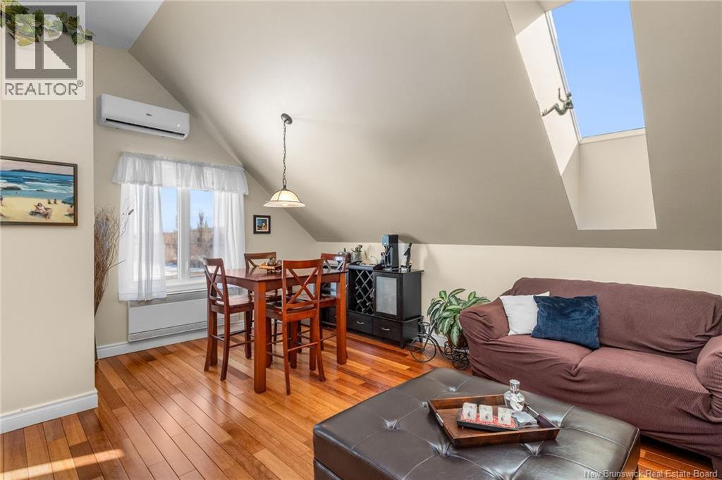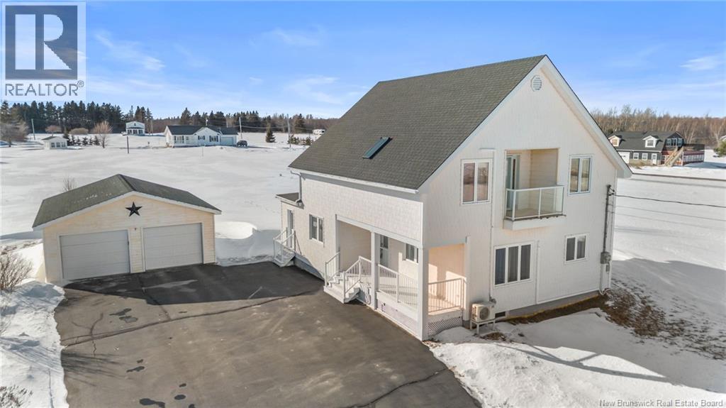 Welcome to 2123 Route 530 in Grande-Digue, a Cape Cod inspired 1½ storey home offering the perfect blend of character and seaside lifestyle. Enter from the covered side porch into the inviting kitchen and dining area, featuring a large island with bar seating, stainless steel appliances, warm beige backsplash, and a cozy dining nook. The kitchen opens to a bright living room with large windows facing the ocean and a mini-split for year-round comfort. Just off the kitchen, the sunroom provides the perfect spot to relax while enjoying your morning coffee. The main floor also includes a renovated 4-piece bathroom with laundry area and a spacious bedroom. Hardwood floors flow through the bedroom, living room, and hallway, while new vinyl flooring completes the rest of the level. Upstairs, hardwood and ceramic flooring continue throughout. Two additional bedrooms offer excellent space, one with a walk-in closet and the other with extra storage. A 3-piece bath and a bonus sitting room with skylight, mini-split, and access to the balcony complete this level, where you can take in breathtaking ocean views. The unfinished basement provides ample storage space. Outside, the 2 acre lot offers open space facing the ocean and a detached double car garage. Just a short walk to the shoreline, this is seaside living at its finest. Book your private viewing today before the opportunity is gone! (id:35613)