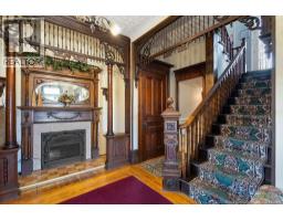 This stunning two-storey Victorian-style home is conveniently located within walking distance to all downtown amenities. The main floor boasts a spacious foyer with beautiful hardwood floors, original trim, baseboards, and pocket doors. The living room features a cozy woodstove, while the dining room includes a built-in China cabinet. The kitchen is equipped with a walk-in pantry, a den/office, a full bath, and a family room currently used as a bedroom. The second level offers a den, three bedrooms each with their own ensuite, and one bedroom with outside access to a private sitting area. Additionally, there is a fourth bedroom with a half bath and access to an attic that could potentially be converted into additional living space. Call for a viewing today. The lowest level includes storage and laundry facilities, as well as a walkout basement with an in-law suite or the option to be used as a one-bedroom apartment. Relax on the front covered veranda or enjoy the spacious deck out back. (id:35613)