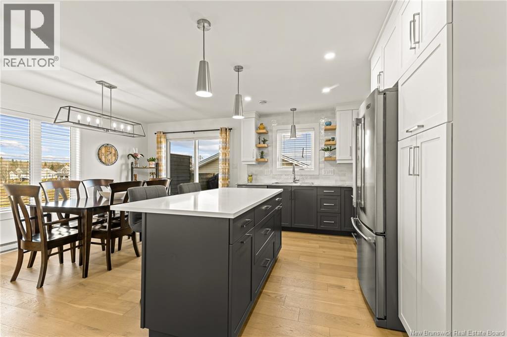Welcome to 22 Donat, a stylish and modern 2-storey home built in 2023, offering the comfort of like-new living in a desirable Dieppe neighbourhood. This impressive property features beautiful street appeal and a warm, inviting interior. The main floor is bright and open, with a spacious living room highlighted by a contemporary shiplap fireplace and abundant natural light. The kitchen is thoughtfully designed with floor-to-ceiling cabinetry, a quartz island with seating, a stunning backsplash, and a generous walk-in pantry. A practical mudroom and a convenient 2-piece bath complete the main level. Upstairs, the primary bedroom offers a relaxing retreat with tray ceilings, a walk-in closet, and a spa-inspired ensuite. Two additional well-proportioned bedrooms, a full second bath, and laundry are also located on this floor. The finished basement adds even more value with a comfortable family room, a fourth bedroom, and a third full bathroom, making it ideal for guests or extended family. Other features include: storage shed, epoxy in garage, close to schools and shopping, family neighbourhood, and more. This home combines style, function, and peace of mind with remaining new home warranty. Move-in ready and awaiting its new owners. Equalized Nb power is $208 per month (id:35613)