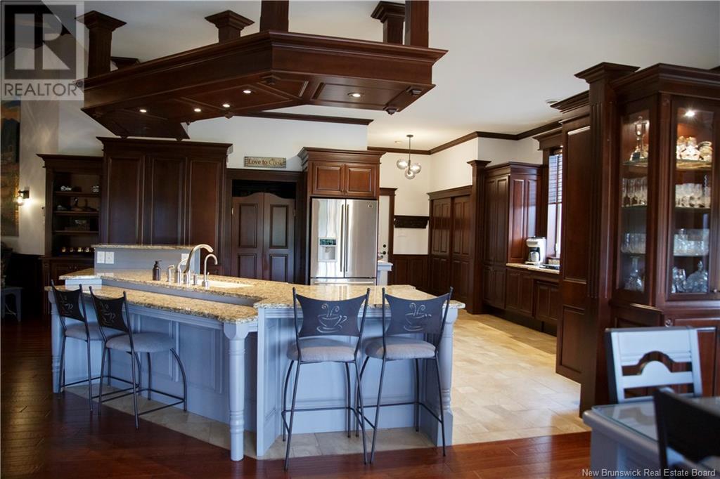 RADIANT FLOOR HEAT// PROPANE STOVE//CUSTOM BUILT-WHEELCHAIR ACCESSIBLE THROUGHOUT// PORCELAIN FLOORS//EPOXY COMMERCIAL FLOORING//ENGINEERED HARDWOOD FLOORS//HEATPUMP//PAVED DRIVEWAY//SCREEN PORCH// RED CHERRY CABINETS// and more! This magazine-worthy home simply stunning & you will fall in love the minute you walk in! This is an opportunity to own A beautiful & elegant home in St-Basile NB! Built in 2007 with wonderful details such as porcelain & hardwood flooring, gorgeous crown molding and doors, luxury kitchens & baths, vaulted 8-15""ceilings, high-end appliances, decks & screened in porch with amazing mountain views, & a private backyard- this home simply checks all the wish list boxes & more! Main floor offers a delightful high-end open concept kitchen with walk in pantry, living room, dining room, office, 2 entrances, screen porch, laundry room, guest bedroom and full bath, plus a beautiful master bedroom with access to the screened in porch, Massive walk in closet, & luxurious full bath. One level living and wheelchair friendly. AMAZING fully landscaped backyard with mountain views in every direction! Attached finished 30x36 garage with radiant heat commercial epoxy floors, + 2 attached sheds. MUST BE SEEN- call today to schedule a tour. (id:35613)