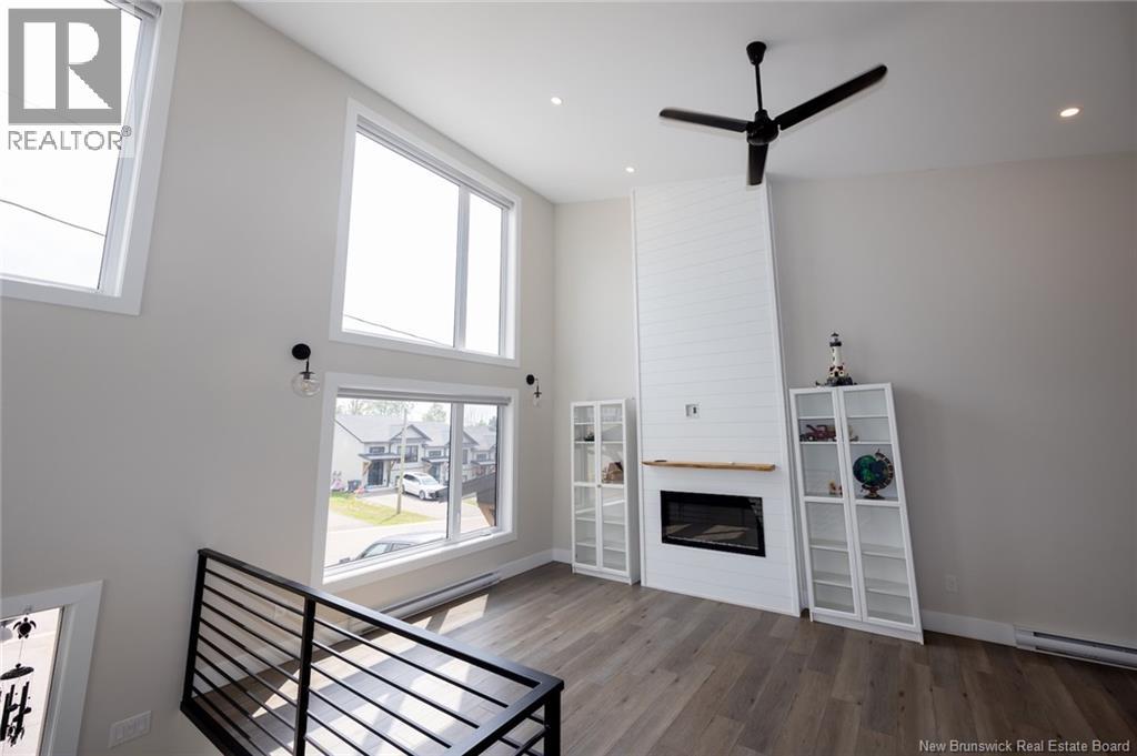Stylish, modern, and move-in ready! This stunning end-unit townhome boasts 16-ft cathedral ceilings, large windows, and a sleek architectural design that maximizes light and space. The open-concept main floor features a bright kitchen with centre island, beautiful finishes, and all appliances included. The dining and living areas flow seamlessly, highlighted by a shiplap accent wall and built-in electric fireplace. A 2-pc bathroom and sliding door open to a 12x12 back deck and fully fenced yard, perfect for relaxing or entertaining. The fully finished split-level layout includes 3 spacious bedrooms downstairs, a 4-pc bathroom, laundry closet, and storage. Durable vinyl plank flooring runs throughout the home. Stay comfortable year-round with a heat pump providing cozy warmth in winter and cool relief in summer. Additional features include central vac, ECO HRV system, and extra outdoor space thanks to the end-unit location. Nestled in a quiet neighborhood just minutes from shops, the airport, and with easy access to beaches, this home offers the best of comfort, convenience, and East Coast living. A true gem in a prime location. (id:35613)