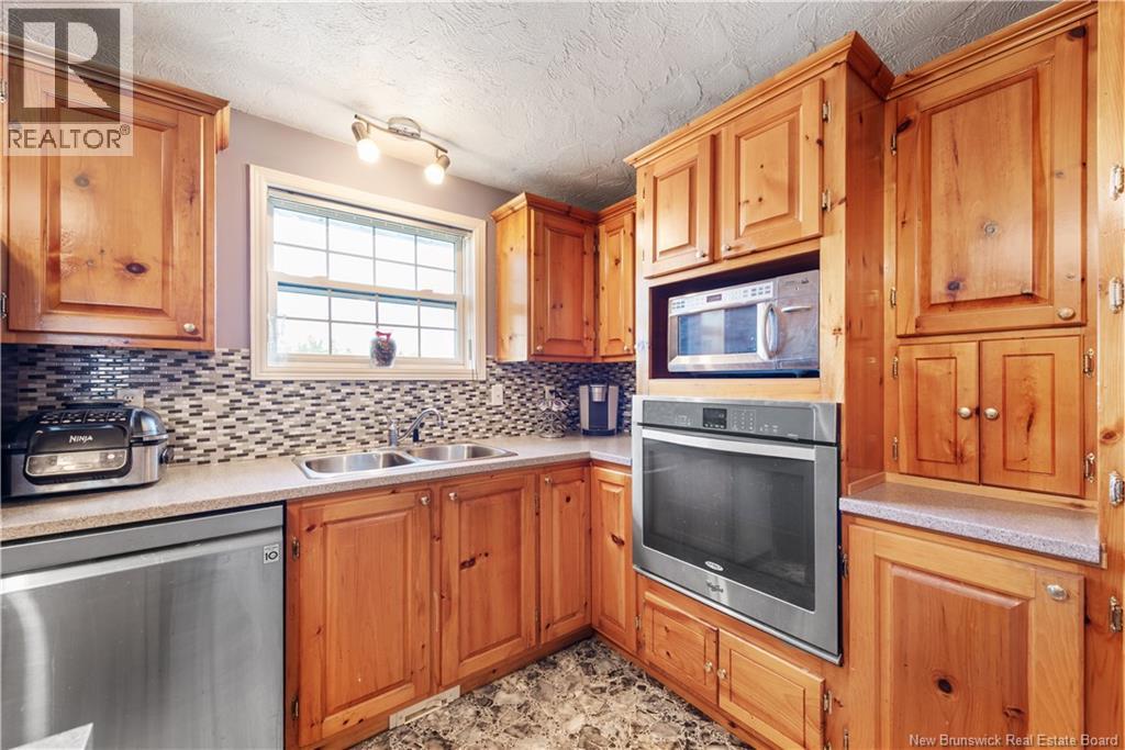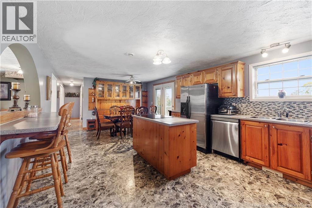 Dont miss this opportunity! Sitting on over 2 acres of land in the beautiful village of Memramcook, this charming bungalow with a double attached garage is a true gem. Step inside to discover a spacious kitchen featuring plenty of cabinetry, a stylish backsplash, stainless steel appliances, and a cooktop conveniently located on the island. The islands raised bar seating overlooks the inviting living room perfect for entertaining family and friends. The main level offers two generous bedrooms, a large 4-piece bathroom, and a convenient laundry area to complete the space. The fully finished walk-out basement adds even more living space, featuring a large family room, kitchen, dining area, a non-conforming bedroom, a spacious living room, and a full bathroom ideal for guests or extended family. This home is efficiently heated and cooled with a mini-split heat pump. Outside, youll love the expansive wooded backyard, paved driveway, double attached garage, and an additional detached garage for all your storage or workshop needs. Call today for more details or to schedule your private viewing! (id:35613)