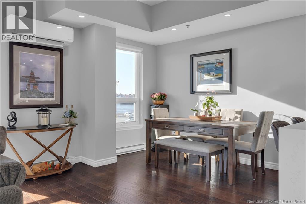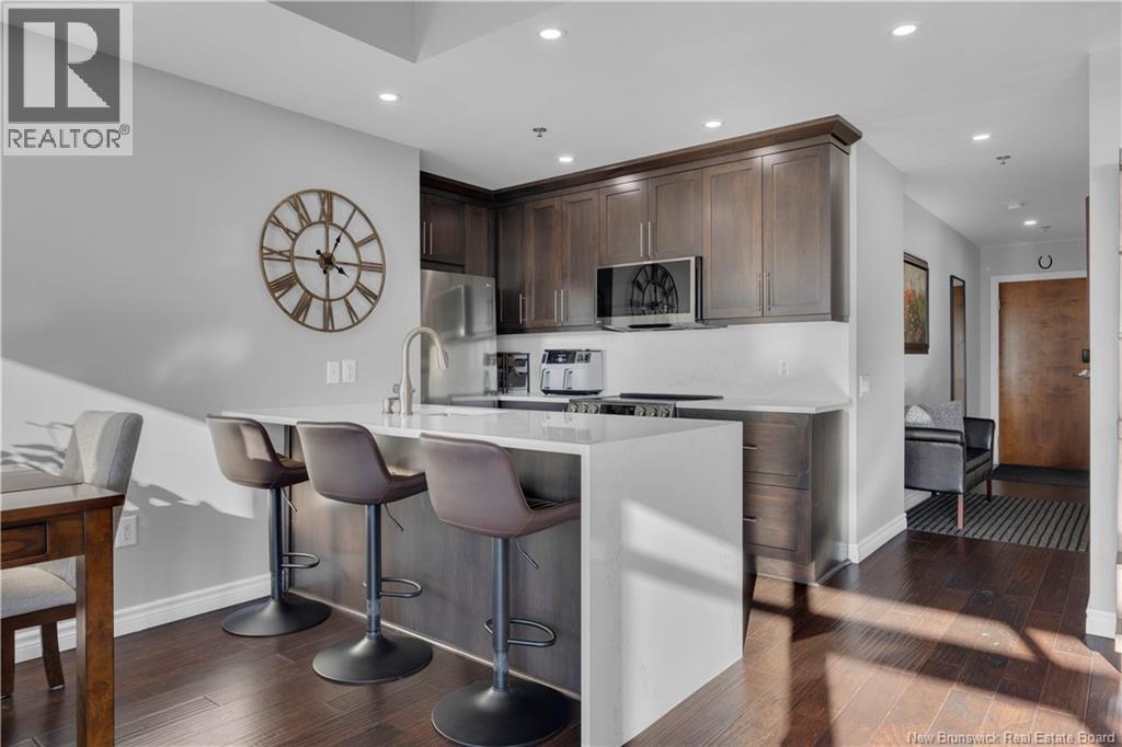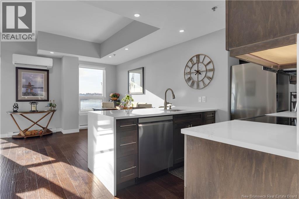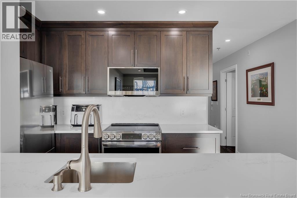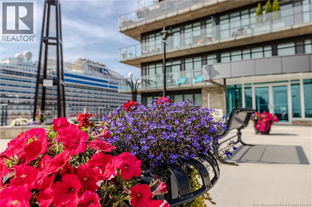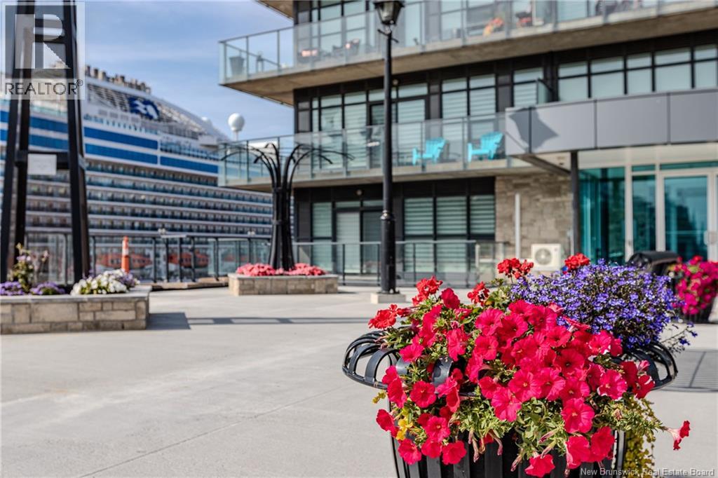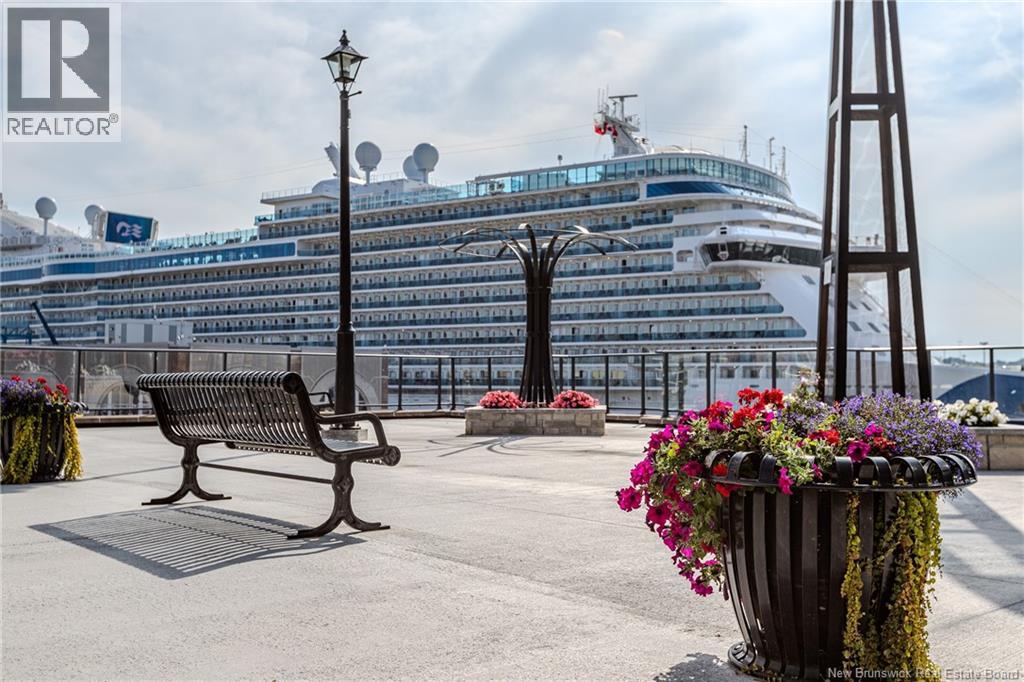 Overlooking Saint John Harbour, enjoy the views of visiting cruise ships or Fireworks from this 14 ft 6 in X 5 ft balcony. Walking distance to trendy restaurants, theater, business district and TD Station. Fully equipped fitness center. Tastefully appointed guest suite for over night guests, party and events room with partial kitchen, 2 fireplaces and big screen TVs for entertaining. Monthly condo fees $749.70 include heat, electricity garbage removal, one parking space P78 on P level 1, and use of all the amenities. The kitchen has been updated and renovated. Kitchen appliances replaced. Kitchen cabinets and counter tops and back splash replaced. This suite has been meticulously maintained. There is a large private plaza with lovely patio furniture and barbeque available for the residents, Please remove shoes when entering the condo. (id:35613)