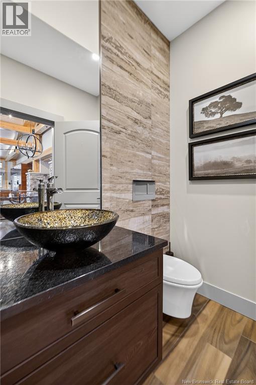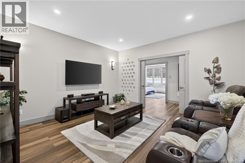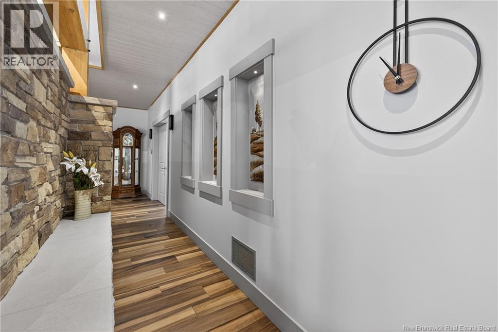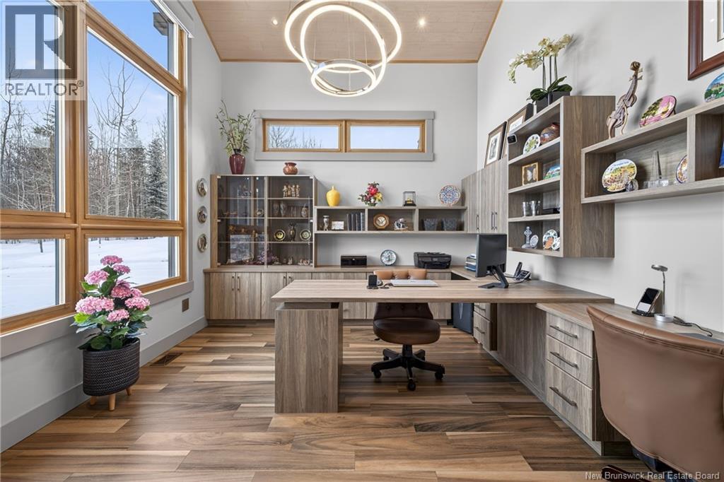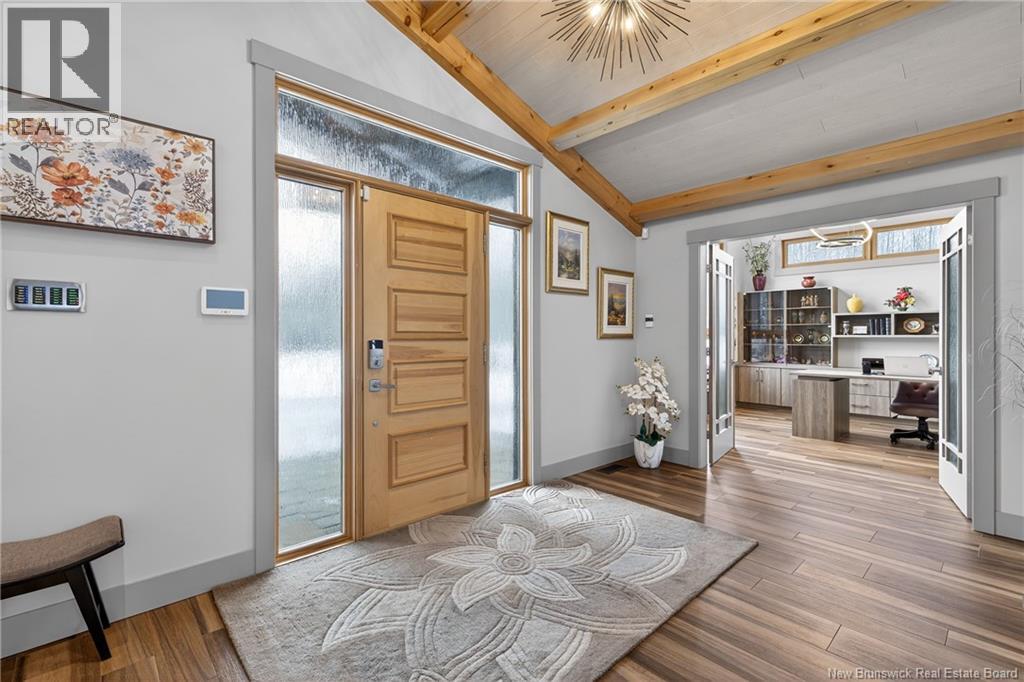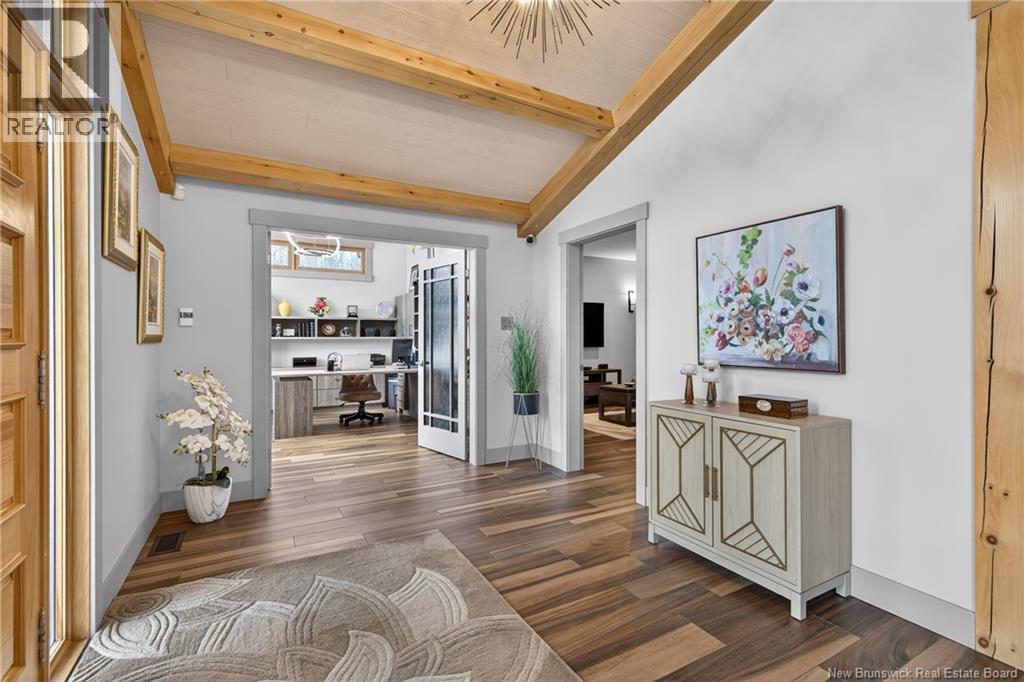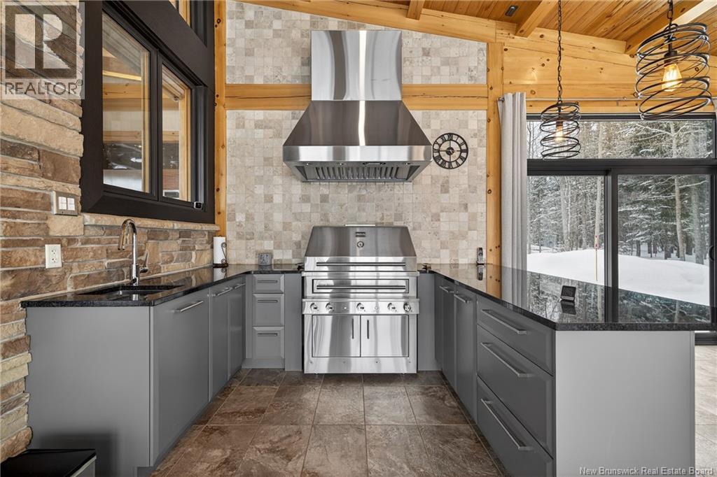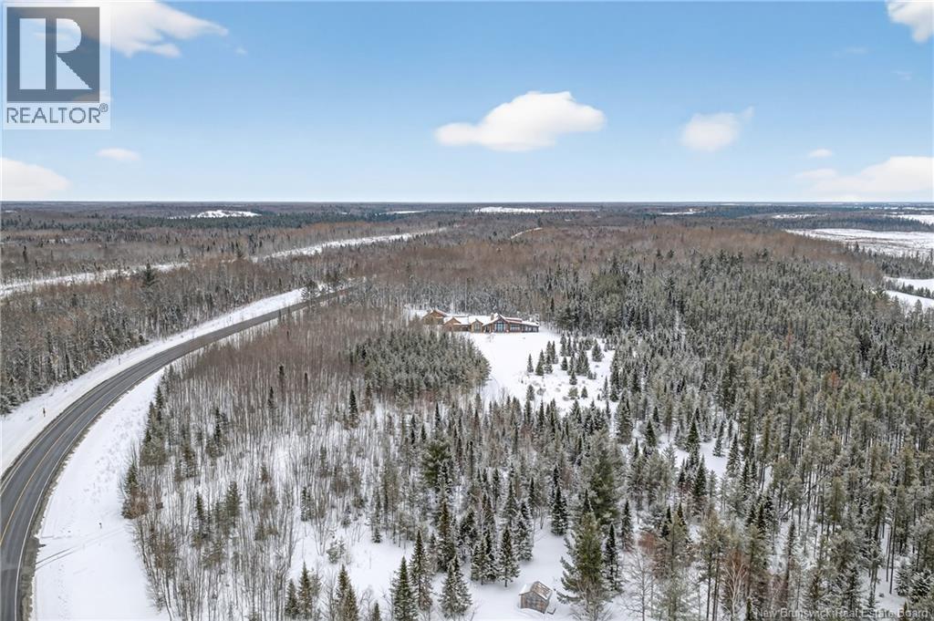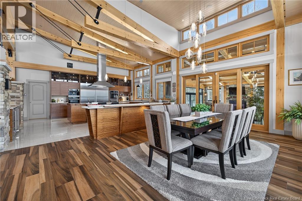 Set on 20 private wooded acres, this exceptional residence offers remarkable privacy and rare tranquility. Timber frame construction with a soaring 23-foot cathedral ceiling and massive exposed beams creates a warm and inviting atmosphere, ideal for entertaining. The open-concept layout seamlessly connects the kitchen, dining, and living areas around a striking stone accent wall and central fireplace, while three fireplaces in total provide added comfort and a cozy ambiance throughout the winter months. The gourmet kitchen features custom solid Mozambique wood cabinetry, three generous islands, quartz countertops, an integrated butcher block, and premium Miele and Marvel appliances. Two full bedroom suites each include a private bathroom with a freestanding soaking tub and glass-enclosed shower. A spacious office supports working from home, and a dedicated home theatre room offers the perfect retreat for relaxation. The four-season veranda extends the living space year-round, ideal for gathering around the built-in barbecue and enjoying memorable moments. Radiant heated floors throughout the residence, Control4 smart home system, motorized blinds, security cameras, fibre optic internet, 22 kW automatic propane generator, and 400 AMP electrical service complete this rare estate where comfort, technology, and quality of life come together. (id:35613)