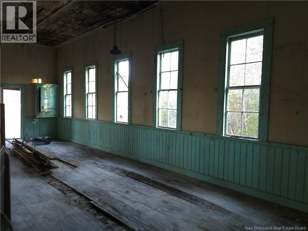 Own a piece of history with endless possibilities in the quaint little town of Harvey, New Brunswick. The solid structure was once the community's one-room school-house. In the stillness of its almost one-acre lot, you can almost hear the children still playing in the once play area to the right of the building. Enter through the front doors (one for girls; one for boys) into the 2 separate entryways, then on into the large open area with tall ceilings. With the original wainscotting, moldings, blackboards and windows still all in place, there's so much potential for a renovation true to its original character. A distillery? A new home? A home business with your apartment or loft in the attic? Many the visionary will see the potential in this building. (id:35613)