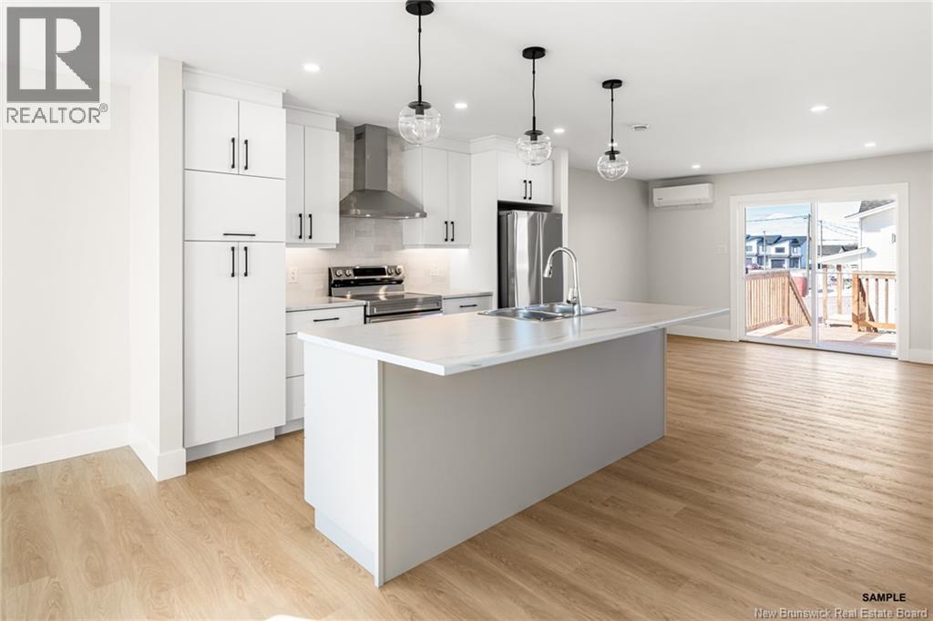 MODERN MIDDLE UNIT TOWNHOUSE WITH PAVE AND LANDSCAPING INCLUDED IN DIEPPE! This TURN KEY home is within walking distance to Ecole Le Marais et Antoinine Maillet, easy access to major highways, airport, daycares, walking trails and many other amenities. The main level offers an OPEN CONCEPT DESIGN with front dining room that flows into the CENTER KITCHEN WITH LARGE ISLAND and lots of cabinetry which overlooks the large living area. Patio doors lead you to the back deck where you can enjoy the backyard. Half bath completes this level. Down the hardwood staircase, you will find the front primary bedroom, full bathroom with double vanity, laundry closet, two additional bedrooms and storage room. These HIGH EFFICIENCY QUALITY built homes offers lots of extras including extra insulation in attic (R80), above grade windows (R24) and spray foam windows below grade, windows are triple paned for high efficiency, PAVED DRIVEWAY, FULLY LANDSCAPED, 8 YEAR LUX HOME WARRANTY AND MINI SPLIT HEAT PUMP for your comfort. HST rebate to be assigned to the vendor. SAMPLE PHOTOS ONLY. Ready for OCCUPANCY END OF FEBRUARY 2026. Call for more details! (id:35613)