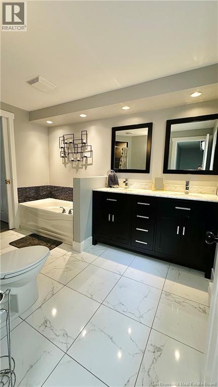 Welcome to 26 Kirton Court! Situated on a spacious, treed lot in Riverviews sought-after McAllister Park, this beautifully updated 2-storey home features 4 bedrooms, 3 full bathrooms, and a convenient in-law suite on the main level with separate entrance and private laundryideal for extended family or rental income. Located on a quiet court, enjoy fresh paint, all-new flooring and trimwork, upgraded interior and exterior lighting, plus a brand-new deck (2024) overlooking the private backyard. The 3-car-wide paved driveway offers ample parking. Inside, the bright living room opens to an updated kitchen with granite island, stylish backsplash, and a large picture window with serene backyard views. A full bath and laundry complete the main level. The mostly finished lower level provides additional living space with a large family room, a 4-piece bathroom, laundry area, and an extra bedroom. Upstairs, find 3 spacious bedrooms including a primary suite with cheater access to a spa-like 5-piece bath featuring double sinks, soaker tub, and walk-in tile shower. Comfort is ensured year-round with two energy-efficient mini-split heat pumps, a 200-amp breaker panel with generator hookup, and vinyl windows throughout. Walking distance to schools, parks, and amenities, this move-in-ready home combines space, style, and versatility in a prime Riverview location. (id:35613)