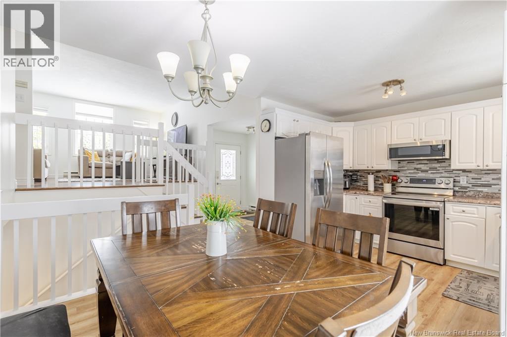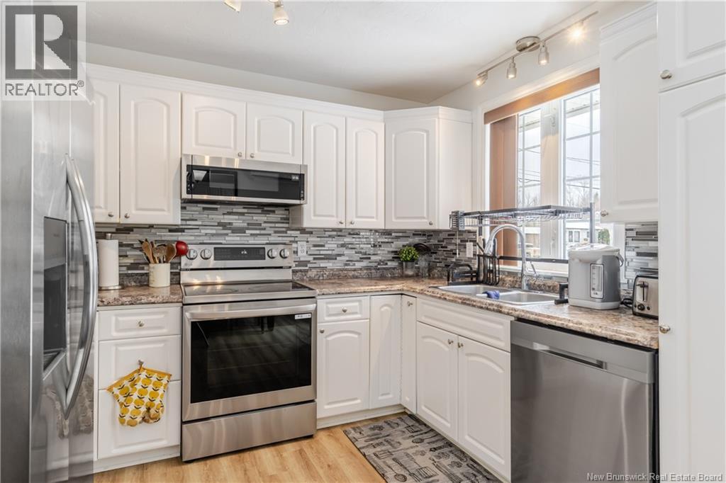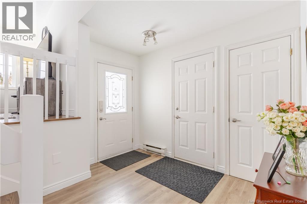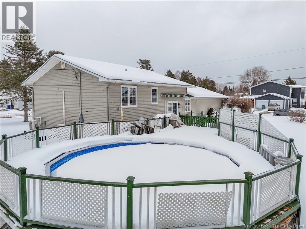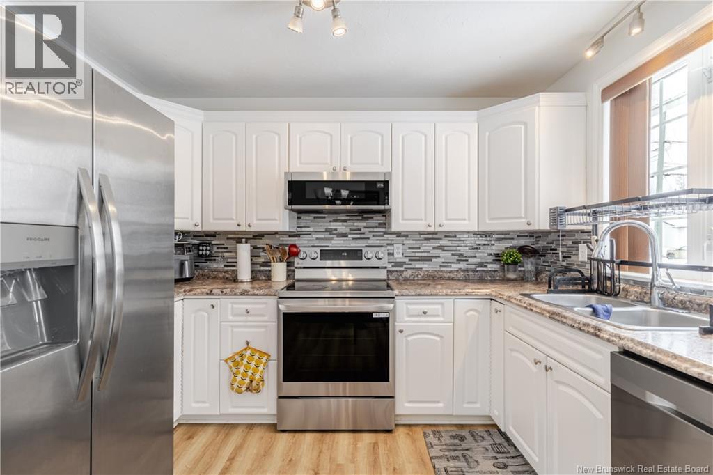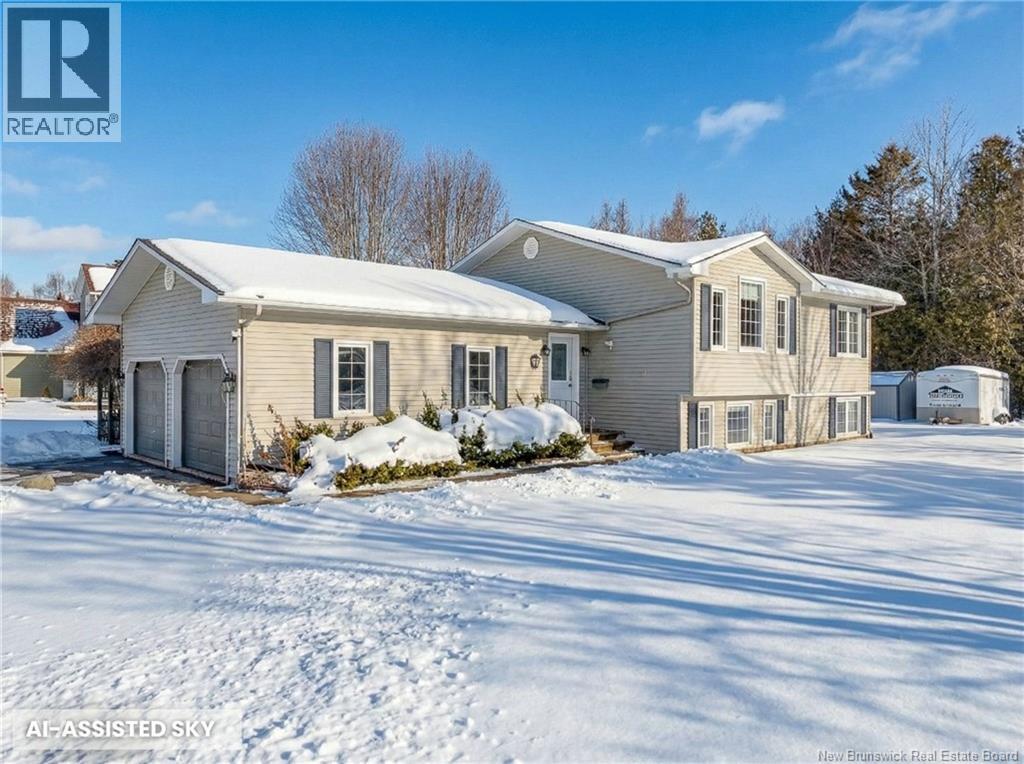 Well-maintained three-level home situated on a spacious corner lot in a sought-after, family-friendly neighbourhood. Conveniently located just 5 minutes to Costco, shopping, and amenities, and only 20 minutes to CFB Gagetown. The exterior offers exceptional outdoor living with a three-tier deck featuring a motorized awning, above-ground pool (heating added in 2024; new pump and filter in 2025), two storage sheds, paved driveway, and a double attached garage with additional storage. Roof shingles were replaced in 2024, and three new heat pumps were installed in 2024 for year-round comfort. Inside, the main level features a bright kitchen with propane stove hookup, dining area, and spacious entryway. The upper level includes a welcoming living room, with two bedrooms and a full bath. The lower level offers a generous family room, two additional bedrooms, and a second full bathroom. Enjoy direct access to ATV and walking trails right from your property line. (id:35613)