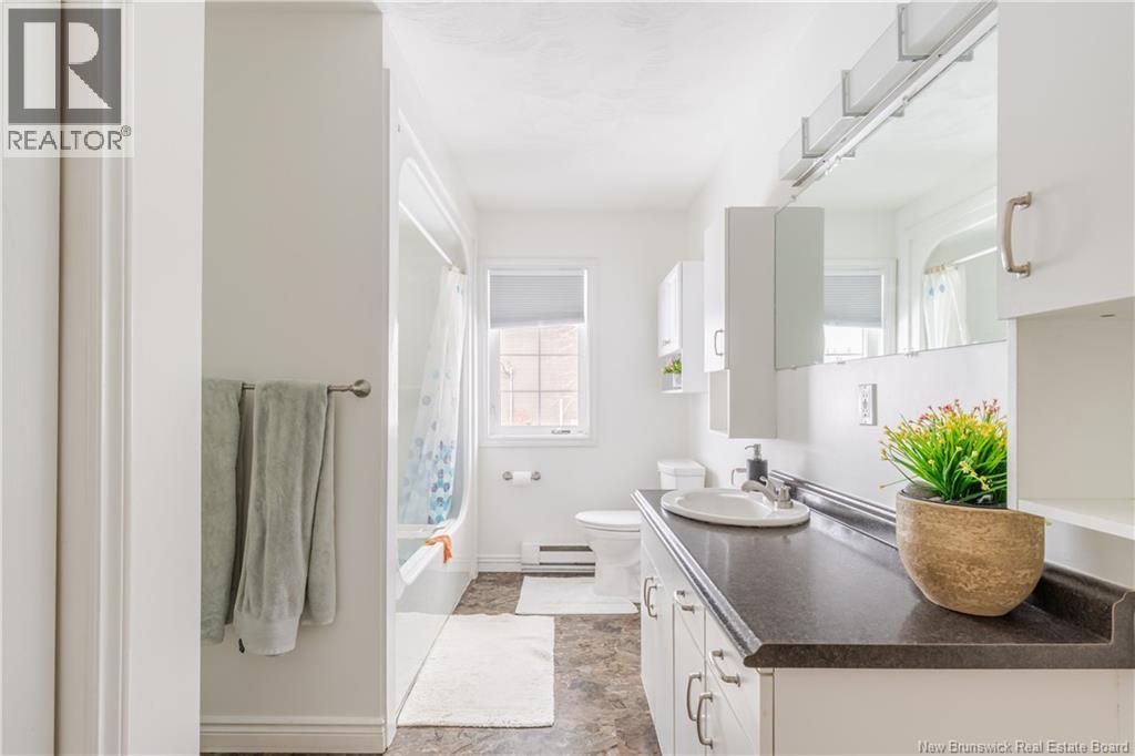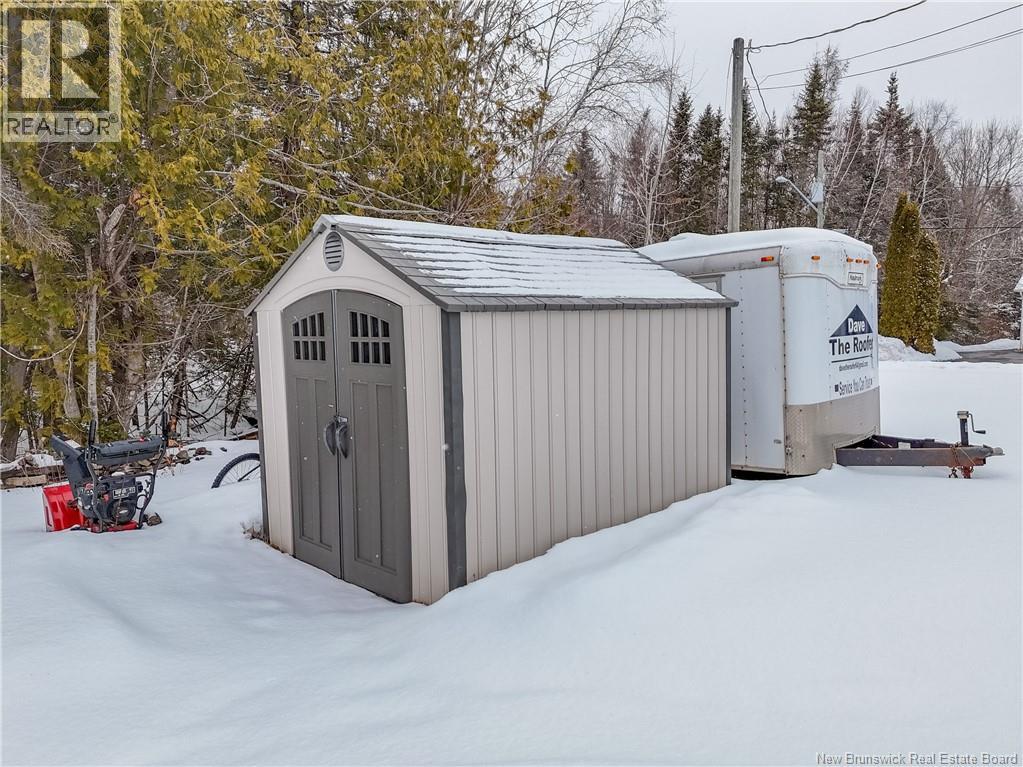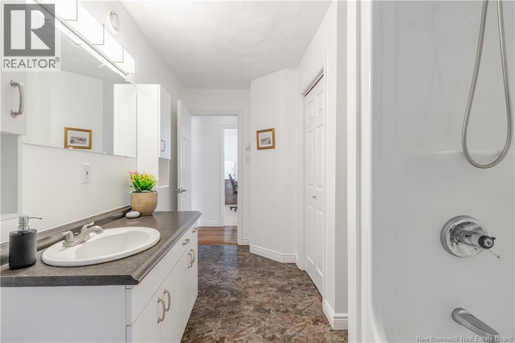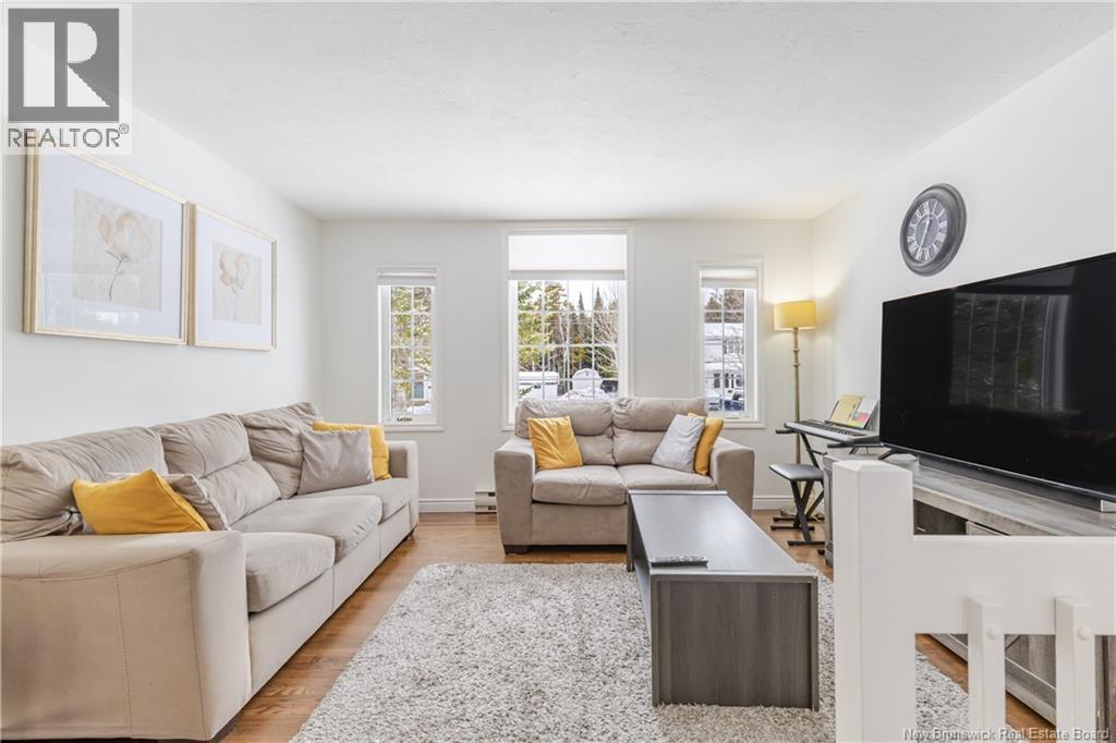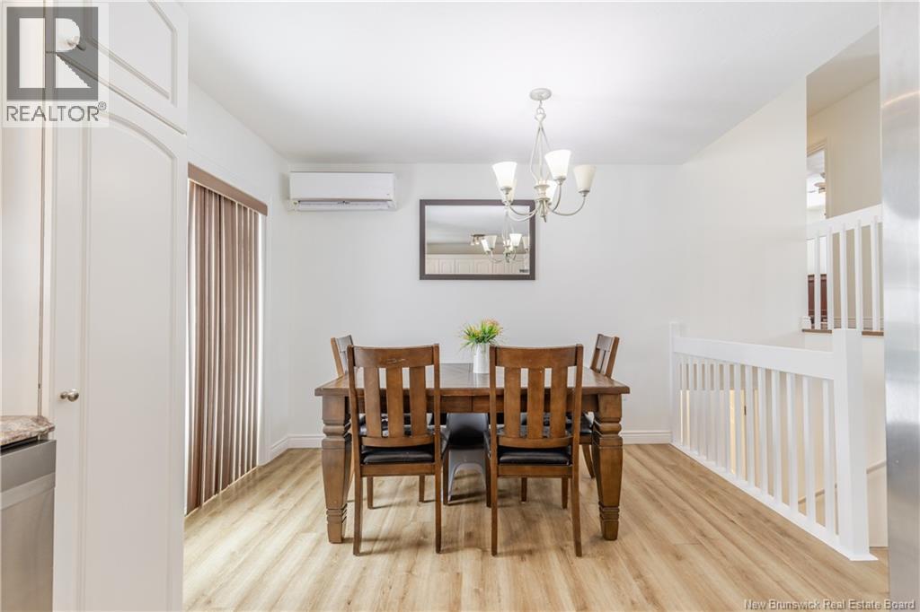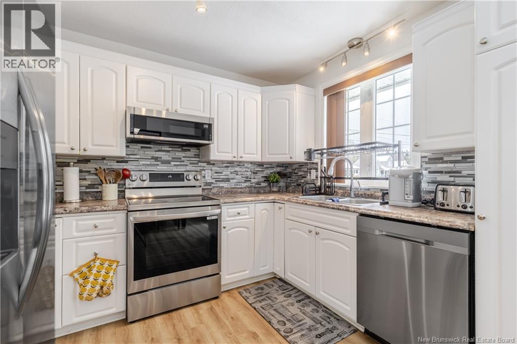 Well-maintained three-level home situated on a spacious corner lot in a sought-after, family-friendly neighbourhood. Conveniently located just 5 minutes to Costco, shopping, and amenities, and only 20 minutes to CFB Gagetown. The exterior offers exceptional outdoor living with a three-tier deck featuring a motorized awning, above-ground pool (heating added in 2024; new pump and filter in 2025), two storage sheds, paved driveway, and a double attached garage with additional storage. Roof shingles were replaced in 2024, and three new heat pumps were installed in 2024 for year-round comfort. Inside, the main level features a bright kitchen with propane stove hookup, dining area, and spacious entryway. The upper level includes a welcoming living room, with two bedrooms and a full bath. The lower level offers a generous family room, two additional bedrooms, and a second full bathroom. Enjoy direct access to ATV and walking trails right from your property line. (id:35613)