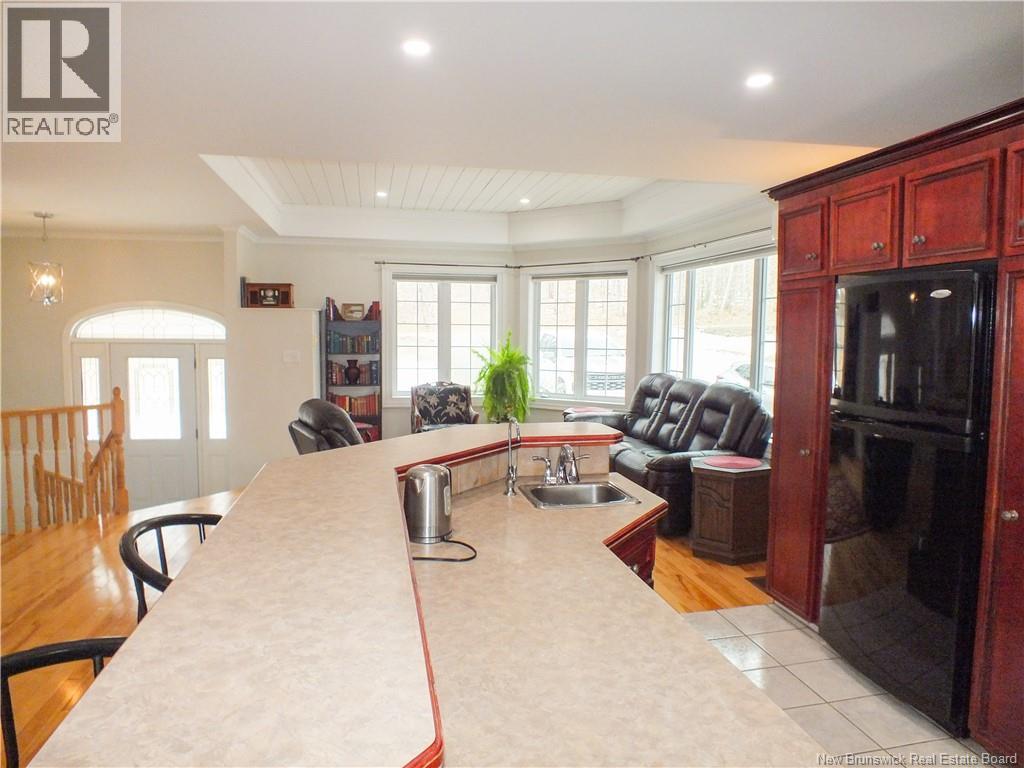 Welcome to this beautifully maintained 4+1 bedroom, 3 bathroom home on a private, treed 1-acre lot, just 5 minutes from the village of Florenceville and close to schools, shops, a gym, library, Northern Carleton Recreation Centre, and McCain headquarters. With over 2,200 square feet of finished living space, this home blends comfort and elegance. Oak hardwood floors grace the living and dining rooms, a bright sunroom and balcony deck bring in abundant natural light, and the primary suite offers French doors and a spa-like ensuite with a large corner tub. Enjoy a serene backyard oasis surrounded by mature trees, perfect for entertaining or relaxing by the above-ground pool with its custom wood surround. Recent upgrades include a second mini-split (2024), new luxury vinyl plank flooring in the upstairs bedrooms (2026), a beautifully updated primary ensuite with new vanity and cabinetry (2025), a finished basement with dedicated gym space (2025), and modern water systems including a UV light system (2023) and reverse osmosis filtration (2024). (id:35613)