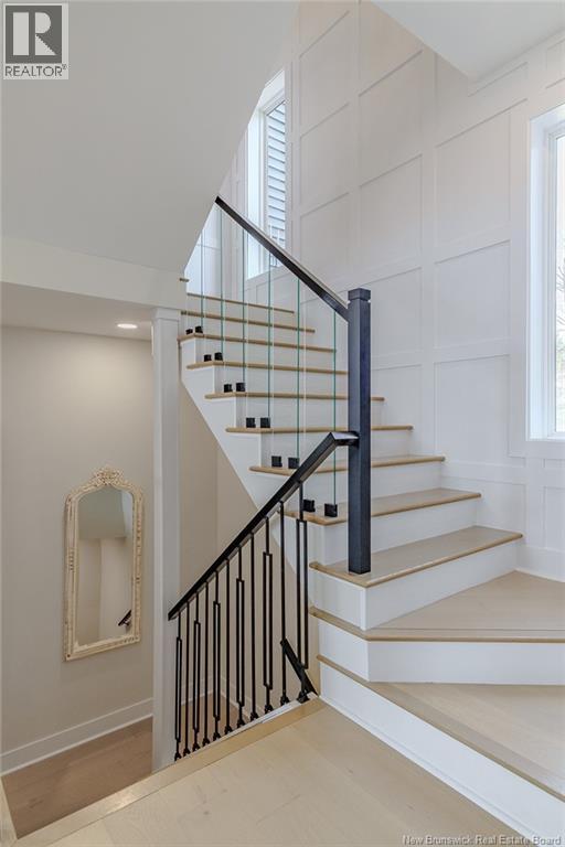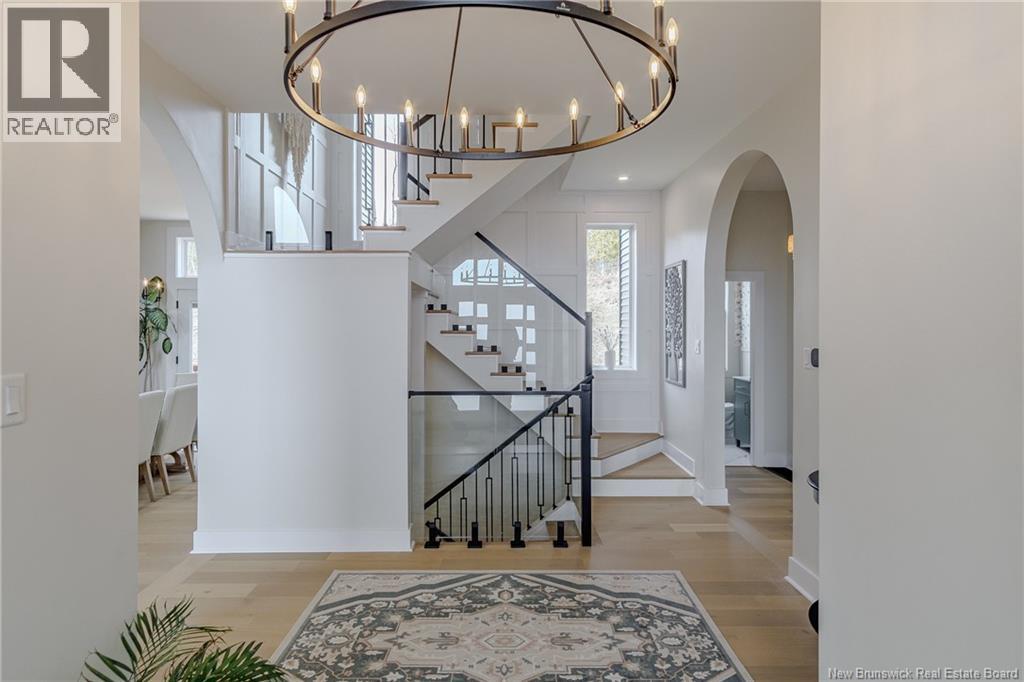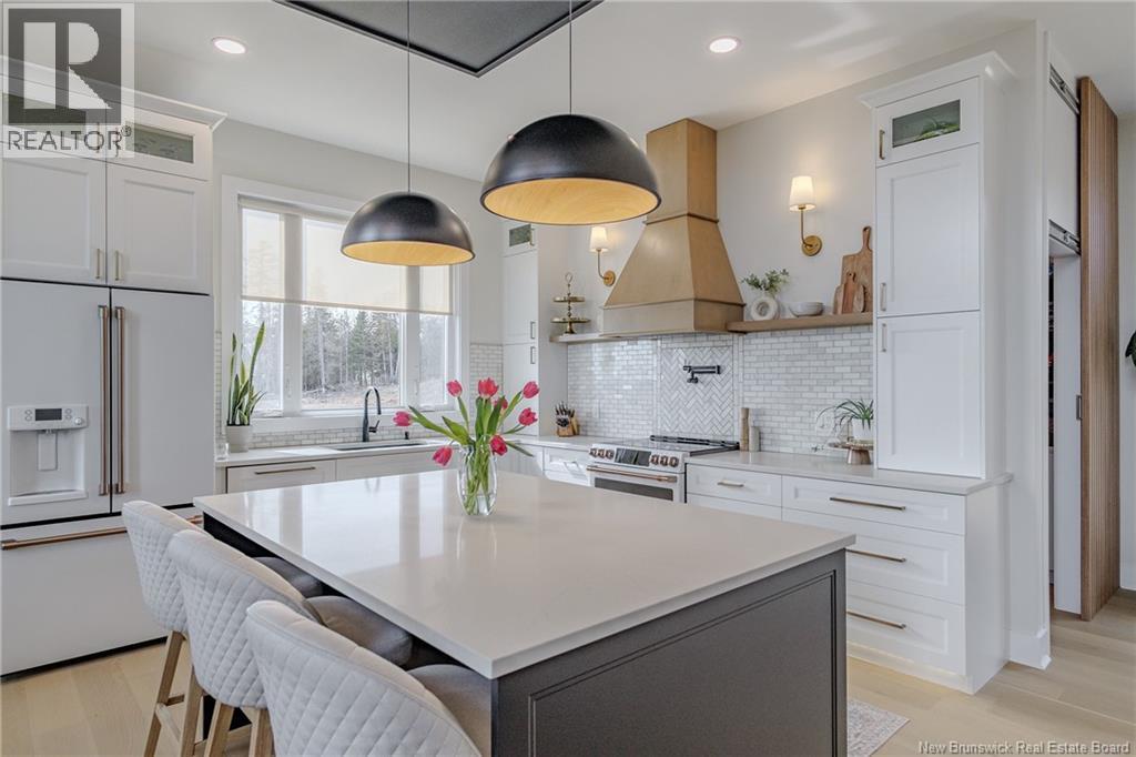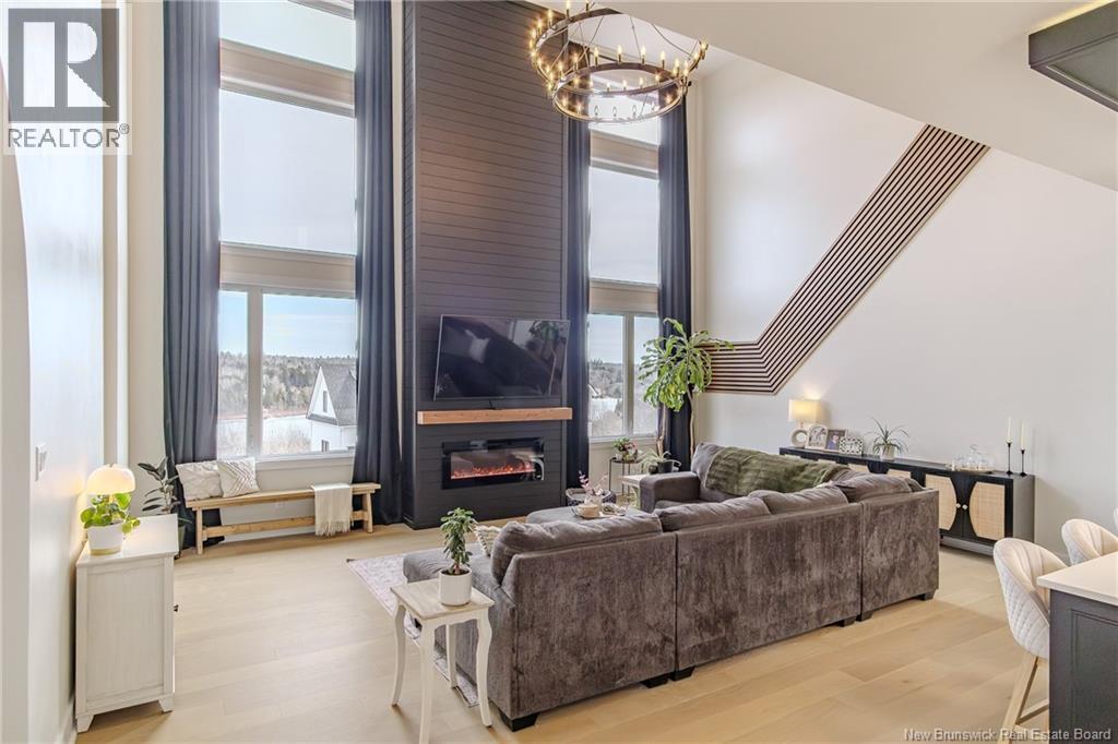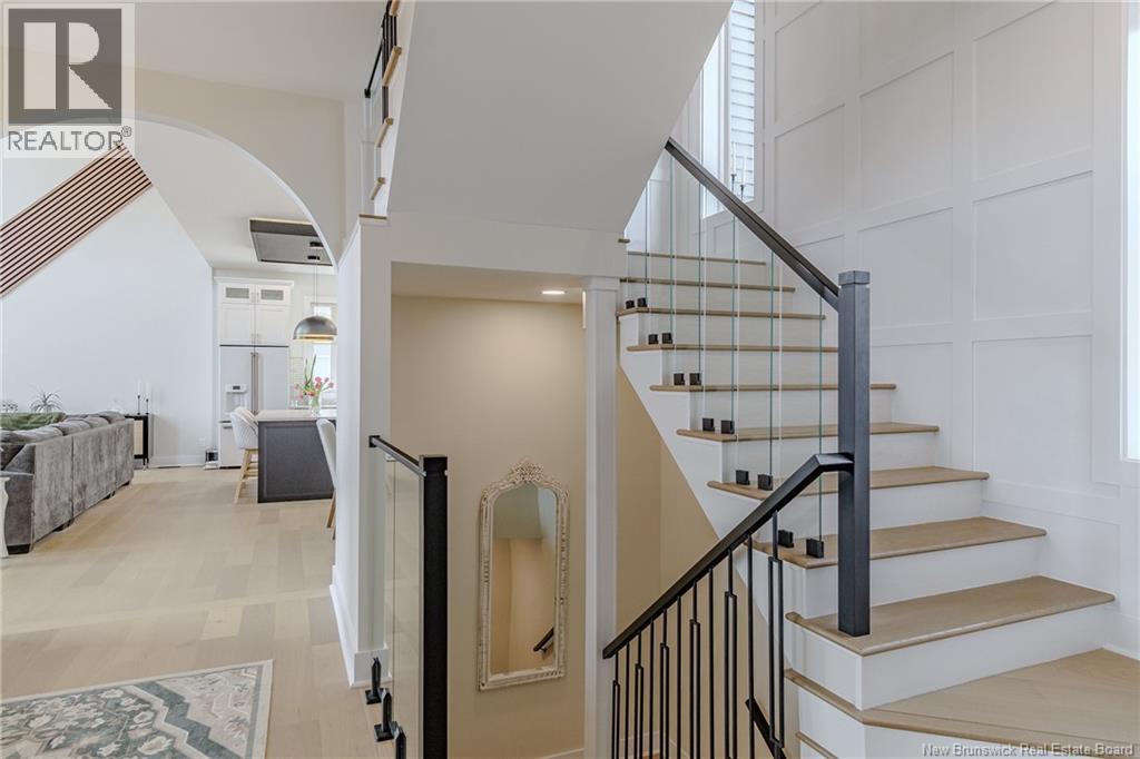 Designed for the modern professional, this exceptional 4078 sq ft residence pairs elevated design with effortless everyday living in one of Quispamsis most sought after locations. Soaring ceilings and a statement fireplace anchor the great room, while expansive windows flood the space with natural light and tranquil lake views, creating an inspiring setting for both entertaining and unwinding. The kitchen reflects todays expectations for style and performance, showcasing smart appliances, custom cabinetry, a generous island and a discreet walk-in pantry that blends function with sophistication. The dining area comfortably hosts intimate dinners or larger gatherings within a seamless, open concept layout. Your main floor primary suite offers a private retreat with its own fireplace, a spacious walk through closet and a spa-like ensuite designed for comfort and calm. The architectural glass staircase, enhanced with beautiful custom panelling, leads to an upper level with 3 well proportioned bedrooms, an efficiently designed laundry room and a bright gallery space ideal for work or relaxation. The finished walk out level adds versatility with space for a media room and newly added home office, complete with kitchenette and full bath. An oversized garage and low maintenance lot enhance everyday convenience, while your location places you steps from Ritchie Lake trails, top rated schools and nearby amenities, delivering a refined lifestyle with true walkable appeal. (id:35613)