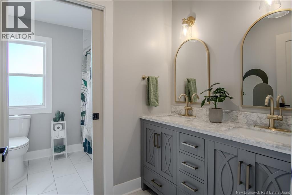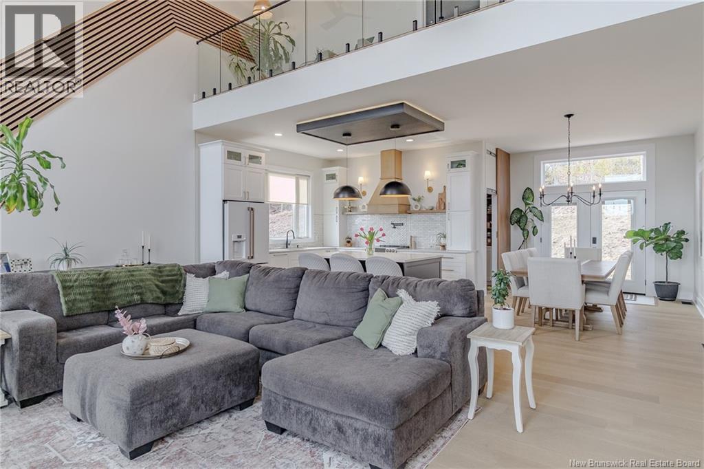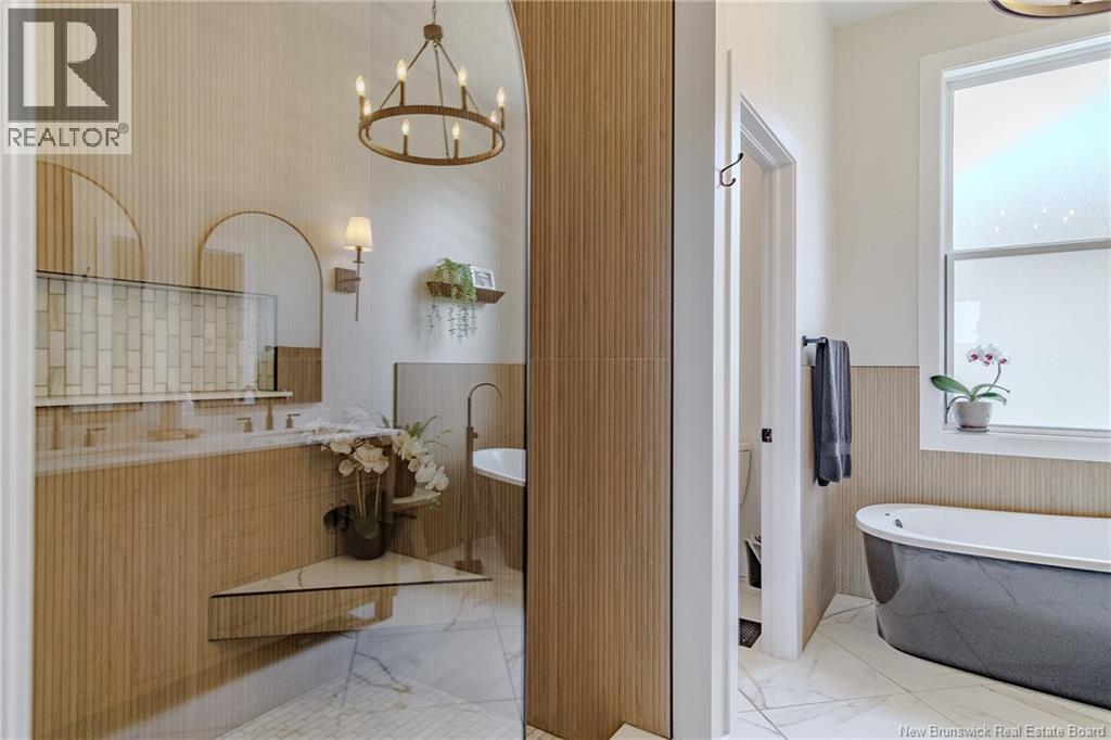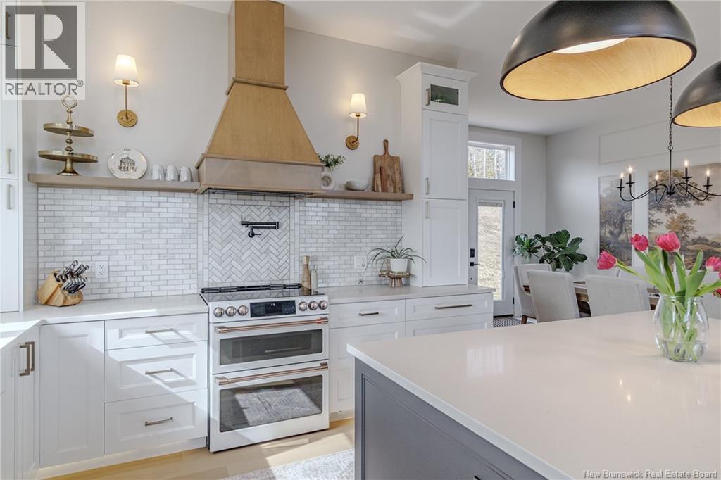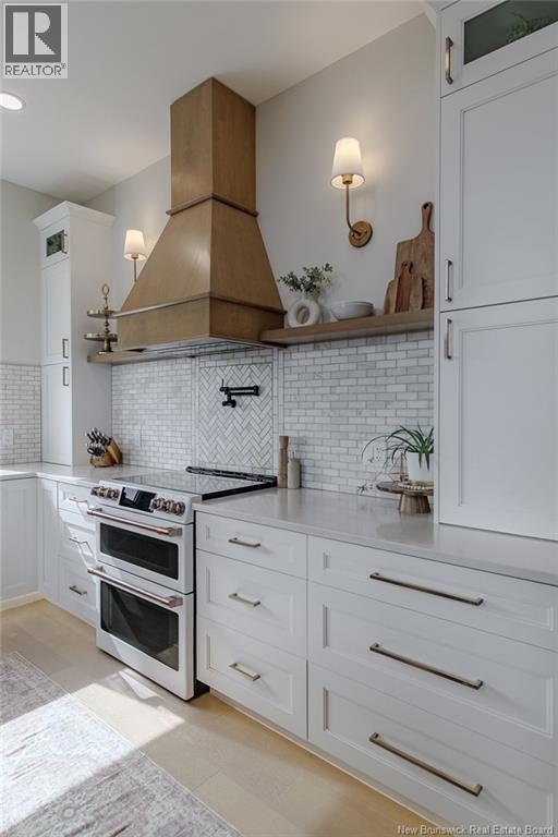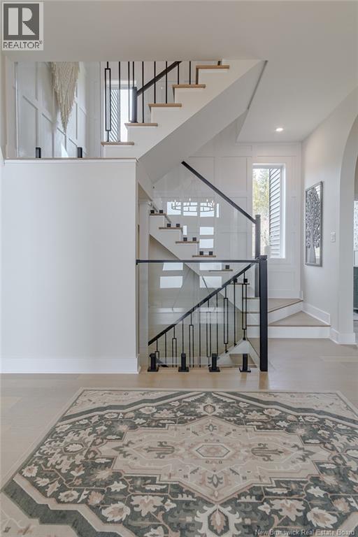 Designed for the modern professional, this exceptional 4078 sq ft residence pairs elevated design with effortless everyday living in one of Quispamsis most sought after locations. Soaring ceilings and a statement fireplace anchor the great room, while expansive windows flood the space with natural light and tranquil lake views, creating an inspiring setting for both entertaining and unwinding. The kitchen reflects todays expectations for style and performance, showcasing smart appliances, custom cabinetry, a generous island and a discreet walk-in pantry that blends function with sophistication. The dining area comfortably hosts intimate dinners or larger gatherings within a seamless, open concept layout. Your main floor primary suite offers a private retreat with its own fireplace, a spacious walk through closet and a spa-like ensuite designed for comfort and calm. The architectural glass staircase, enhanced with beautiful custom panelling, leads to an upper level with 3 well proportioned bedrooms, an efficiently designed laundry room and a bright gallery space ideal for work or relaxation. The finished walk out level adds versatility with space for a media room and newly added home office, complete with kitchenette and full bath. An oversized garage and low maintenance lot enhance everyday convenience, while your location places you steps from Ritchie Lake trails, top rated schools and nearby amenities, delivering a refined lifestyle with true walkable appeal. (id:35613)