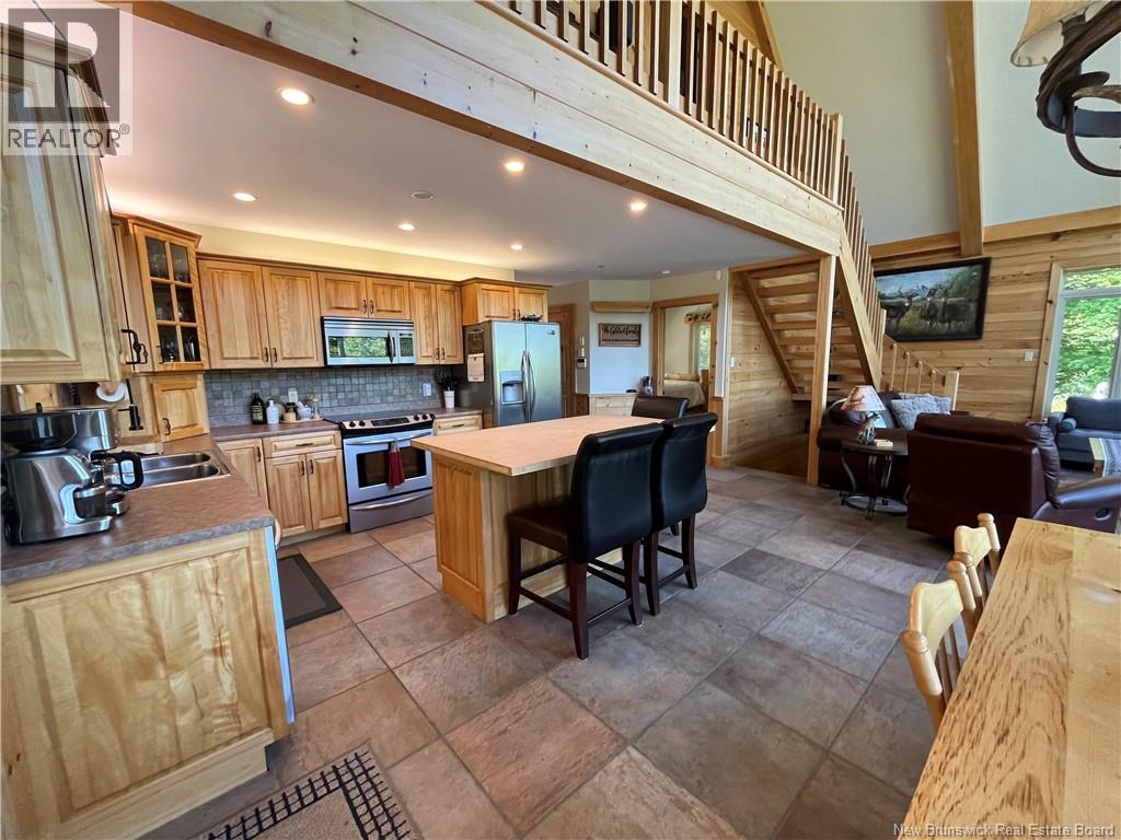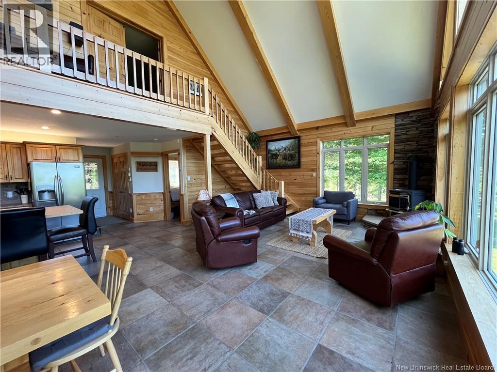 Located on the very popular Richibucto river in the desirable area of BROWNS YARD, you will fall in love with this property as you drive down the picturesque driveway thru your own forest of mature trees. This beautiful WATERFRONT custom built home was done to take full advantage of the magnificent views from almost every room and from the wrapped around porch. The kitchen, dining area and the livingroom offers open concept living which is perfect for entertaining. Enjoy the gorgeous sunsets thru the floor to ceiling windows with vaulted ceilings and a cozy wood stove and IN-FLOOR HEAT for those chilly nights. This floor is complete with a bedroom and 4pcs bathroom/laundry. The second story is the master bedroom and ensuite with a large WALK-IN shower plus a balcony area which is an absolute treat to wake up to in the morning! The basement provides a large familyroom and gameroom with sliding doors to the WALK-OUT patio area, a third full bathroom and a non-conforming bedroom with build-in double bunk beds. This spacious 2.39 ACRES lot is high off the river so no risk of flooding. The gazebo is built at the edge of the lot with added supportive concrete that overlooks the river with a staircase and dock just below. The property also has a guest house with its own half bath for extra family and friends to stay overnight and 2 camper hook-ups. If you are looking for a waterfront paradise that has charm and rustic character but offers all the modern amenities, look no further!! (id:35613)