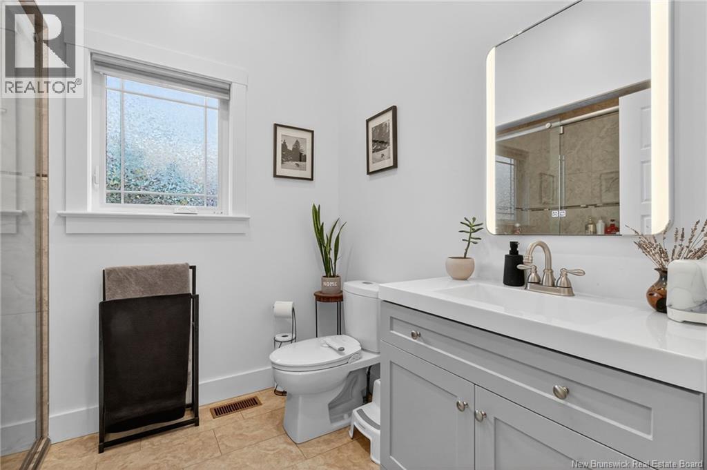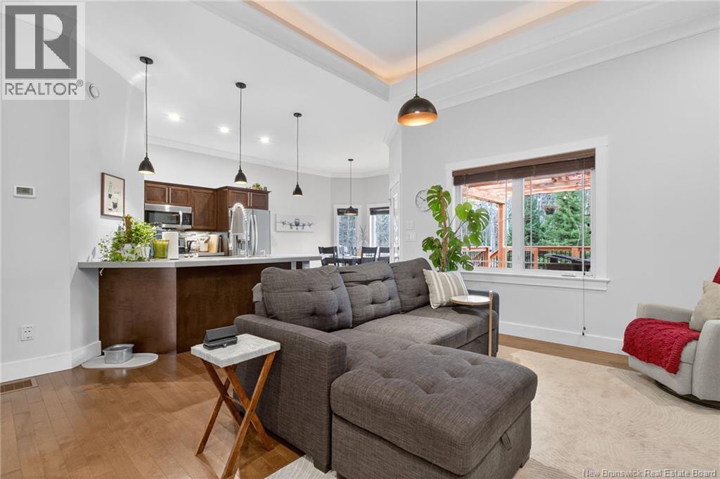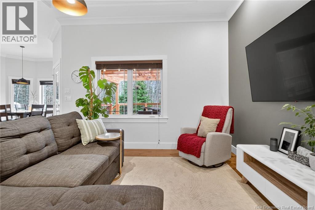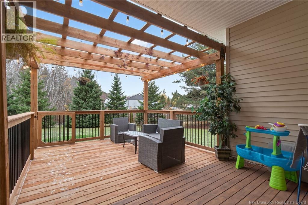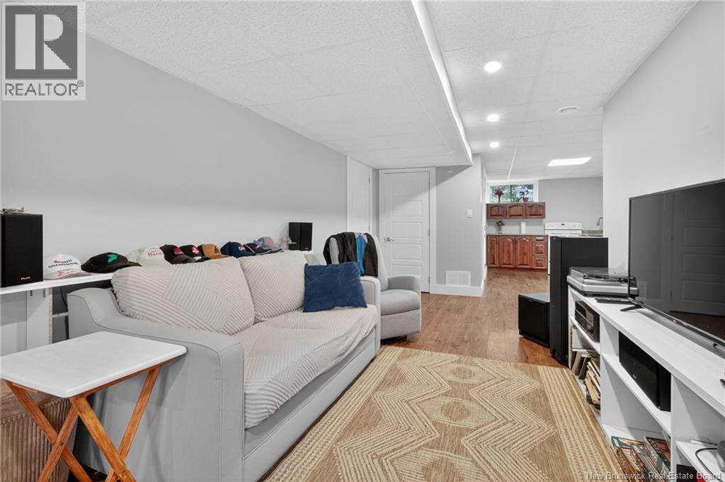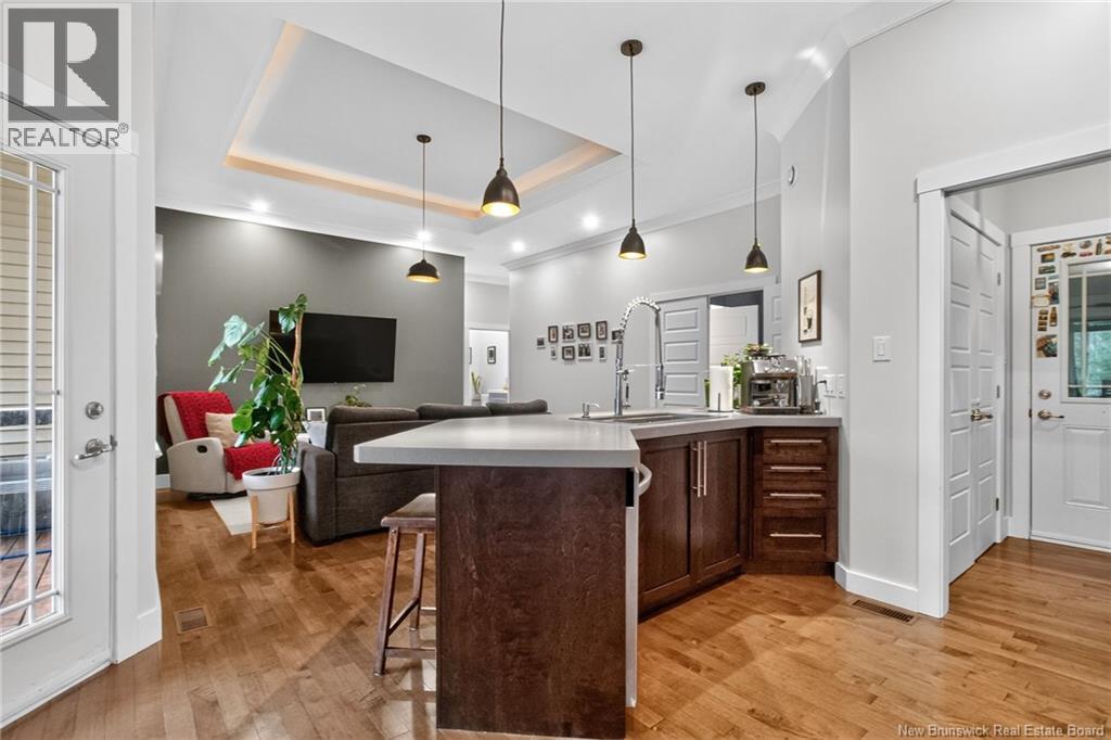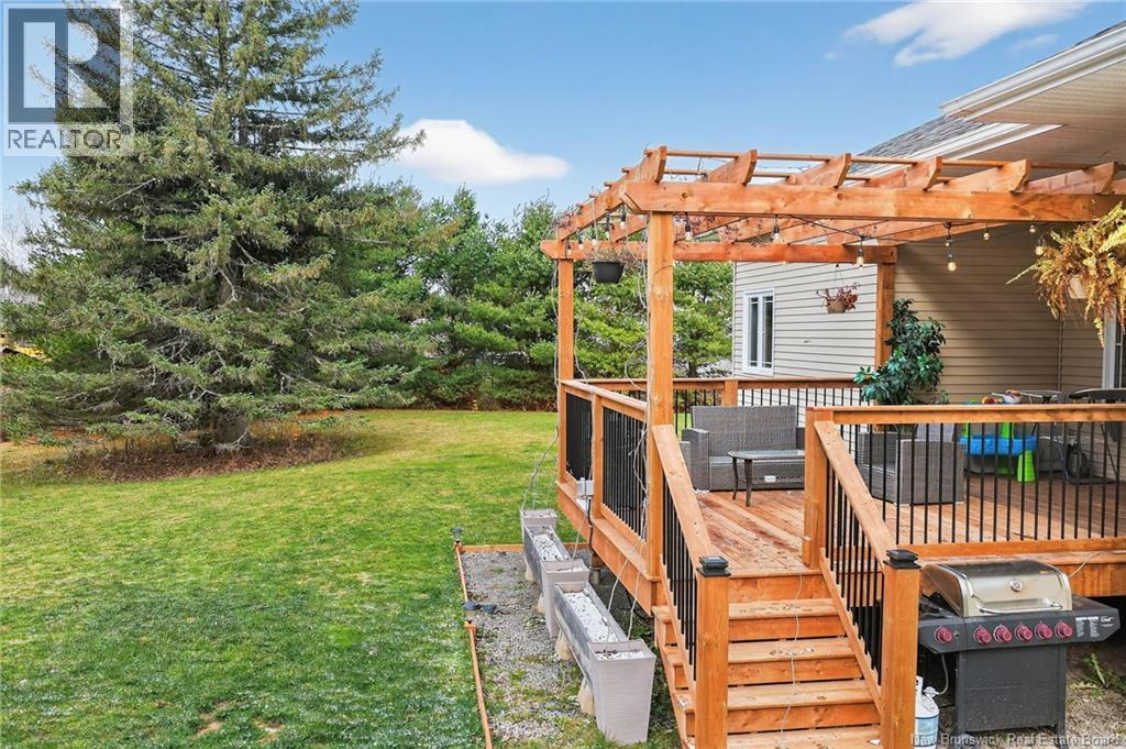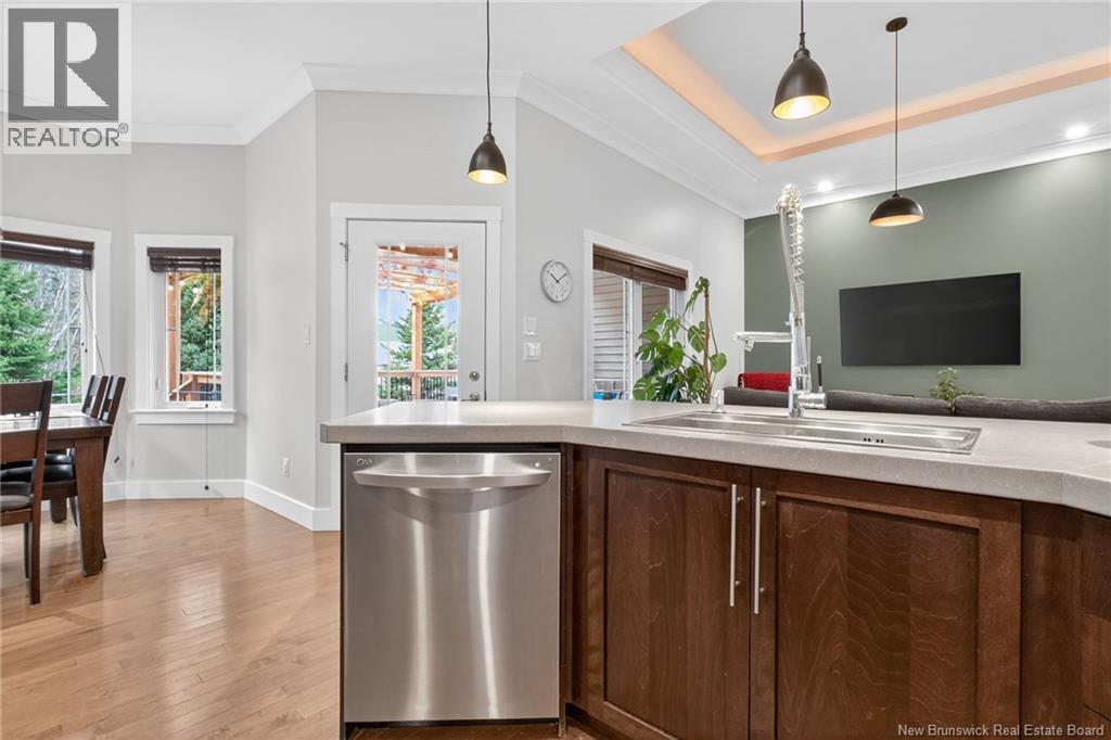 Charming bungalow in quiet Saint-Antoine, just north of Moncton offering the perfect blend of comfort, light, and convenience. The open-concept kitchen, dining, and living areas are filled with natural light, enhanced by high ceilings and large windows that overlook the peaceful, wooded backyard. Step out to the new deck, where an outdoor hookup for a hot tub remains in place from previous owners ready for relaxing evenings or entertaining. The stylish kitchen features stainless steel appliances, plenty of storage, and direct access to the attached garage with space for laundry and pantry needs. The primary suite is a true retreat with oversized windows, a luxurious ensuite featuring a soaker tub, and a walk-in closet. The main bathroom offers a walk-in tiled shower, while the good-sized third bedroom provides flexible space for guests, children, or an office. Designed for accessibility, this home includes wide doors, hallways, and a ducted heat pump system for year-round comfort. The lower level adds versatility with a one-bedroom apartment complete with its own kitchen, laundry, and bonus room ideal for extended family or rental income. Sitting on nearly three-quarters of an acre with municipal water and sewer, and just a one-minute drive from the new Villa Des Dunes long-term care facility that is being build, this bright and beautifully designed bungalow is a rare find in Saint-Antoine. (id:35613)