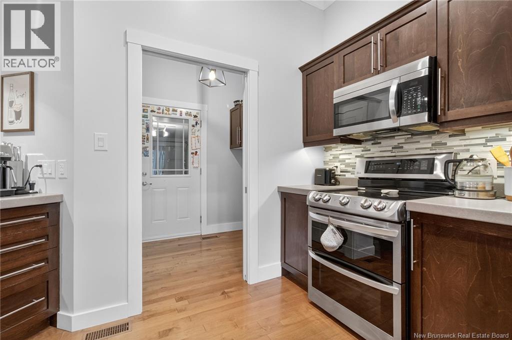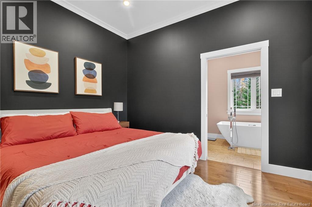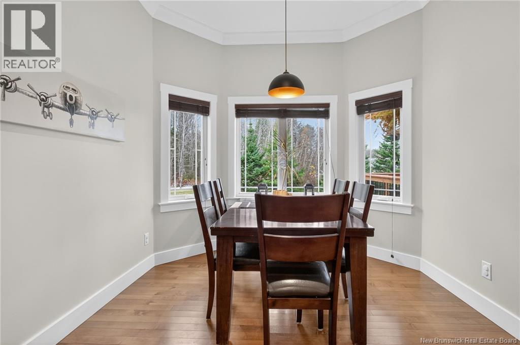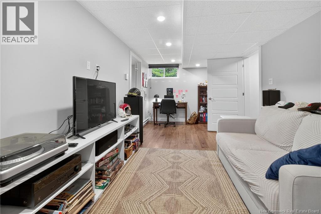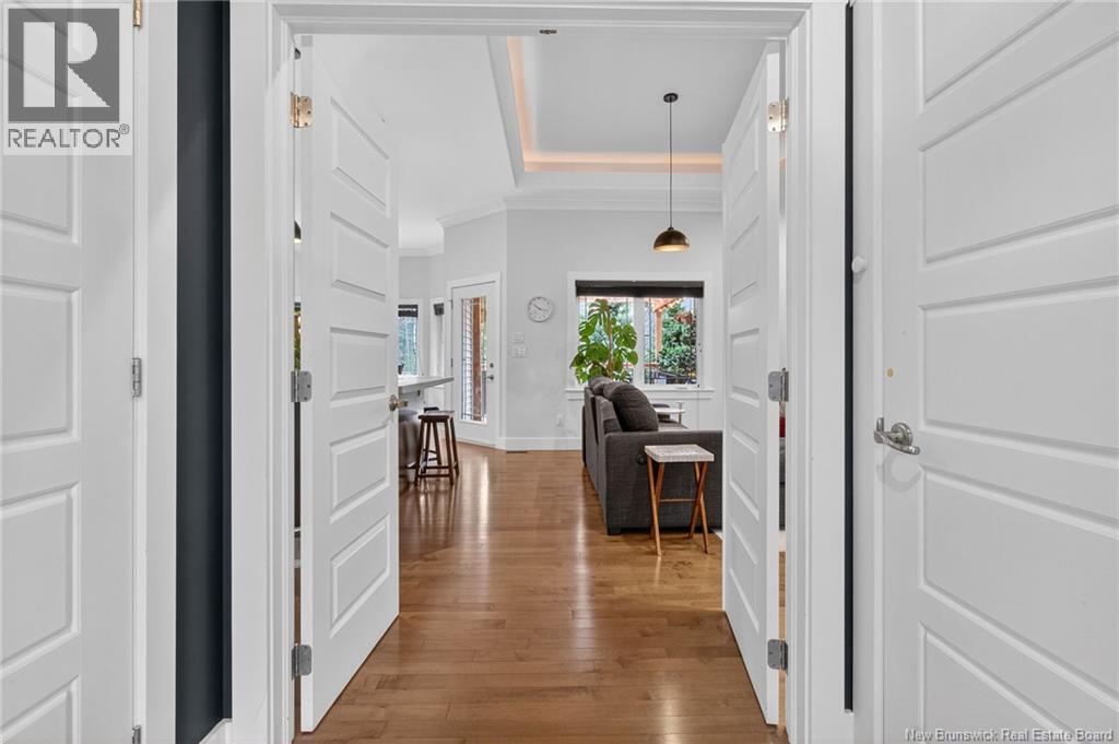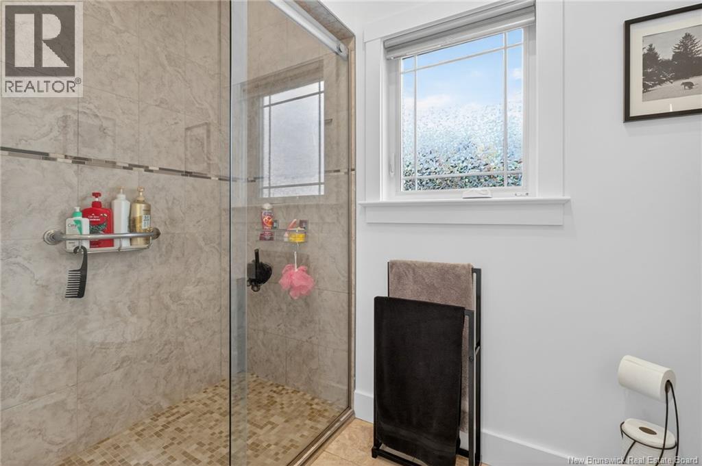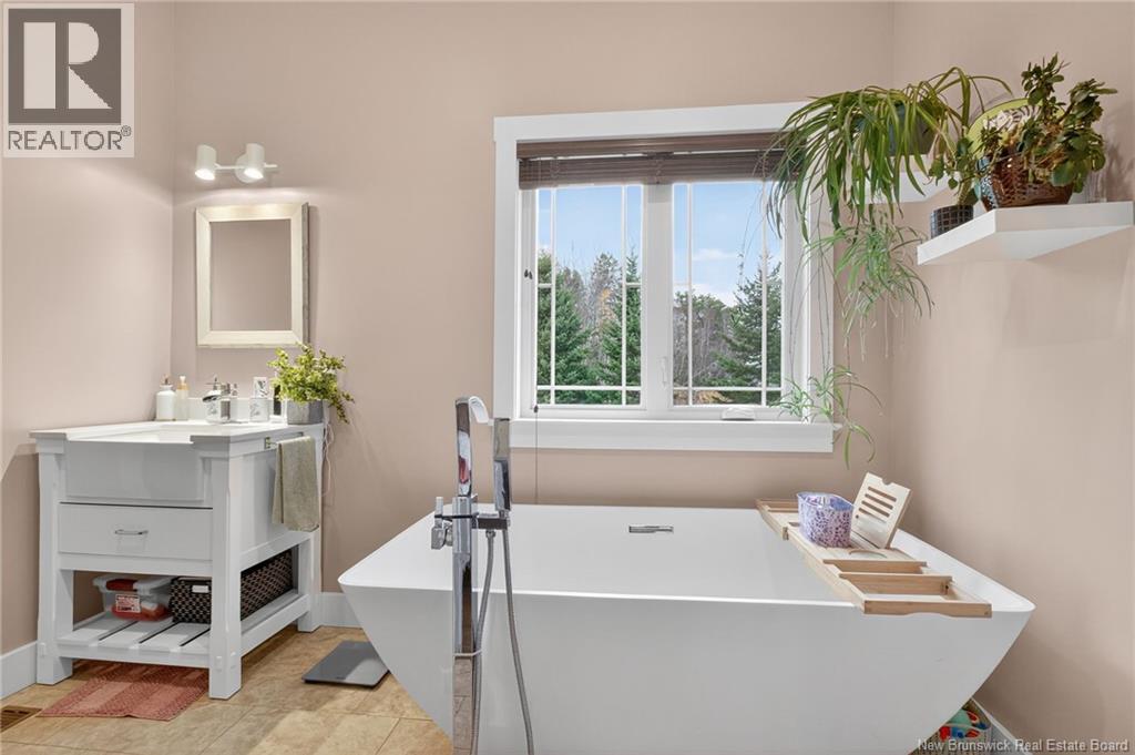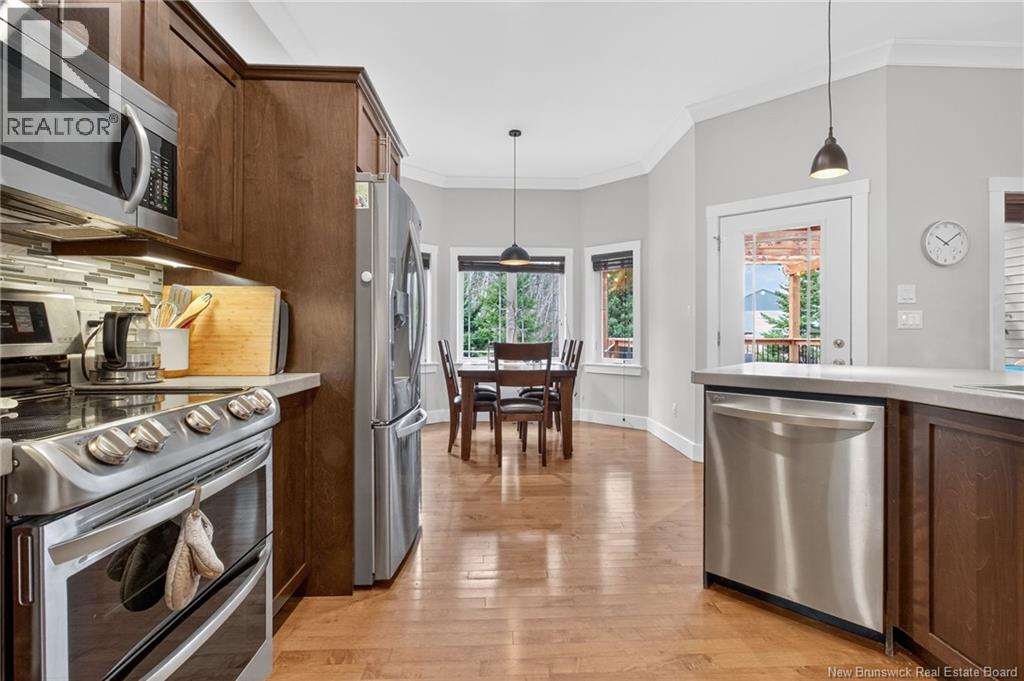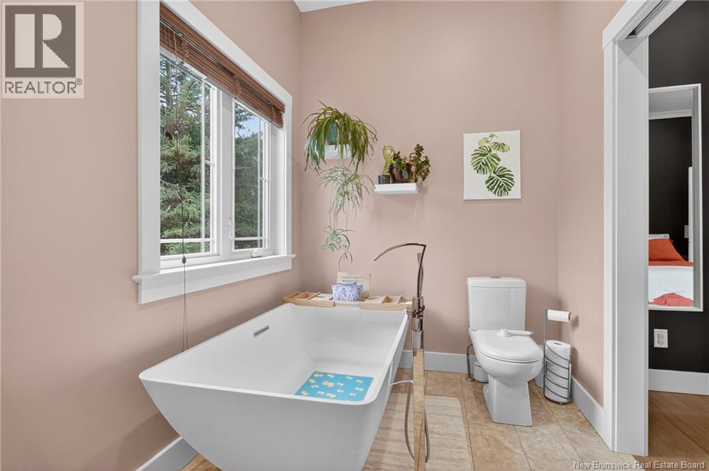 Charming bungalow in quiet Saint-Antoine, just north of Moncton offering the perfect blend of comfort, light, and convenience. The open-concept kitchen, dining, and living areas are filled with natural light, enhanced by high ceilings and large windows that overlook the peaceful, wooded backyard. Step out to the new deck, where an outdoor hookup for a hot tub remains in place from previous owners ready for relaxing evenings or entertaining. The stylish kitchen features stainless steel appliances, plenty of storage, and direct access to the attached garage with space for laundry and pantry needs. The primary suite is a true retreat with oversized windows, a luxurious ensuite featuring a soaker tub, and a walk-in closet. The main bathroom offers a walk-in tiled shower, while the good-sized third bedroom provides flexible space for guests, children, or an office. Designed for accessibility, this home includes wide doors, hallways, and a ducted heat pump system for year-round comfort. The lower level adds versatility with a one-bedroom apartment complete with its own kitchen, laundry, and bonus room ideal for extended family or rental income. Sitting on nearly three-quarters of an acre with municipal water and sewer, and just a one-minute drive from the new Villa Des Dunes long-term care facility that is being build, this bright and beautifully designed bungalow is a rare find in Saint-Antoine. (id:35613)