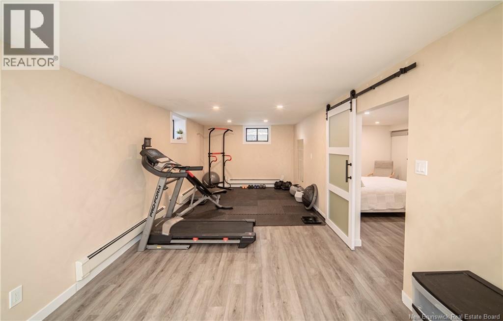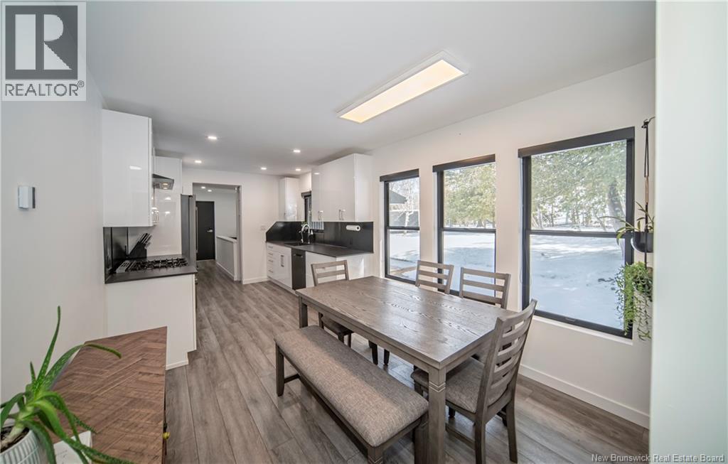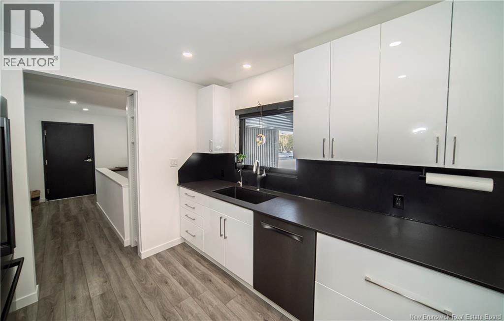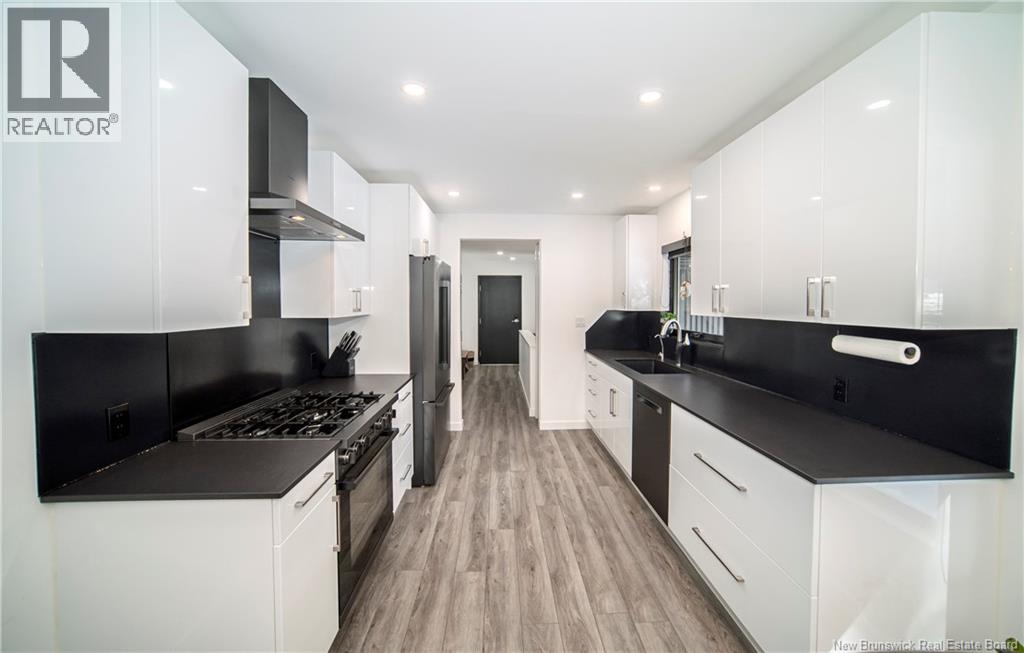 Beautiful bungalow located on the Hill in Fredericton, fantastic location close to downtown, universities, hospital, schools, and everyday amenities. Home offers a stylish modern feel with layout that works. Kitchen/dining area is bright and beautifully finished with sleek glossy white cabinetry, black countertops and matching backsplash, Bosch appliances including a gas range, plenty of prep space, and great storage. Just off this area, the living room is warm and inviting with large windows, and gas fireplace. Three bedrooms. Primary offers ensuite bath. Side entrance offers spacious foyer, access to attached garage, built in storage and main bath. Lower level adds even more room with family room, bonus room, 1/2 bath, laundry area, and excellent storage. Outside, dark exterior gives this home standout curb appeal, while the attached garage and mature setting complete the package. (id:35613)