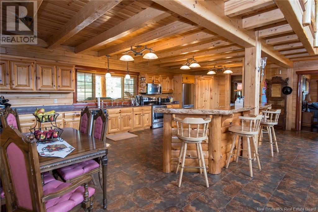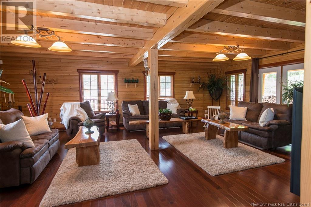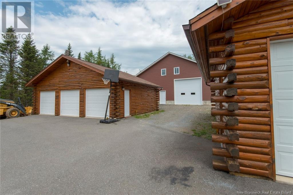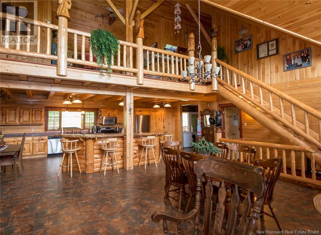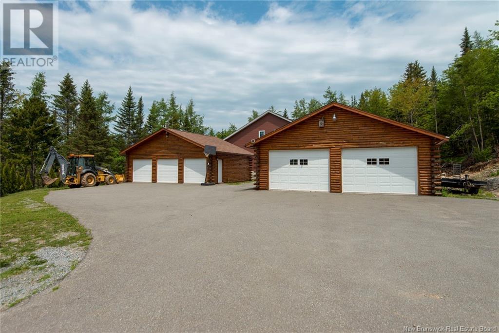 Total privacy on 35+ acres, quality built 3500sq' log home (5500sq' total). 3 Huge heated/AC garages perfect for car collection, boats, tractor, motor home+. Highest quality, 8"" cedar insulated D-shaped logs! No load bearing walls means easy changes. Features include open concept, 4 propane fireplaces, custom light fixtures, huge wrap-around deck, 2-story great room w/ 16' ceiling, full-height stone fireplace, cozy woodstove, concave solid wood trim & hot water in-floor heating throughout. Large custom eat-in kitchen w/thick slab granite countertop, pantry & huge central island/breakfast bar (appliances incl). Many intricate details. Main floor also boasts sunny family room w/3 sides of windows & stone fireplace, bedroom w/double closet, mud room & laundry, full bathroom. Up the turned D-log staircase w/ carved newel posts (from NC) to the sitting area & 3 additional bedrooms incl the spacious master suite w/3 sides of windows, walk-in & ensuite bath. 5500 sq' w/Daylight walkout basement. Rec room & large gym both w/fireplaces, tiled floor, work shop, & 1/2 bath. 2 Heated/AC 3-car garages 30'x30', plus a 40'x50' garage w/18' ceiling, 12' door & asymmetric 2-post vehicle lift & Brigadier 10 ACX wide, 10,000 lb. hydraulic hoist incl. Numerous fruit trees plus 300' spring-fed trout pond. Miles of groomed trails for hiking, biking & 4-wheeling, all the way to Fundy Nat'l Park. Generator hookup & diesel generator plus numerous inclusions. 6 Minutes from the SJ airport, YSJ (id:35613)