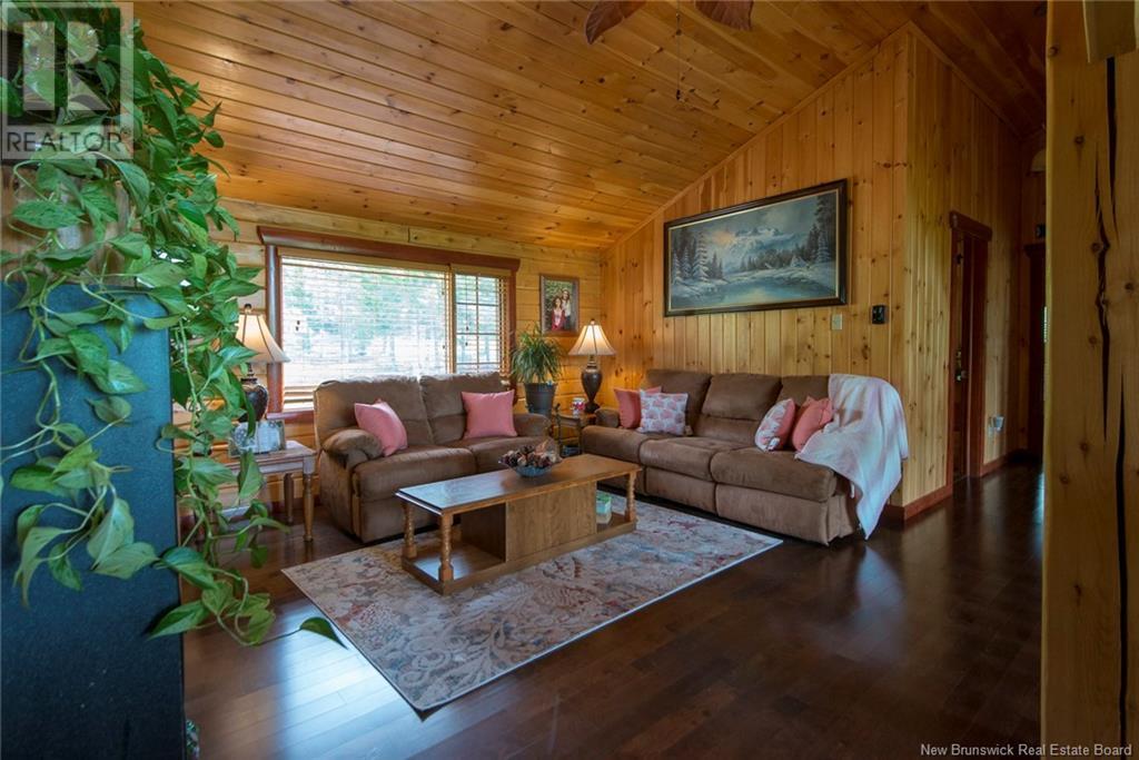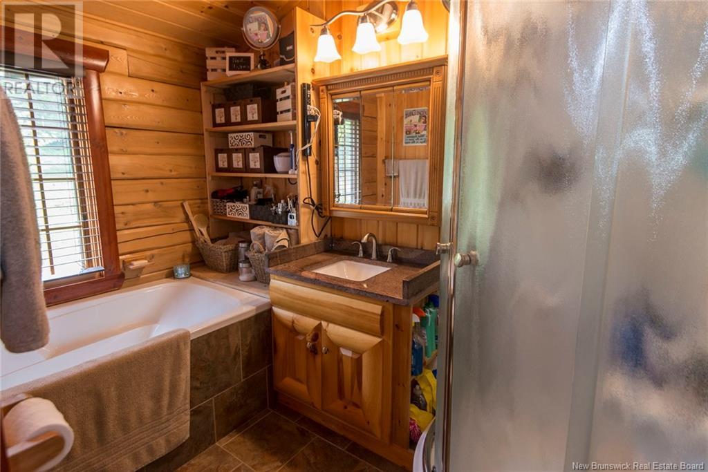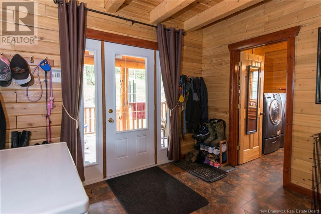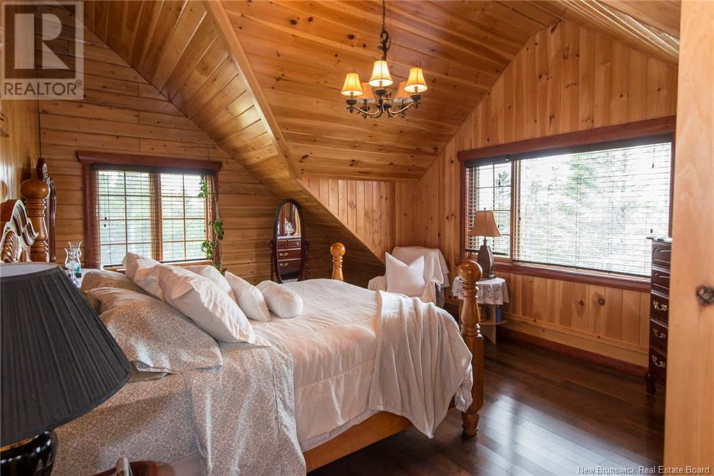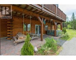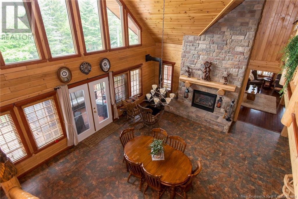 Total privacy on 35+ acres, quality built 3500sq' log home (5500sq' total). 3 Huge heated/AC garages perfect for car collection, boats, tractor, motor home+. Highest quality, 8"" cedar insulated D-shaped logs! No load bearing walls means easy changes. Features include open concept, 4 propane fireplaces, custom light fixtures, huge wrap-around deck, 2-story great room w/ 16' ceiling, full-height stone fireplace, cozy woodstove, concave solid wood trim & hot water in-floor heating throughout. Large custom eat-in kitchen w/thick slab granite countertop, pantry & huge central island/breakfast bar (appliances incl). Many intricate details. Main floor also boasts sunny family room w/3 sides of windows & stone fireplace, bedroom w/double closet, mud room & laundry, full bathroom. Up the turned D-log staircase w/ carved newel posts (from NC) to the sitting area & 3 additional bedrooms incl the spacious master suite w/3 sides of windows, walk-in & ensuite bath. 5500 sq' w/Daylight walkout basement. Rec room & large gym both w/fireplaces, tiled floor, work shop, & 1/2 bath. 2 Heated/AC 3-car garages 30'x30', plus a 40'x50' garage w/18' ceiling, 12' door & asymmetric 2-post vehicle lift & Brigadier 10 ACX wide, 10,000 lb. hydraulic hoist incl. Numerous fruit trees plus 300' spring-fed trout pond. Miles of groomed trails for hiking, biking & 4-wheeling, all the way to Fundy Nat'l Park. Generator hookup & diesel generator plus numerous inclusions. 6 Minutes from the SJ airport, YSJ (id:35613)