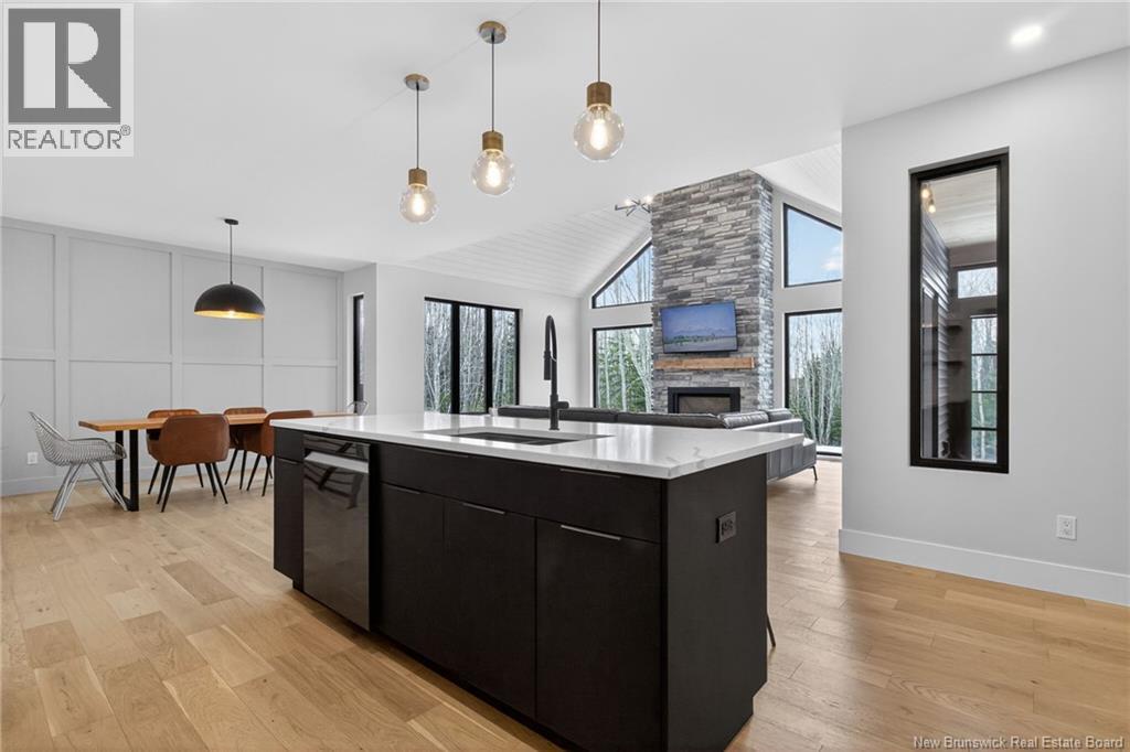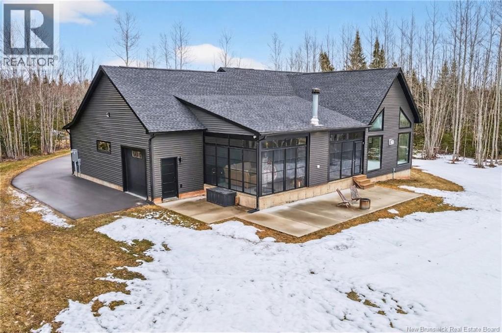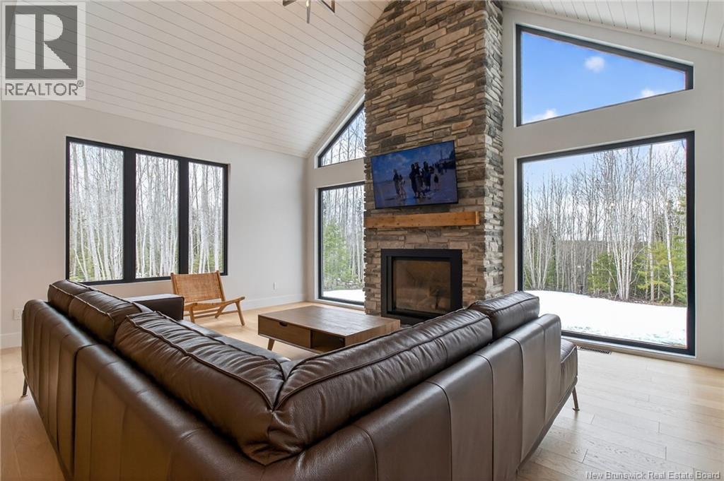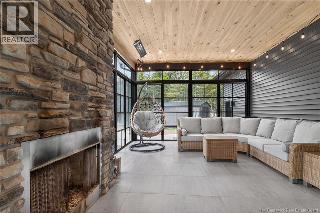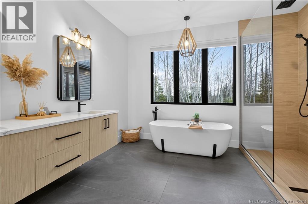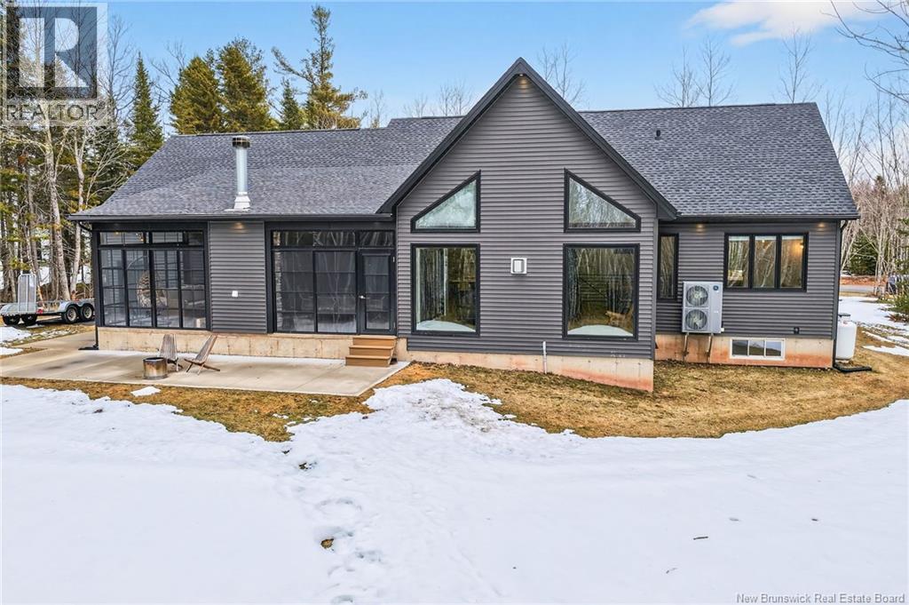*** PRIVATE TREED 1.45 ACRE LOT // MODERN DESIGNED BUNGALOW WITH LARGE ATTACHED GARAGE WITH MINI-SPLIT // STUNNING 3-SEASON ROOM *** Welcome to 45 Vernay in Memramcook, a stunning 2022-built bungalow featuring DUAL-ZONE HEAT PUMP and TRIPLE PANE WINDOWS for exceptional efficiency. Step inside to beautiful ENGINEERED HARDWOOD floors, living room with SHIPLAP CATHEDRAL CEILING and striking STONE ACCENT WALL with PROPANE FIREPLACE, kitchen with QUARTZ COUNTERTOPS, WALK-IN PANTRY, charming dining room, 3-SEASON ROOM, equipped with heaters and cozy WOOD BURNING FIREPLACE, and handy mudroom with plenty of cupboards. On this level also are the primary suite boasting natural light, HIS AND HERS CLOSETS and LUXURIOUS 5pc ENSUITE with custom shower and soaker tub, 2 spacious spare bedrooms, 3pc guest/family bath, and convenient laundry room. A hardwood staircase with custom railing leads to the fully finished basement, featuring vinyl plank flooring, large family room, 4th bedroom with double closets, 4pc bath, designated playroom that could easily be a 5th bedroom (egress window), gym with glass doors, hallway with garage access, and mechanical room with central vacuum. The garage includes 3 doors, its own mini-split, and is finished in TRUSS CORE VINYL, allowing for easy cleaning and even car washing inside. This home is set serenely on a beautifully landscaped lot and features a concrete pad surrounding the 3-season room and a powered baby barn. Amazingly designed inside and out! (id:35613)