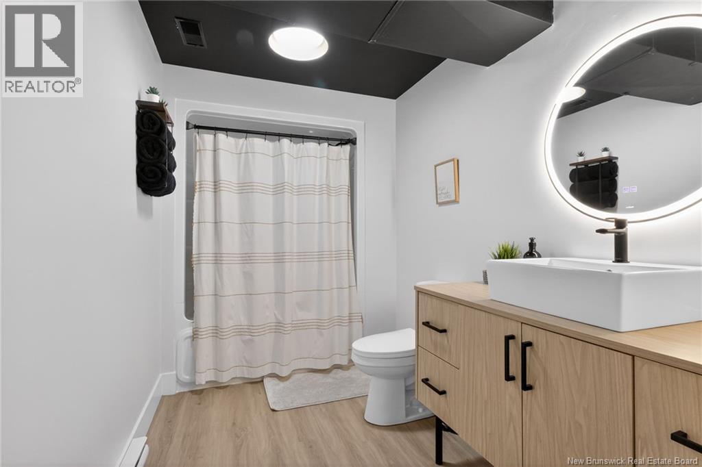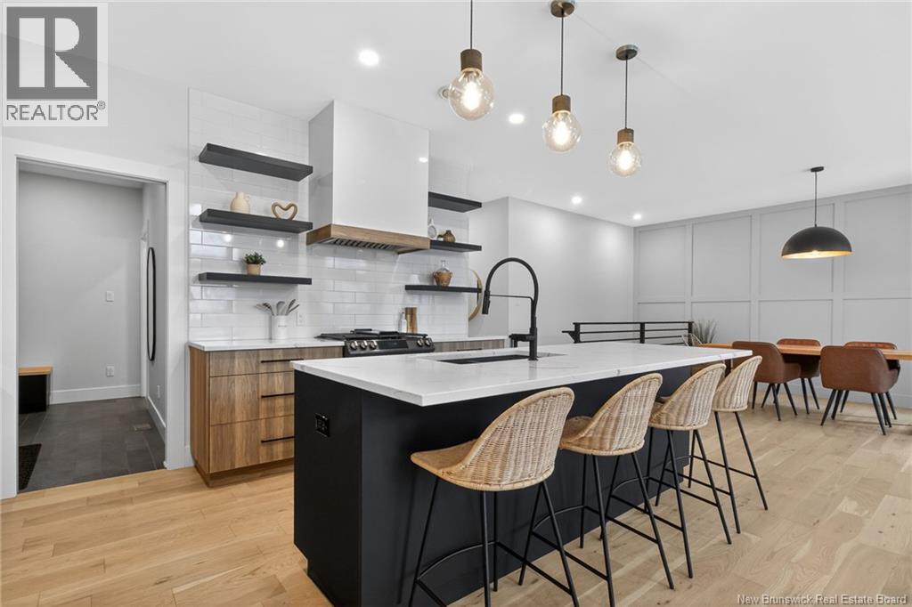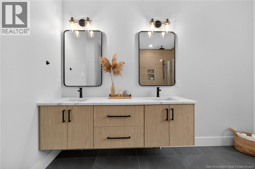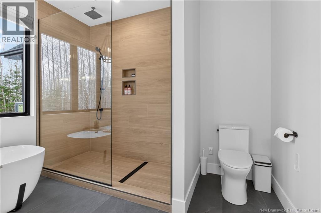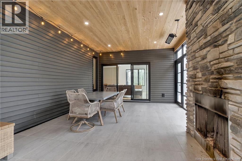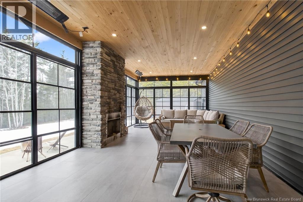 *** PRIVATE TREED 1.45 ACRE LOT // MODERN DESIGNED BUNGALOW WITH LARGE ATTACHED GARAGE WITH MINI-SPLIT // STUNNING 3-SEASON ROOM *** Welcome to 45 Vernay in Memramcook, a stunning 2022-built bungalow featuring DUAL-ZONE HEAT PUMP and TRIPLE PANE WINDOWS for exceptional efficiency. Step inside to beautiful ENGINEERED HARDWOOD floors, living room with SHIPLAP CATHEDRAL CEILING and striking STONE ACCENT WALL with PROPANE FIREPLACE, kitchen with QUARTZ COUNTERTOPS, WALK-IN PANTRY, charming dining room, 3-SEASON ROOM, equipped with heaters and cozy WOOD BURNING FIREPLACE, and handy mudroom with plenty of cupboards. On this level also are the primary suite boasting natural light, HIS AND HERS CLOSETS and LUXURIOUS 5pc ENSUITE with custom shower and soaker tub, 2 spacious spare bedrooms, 3pc guest/family bath, and convenient laundry room. A hardwood staircase with custom railing leads to the fully finished basement, featuring vinyl plank flooring, large family room, 4th bedroom with double closets, 4pc bath, designated playroom that could easily be a 5th bedroom (egress window), gym with glass doors, hallway with garage access, and mechanical room with central vacuum. The garage includes 3 doors, its own mini-split, and is finished in TRUSS CORE VINYL, allowing for easy cleaning and even car washing inside. This home is set serenely on a beautifully landscaped lot and features a concrete pad surrounding the 3-season room and a powered baby barn. Amazingly designed inside and out! (id:35613)