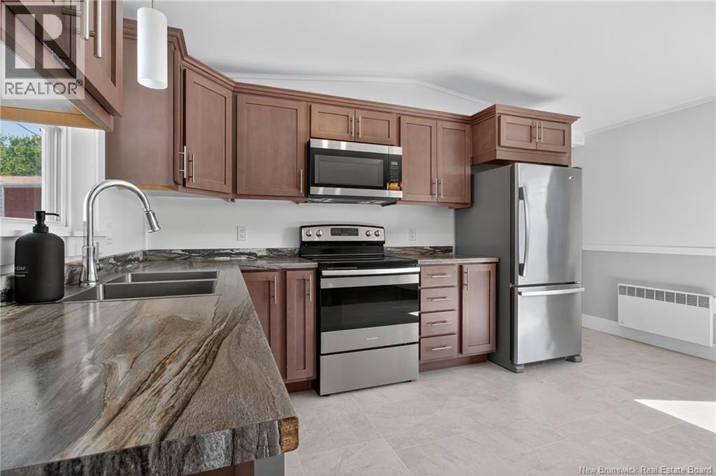 Welcome to 456 Nepisiguit, a well-maintained mini home located in the heart of Dieppe on an oversized lot with a fully fenced backyard. This property offers both comfort and convenience in a desirable location. Inside, youll find fresh modern finishes and an inviting open-concept layout. The floor plan features a primary bedroom, full bathroom, and laundry area on one side of the home, with a second bedroom on the opposite side. The central living space includes a bright eat-in kitchen and living room, perfect for everyday living and entertaining. The private backyard is fully fenced and includes a peaceful deck, providing the ideal setting for relaxation. Additional features include a mini split heat pump for year-round comfort, an oversized 20x12 baby barn, a Tesla charger, an extended paved driveway, and more. Dont miss this great opportunity to own a move-in ready home in a convenient Dieppe location. (id:35613)