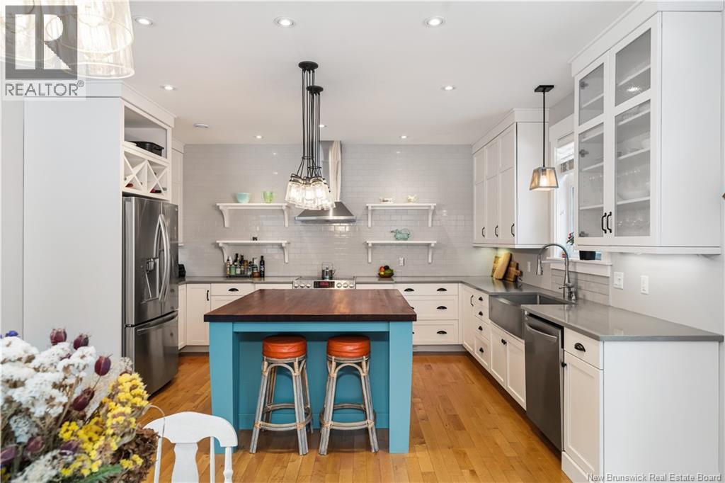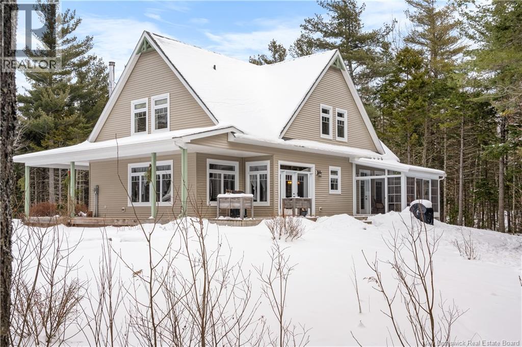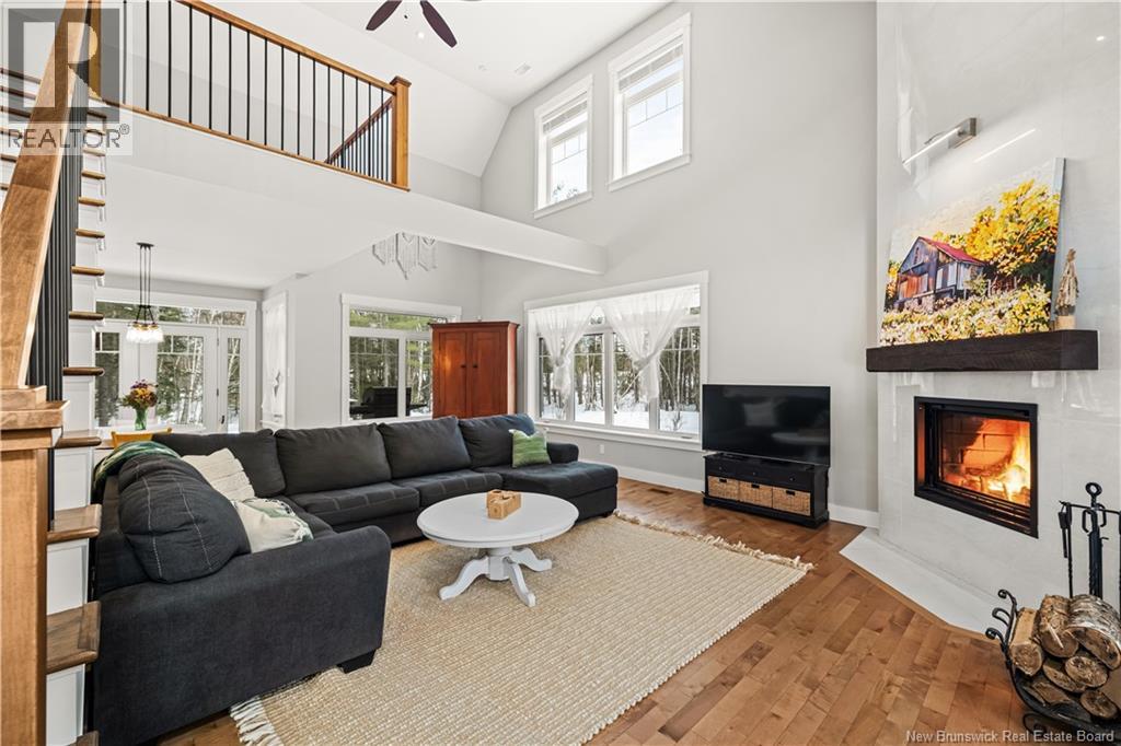 Welcome to this stunning custom-built modern farmhouse, perfectly set on a private 1.9-acre lot surrounded by mature trees, with a small creek running alongside the property. Enjoy serene country living while being under 10 minutes from the city. This exceptional home offers 4 spacious bedrooms and 4 bathrooms, ideal for families and guests alike. Step inside to soaring ceilings and rich hardwood floors throughout, creating a bright but warm and welcoming atmosphere. The living room features a beautiful custom wood-burning fireplace cladded in marbled ceramic, perfect for cozy evenings. The chefs kitchen is a true highlight, showcasing quartz countertops, a walnut-topped island, premium finishes, and ample cabinetry, making it a great place for hosting. The primary suite is a private retreat with a walk-in closet and spa-inspired ensuite featuring double sinks, a large tub, heated floors and a custom tile shower. A sun-filled sunroom extends your living space, while the expansive wrap-around deck overlooks the tranquil, tree-lined setting. At just a short walking distance you have a playground for the children to enjoy with plentiful room to roam. Additional features include a heated double garage with EV charger, generator panel, radon mitigation system, central vac, invisible dog fence and a wired alarm system. This remarkable property blends modern elegance, thoughtful upgrades, and rural charmoffering comfort, privacy, and convenience in one extraordinary home. (id:35613)