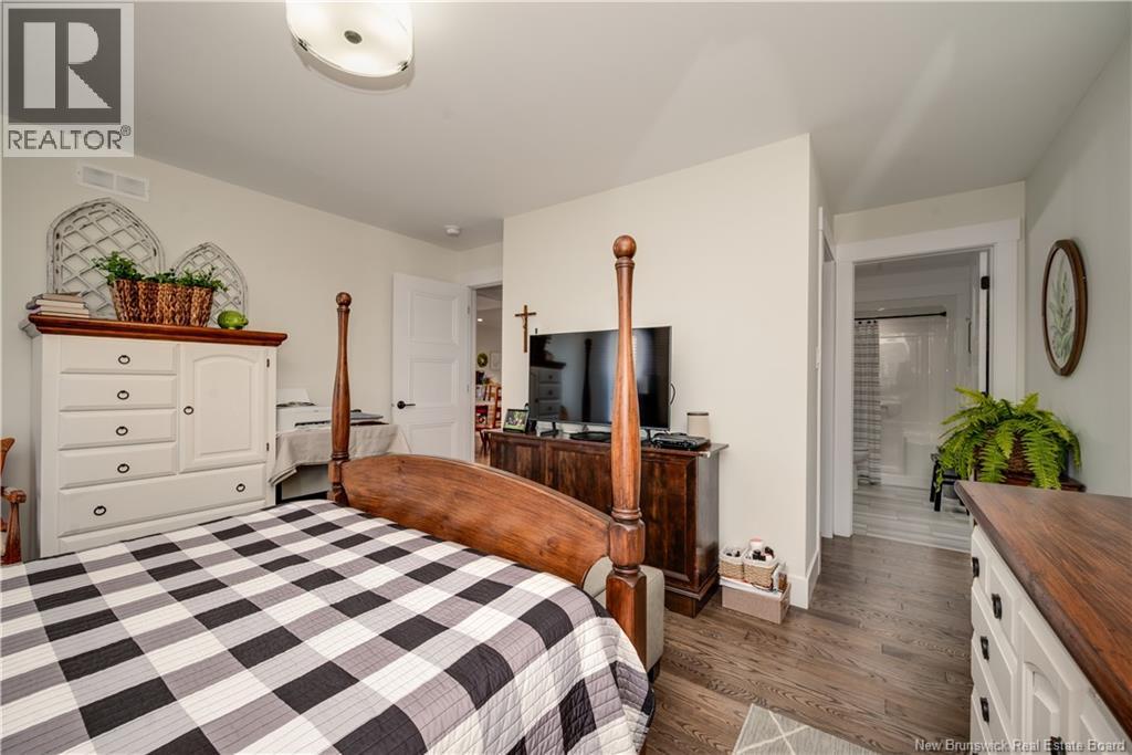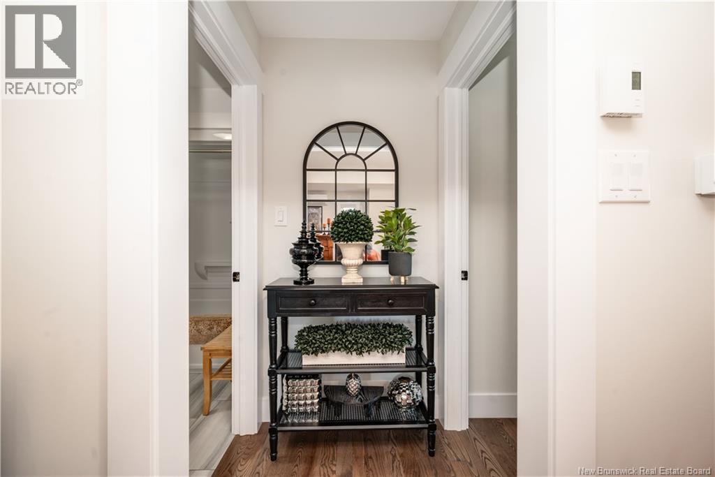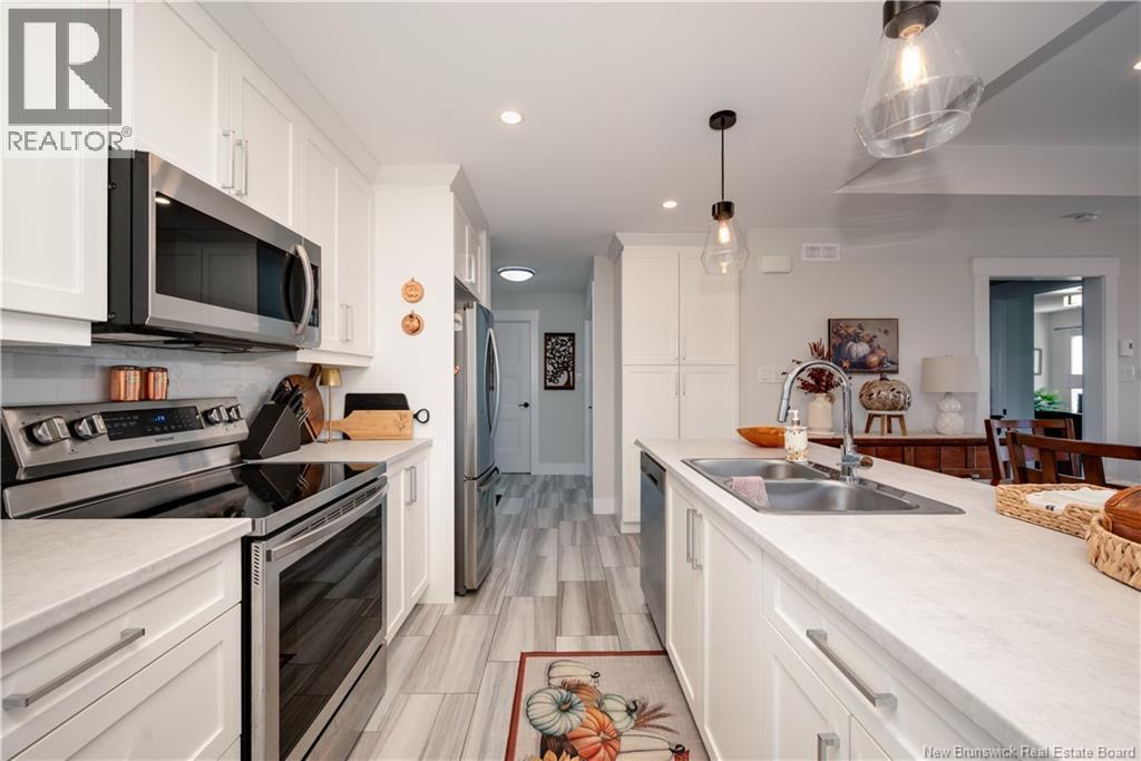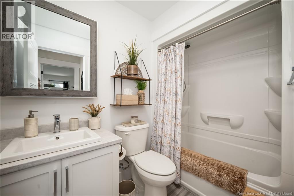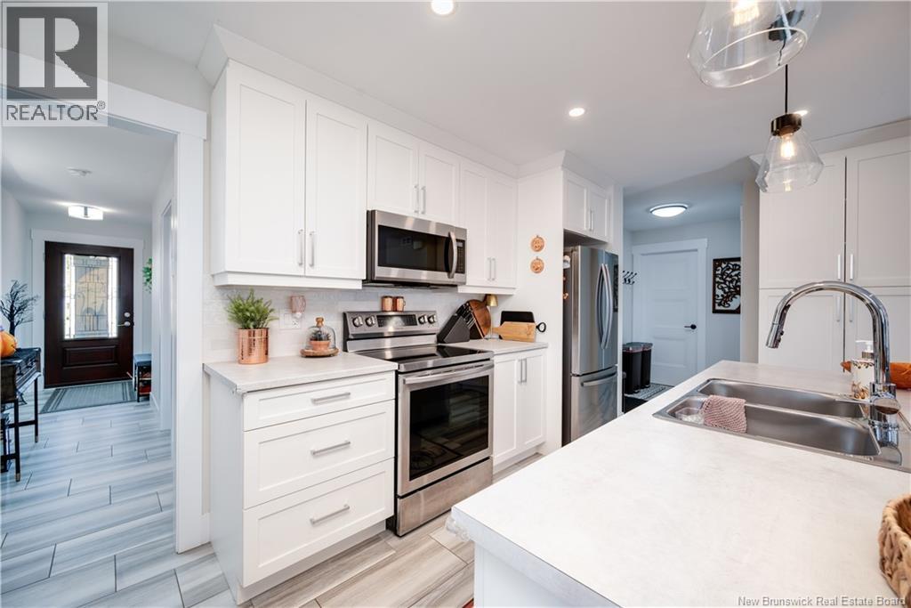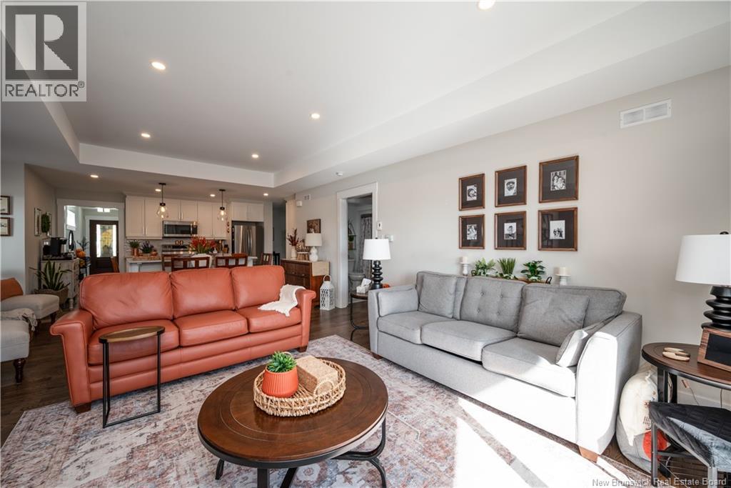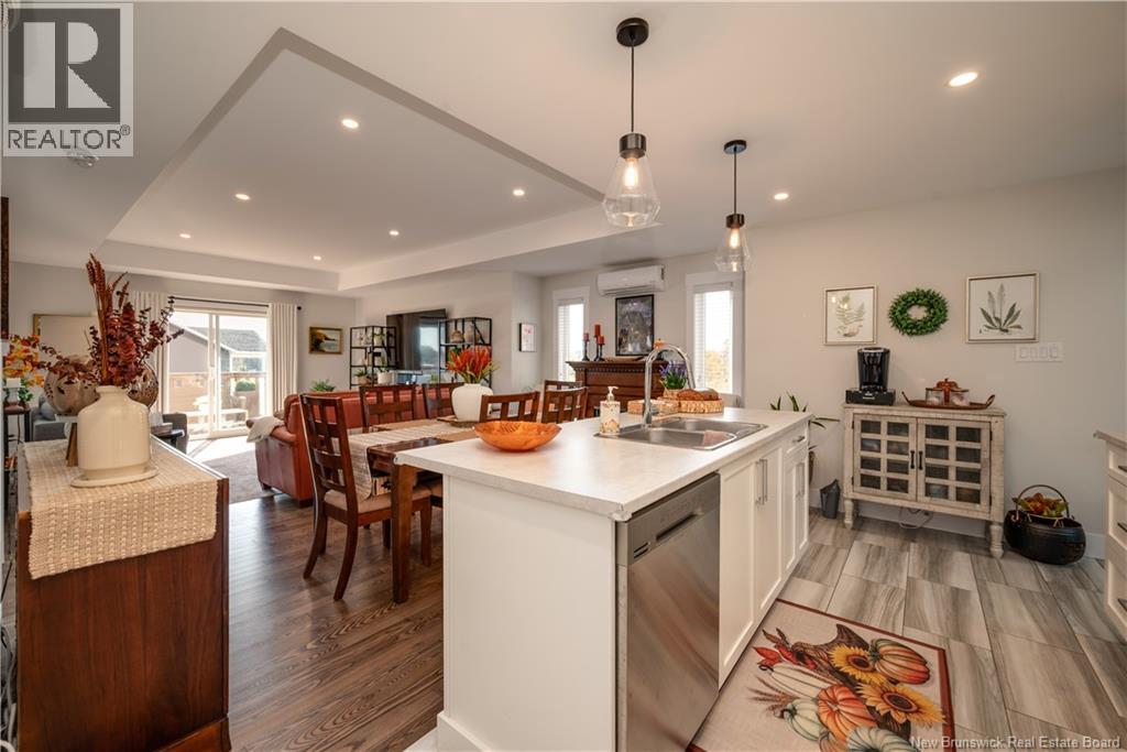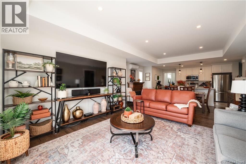 EXECUTIVE SEMI IN MOUNTAIN WOODS! NORTH MONCTON LIVING AT ITS BEST! WELCOME TO VILLAGE ON THE GREEN, A PEACEFUL CUL-DE-SAC, BORDERING ON MOUNTAIN WOODS GOLF COURSE, WHERE ELEGANCE & EASY LIVING COME TOGETHER! This executive semi-detached bungalow offers 1,220 sq. ft. of one-level living, showcasing exceptional craftsmanship, thoughtful design, and modern comfort throughout. The spacious front entry leads to a bright, open-concept living and dining area enhanced by a 9-ft tray ceiling, large windows, and sliding doors leading to a south-facing covered back deck, perfect for morning coffee or evening gatherings. The custom kitchen impresses with ample counter space & cabinetry and a walk-in pantry to keep everything organized. A convenient main floor laundry adds everyday ease. The primary suite is a peaceful retreat featuring a walk-in closet and private ensuite bath. A second bedroom (or ideal home office) and a full guest bath complete the main level. The unspoiled walk-out basement provides an excellent opportunity to add living space and build instant equity. Outside, enjoy the covered front porch, paved driveway, and fully landscaped yard. Efficient climate control is provided by electric baseboards and a ductless mini-split heat pump/AC. This home delivers space, style, and serenity, perfect for those looking to downsize without compromise in one of Monctons most desirable communities. Appliances included. Taxes currently reflect non-owner occupancy. Message now to view (id:35613)
