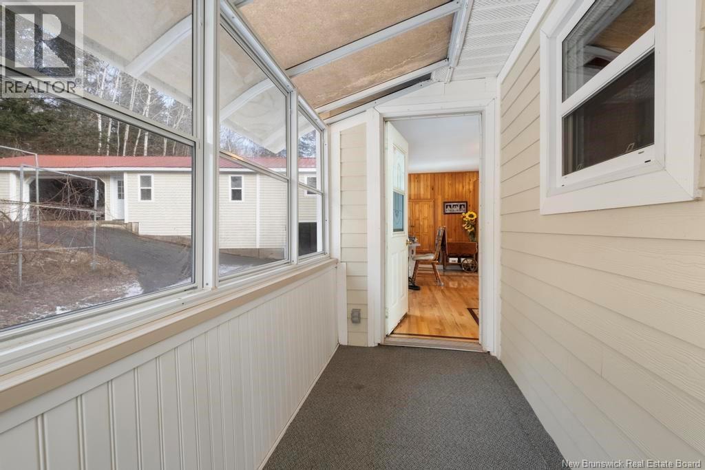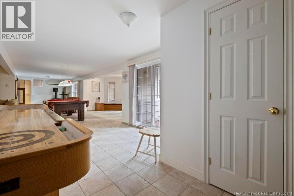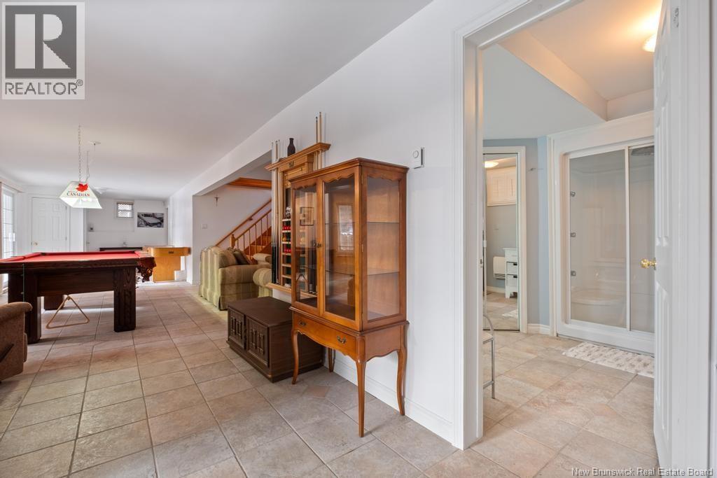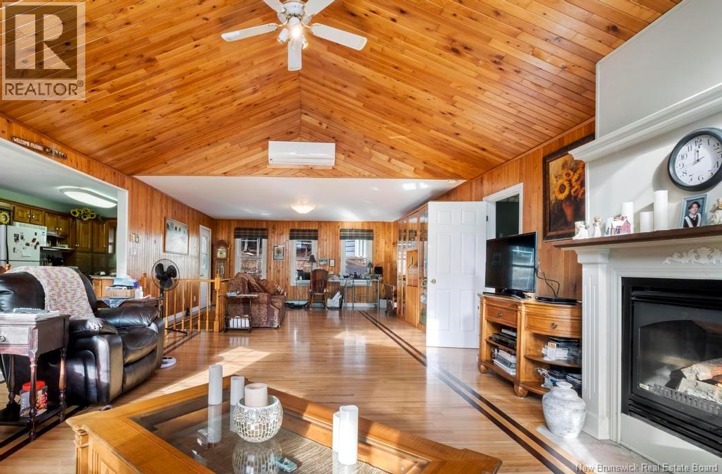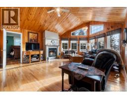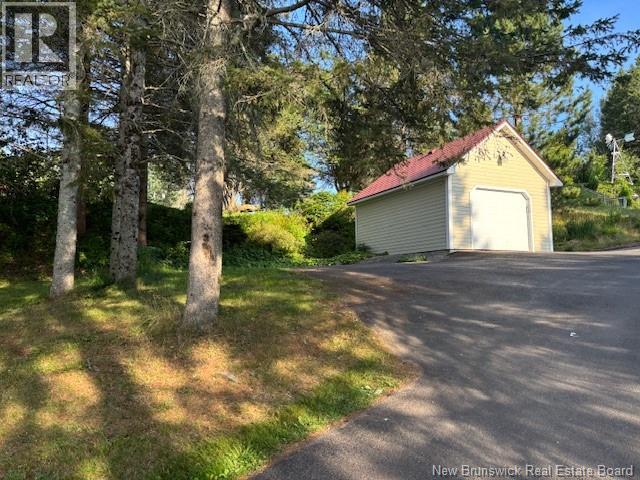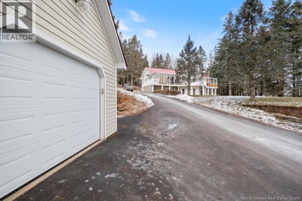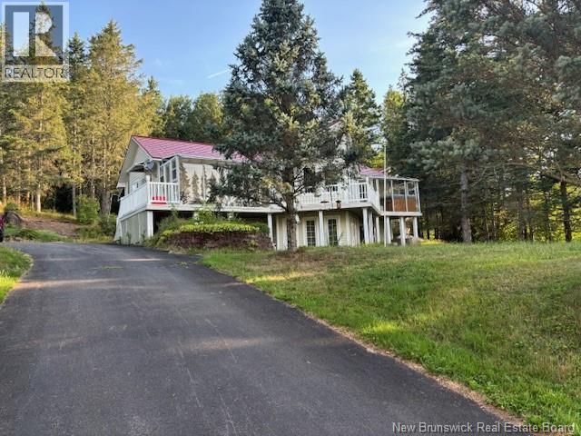 This custom built chalet has so much to offer all tucked into the trees sitting on a one acre lot on the Back Rd in Penobsquis. On the main level as you come in thru the the 3 season enclosed sunroom you walk into the great room with vaulted ceiling and propane fireplace, walls and floors are all covered in hemlock. This room is huge and is open to the dining area. The kitchen with cherry cabinets and granite counter tops has lots of cabinet and counter top space. As you come in the side door of the house into the kitchen area there is a bathroom and mudroom. Off the great room on the back of the house there is another enclosed sunroom so that you can enjoy the outside from all angles. The primary bedroom is on the main level with a large ensuite bath and soaker tub plus heated floors and a walk in closet. The garden door off the primary bedroom leads to a hot tub and access to the rest of the wrap around patio which is all done in PVC. The lower level of the home with a walk out to the front yard has another bedroom (no egress window but close to the outside door) a huge entertaining area with a napolean propane stove and another full bath. This area has a ton of opportunities to fit your life style. The driveway is paved all the way to the upper garages. There is a small garage 16x20 at the bottom of the property. The other garages are 48x26 and 44x26 and the quonset is 20x24. Another great feature is the fish pond and generac generator. (id:35613)
