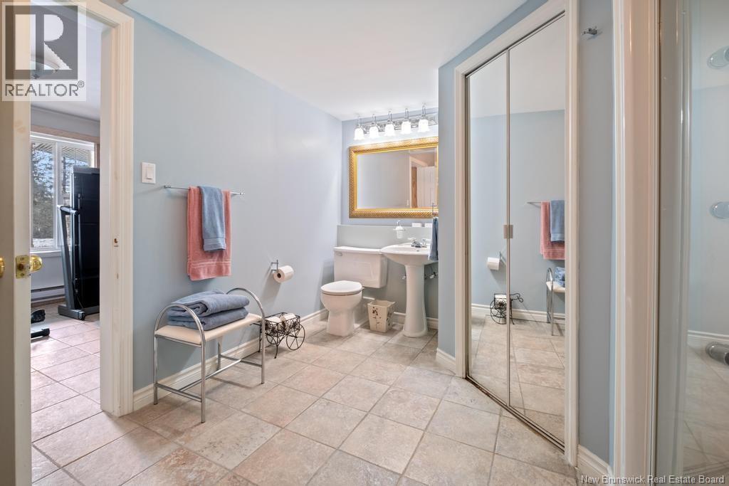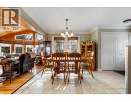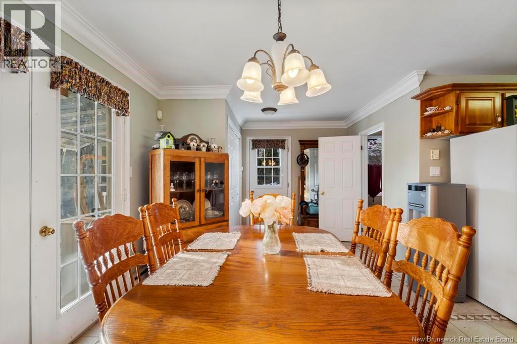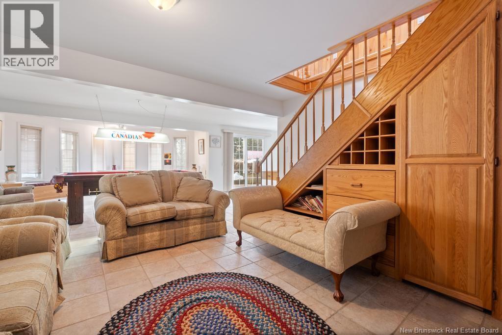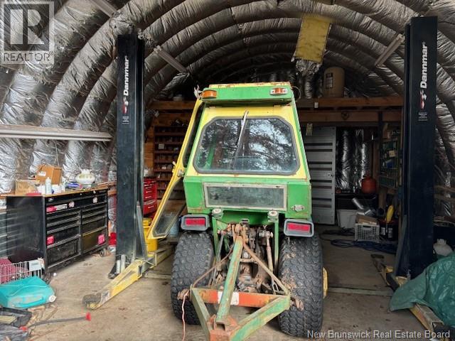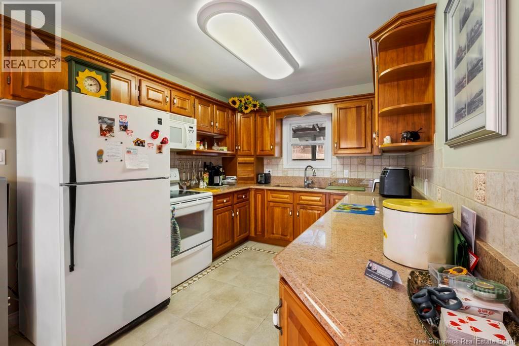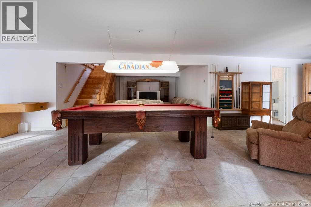 This custom built chalet has so much to offer all tucked into the trees sitting on a one acre lot on the Back Rd in Penobsquis. On the main level as you come in thru the the 3 season enclosed sunroom you walk into the great room with vaulted ceiling and propane fireplace, walls and floors are all covered in hemlock. This room is huge and is open to the dining area. The kitchen with cherry cabinets and granite counter tops has lots of cabinet and counter top space. As you come in the side door of the house into the kitchen area there is a bathroom and mudroom. Off the great room on the back of the house there is another enclosed sunroom so that you can enjoy the outside from all angles. The primary bedroom is on the main level with a large ensuite bath and soaker tub plus heated floors and a walk in closet. The garden door off the primary bedroom leads to a hot tub and access to the rest of the wrap around patio which is all done in PVC. The lower level of the home with a walk out to the front yard has another bedroom (no egress window but close to the outside door) a huge entertaining area with a napolean propane stove and another full bath. This area has a ton of opportunities to fit your life style. The driveway is paved all the way to the upper garages. There is a small garage 16x20 at the bottom of the property. The other garages are 48x26 and 44x26 and the quonset is 20x24. Another great feature is the fish pond and generac generator. (id:35613)