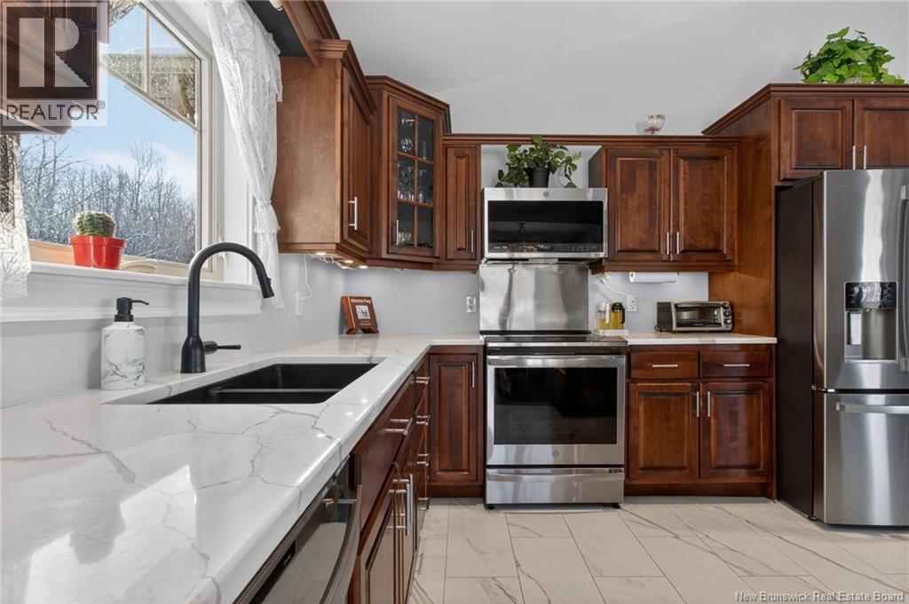 Welcome to 54 De La Montée, an immaculate property perfectly situated on over 3 acres of land, offering breathtaking views of the Cocagne River. From the moment you arrive, youll appreciate the peace and privacy this home provides. The property features a double detached, climate-controlled garage with both heat & air conditioning, as well as a new 21-ft pool surrounded by a beautiful deck with direct access from the primary bedroomperfect for summer relaxation and entertaining. Step inside to the main floor, where you are immediately welcomed by a stunning open-concept layout. The recently renovated kitchen boasts dark cabinetry, elegant quartz countertops & a layout ideal for entertaining or keeping an eye on the kids while preparing meals. Across from the kitchen, the dining area flows seamlessly into the living room, which features oversized windows that flood the space with natural light & showcase the picturesque river views.The main level is completed by three generously sized bedrooms & a stunning full bathroom, with access from the primary bedroom, featuring a luxurious soaker tub. The fully finished basement offers two additional bedroom, a large family room & a second full bathroom, providing ample space for family or guests. Comfort is ensured year-round with two ductless heat pumps, including one in the primary bedroom & another in the basement. For more information or to book a viewing, dont delay, call your favourite REALTOR® today. (id:35613)