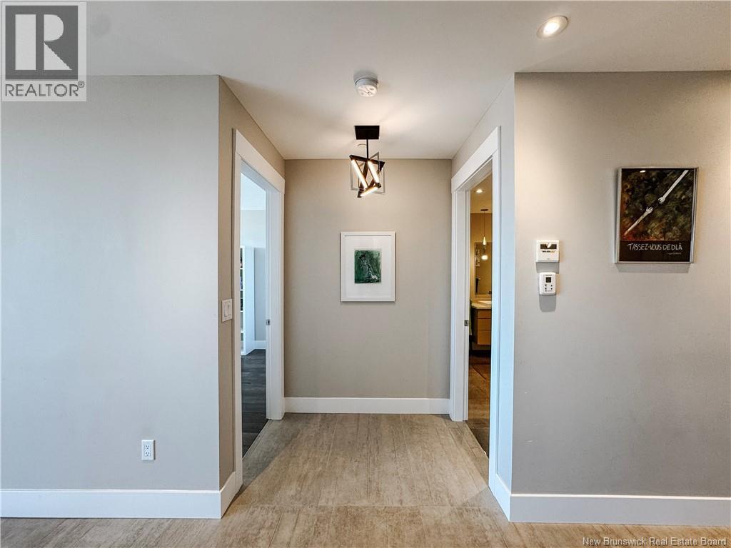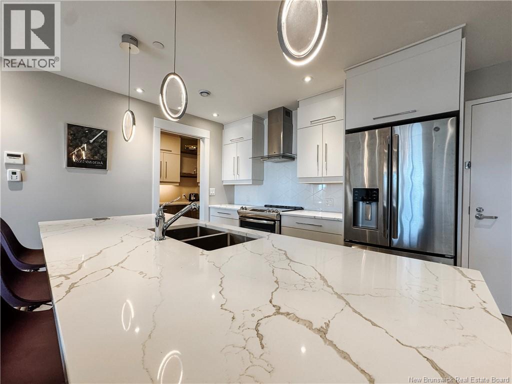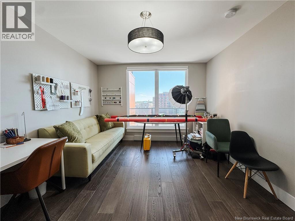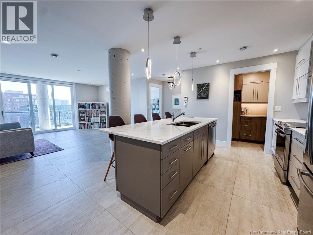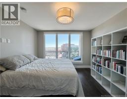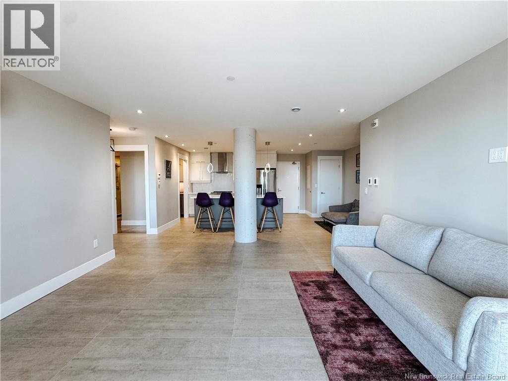Welcome to 55 Queen, where urban sophistication meets effortless convenience. This condo offers 1,141 square feet of open-concept living space plus a secure separate storage room of 157 square feet, giving you a total of 1,298 square feet of usable space. Inside, you will find 9-foot ceilings, two spacious bedrooms, and two bathrooms. The thoughtfully designed kitchen features a custom walk-in pantry with cabinets and a quartz countertop, along with under-cabinet lighting and additional cabinetry with a glass door for both function and style. The ensuite bathroom includes extra cabinetry for storage and glass shower doors with ceramic finishes, creating a clean and modern look. Enjoy bright south-facing exposure and beautiful city views from your large private balcony. The home includes one underground parking space with additional storage, and residents have access to a 24-hour secure training center. Relax or entertain on the interior and exterior rooftop terraces, offering some of the best views in town. Located in one of Monctons most desirable developments, you will be steps away from premium amenities including Gahan House Restaurant, the chic Palette Rooftop Bar, Bar55 Café, and the Canvas Hotel on floors 2 through 4. This is more than a home, it is a lifestyle. Experience the best in downtown luxury living. Take the 3D tour or contact your REALTOR® today to book a private showing. Note: Property taxes are based on non-owner occupied status. (id:35613)